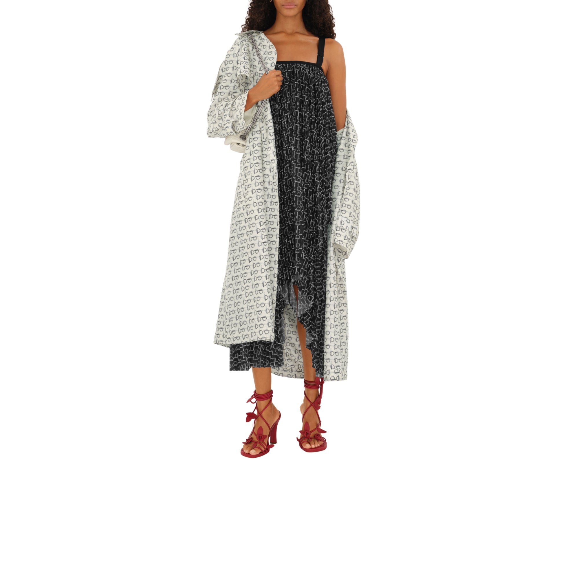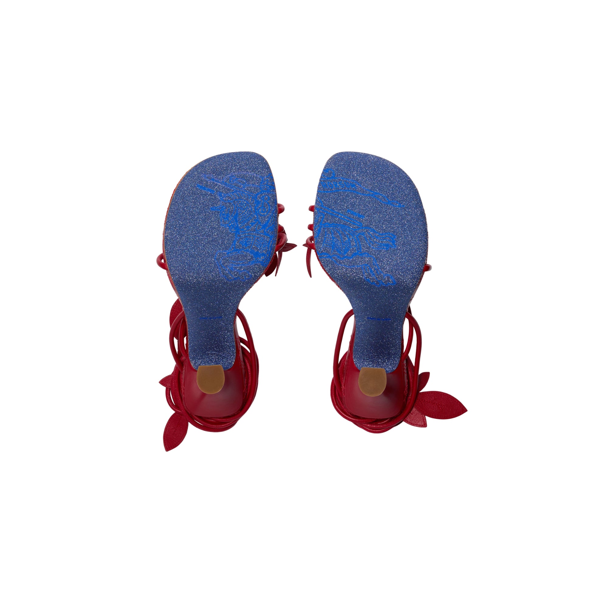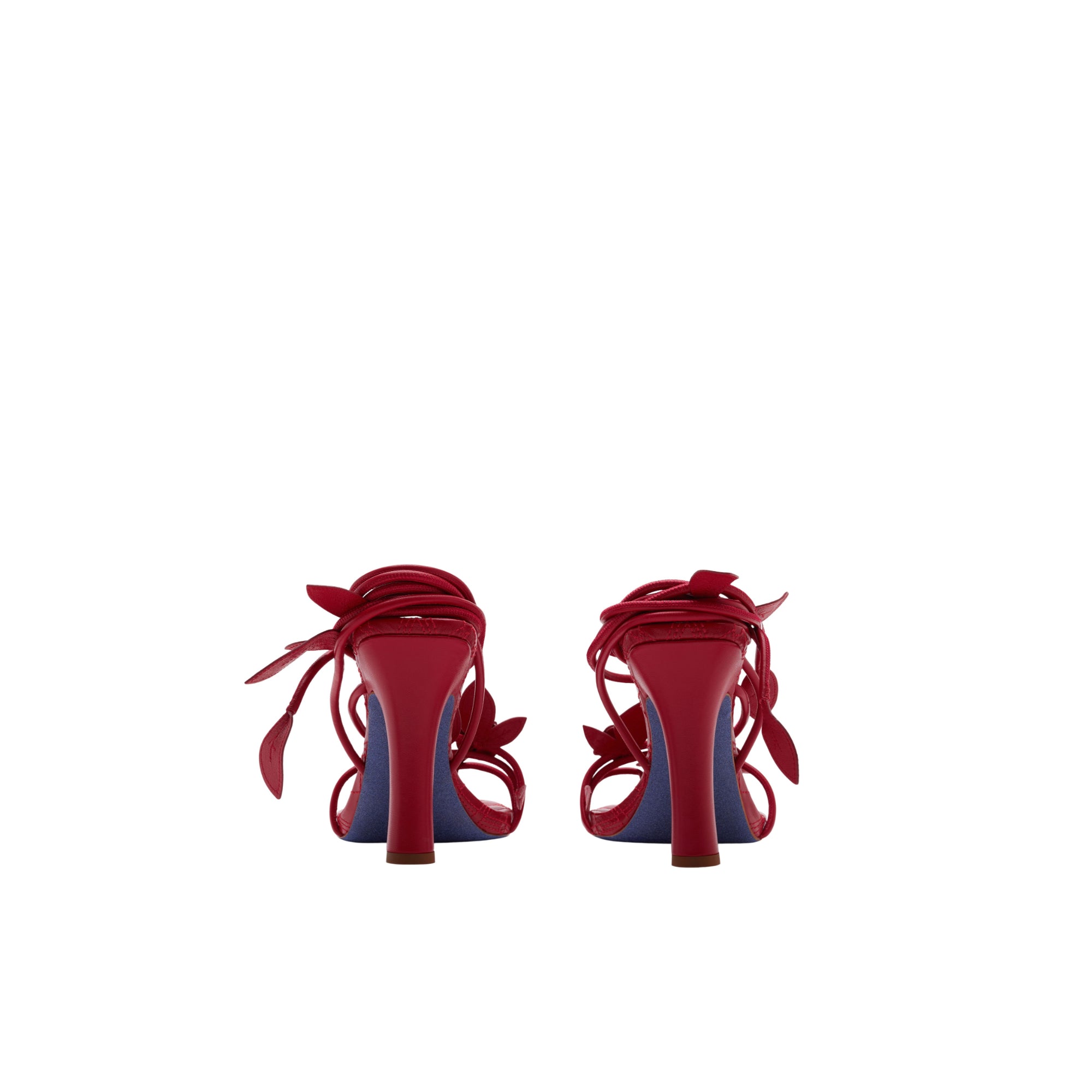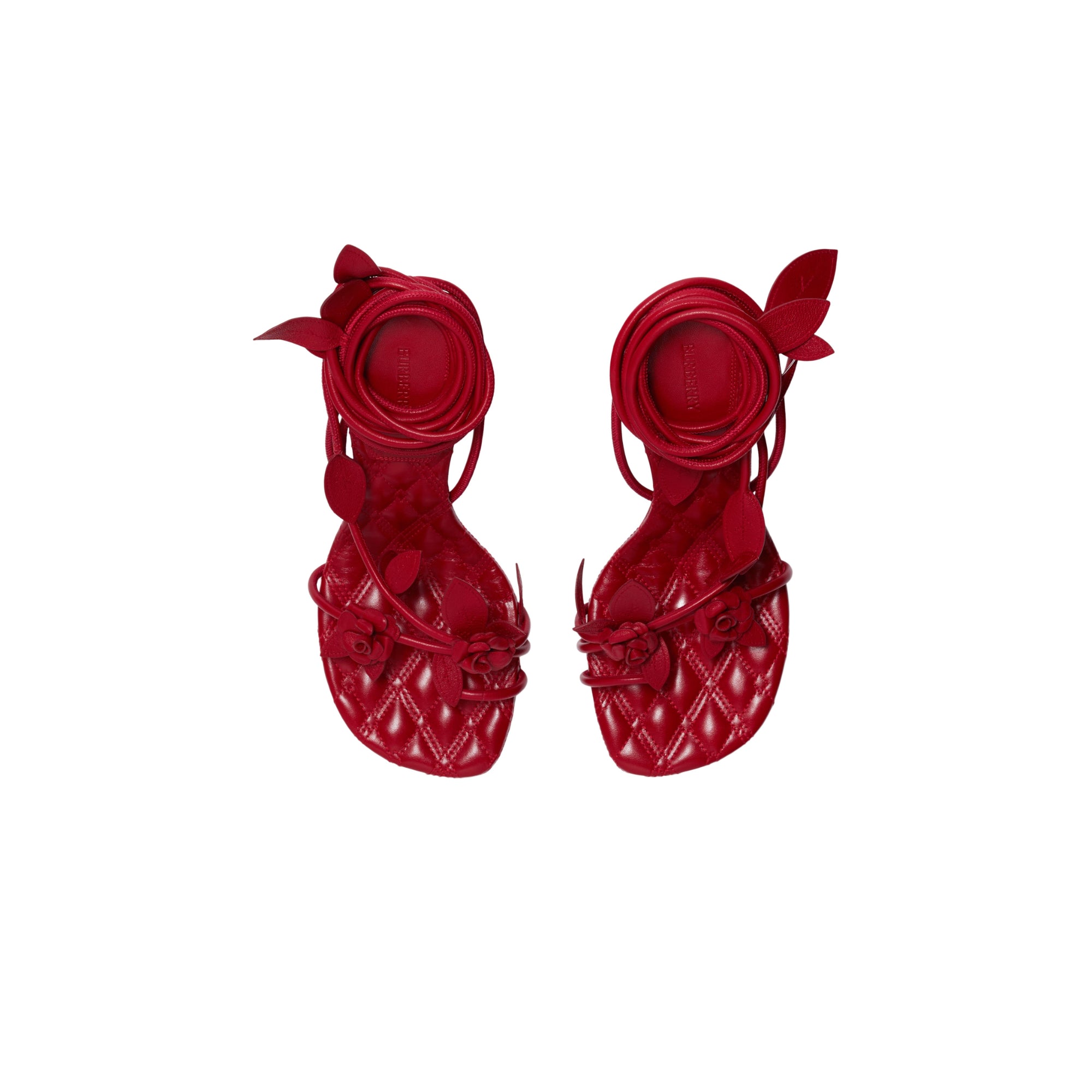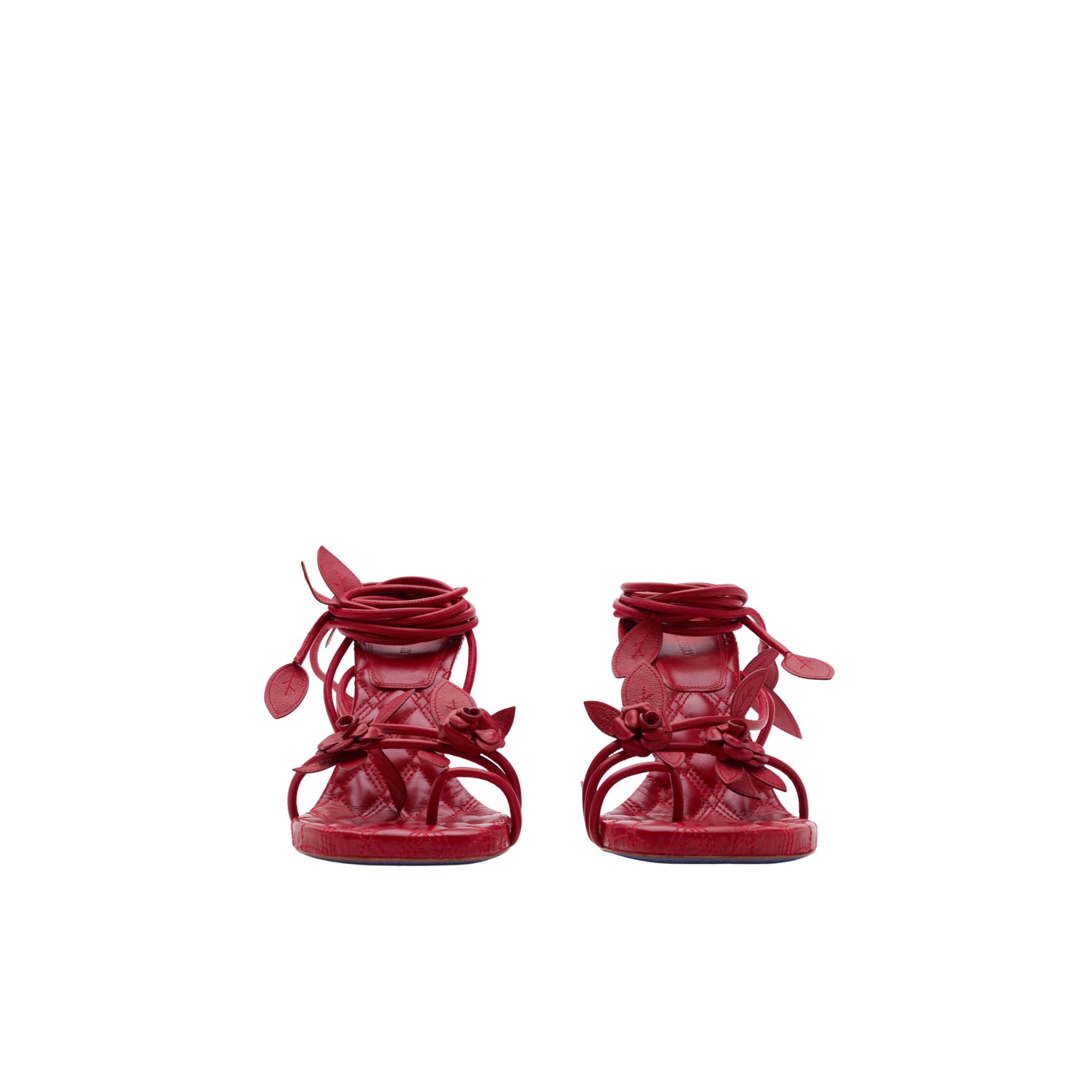 상품설명 : 나파 가죽 소재로 이탈리아에서 제작된 힐 샌들. 장미 덩굴에서 영감을 받은 랩어라운드 스타일의 스트랩과 수작업으로 완성된 새싹 및 나뭇잎 모티프가 특징.##둥근 앞코#퀼팅 가죽 안창#밑창의 기마상 디자인(Equestrian Knight Design, EKD)