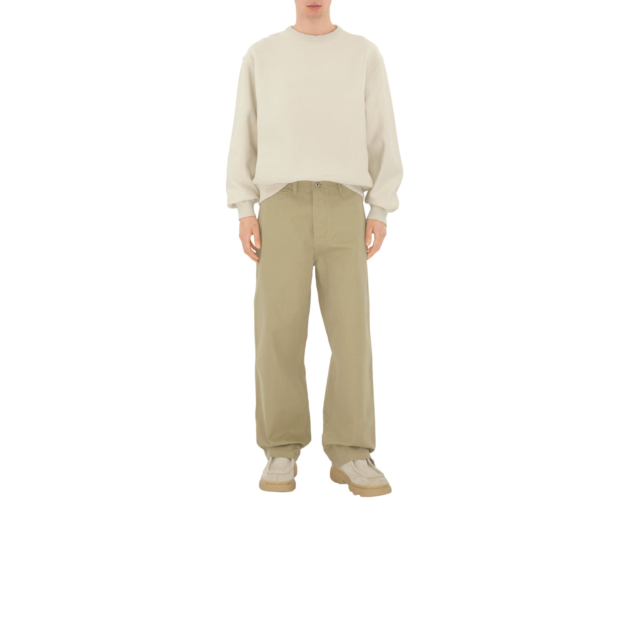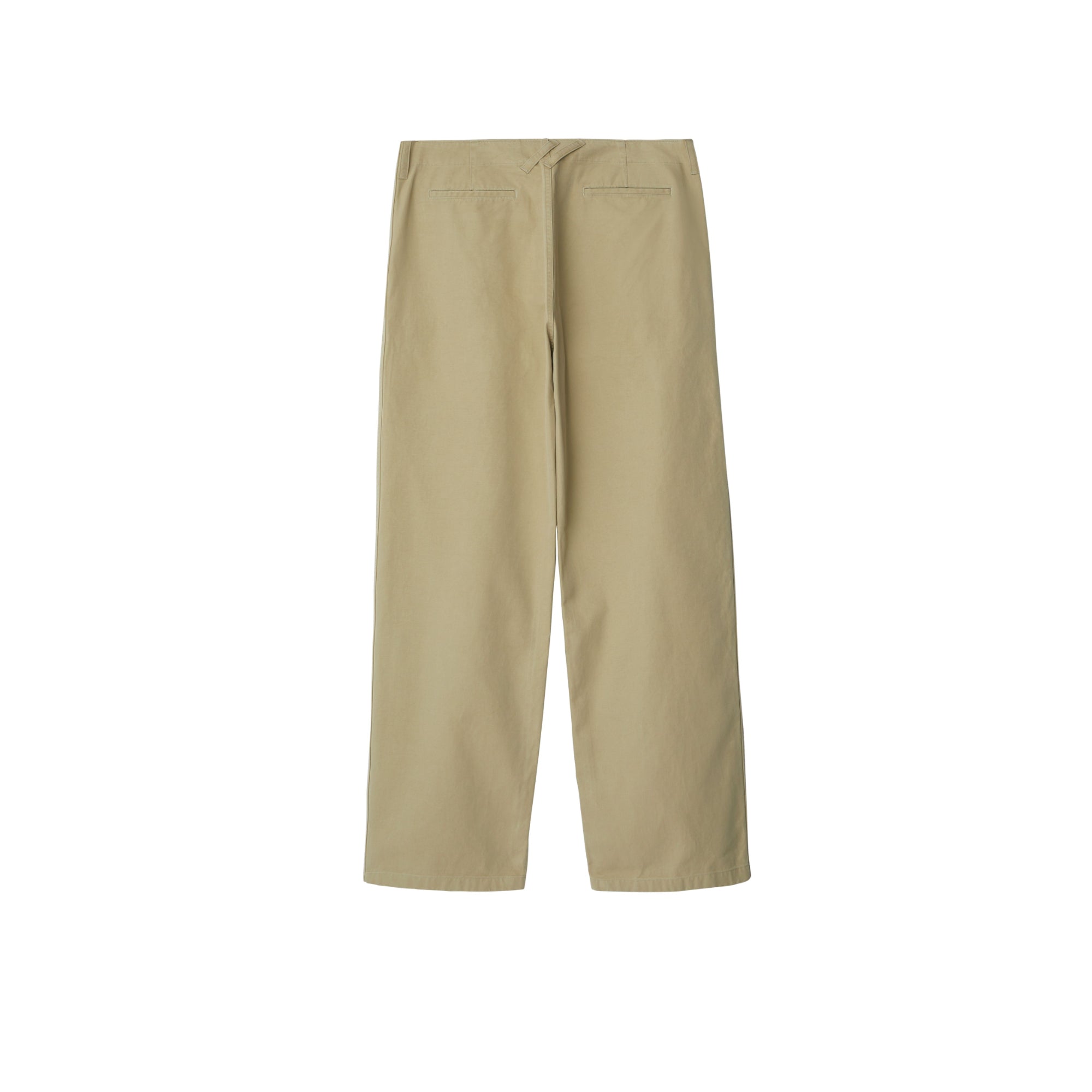 상품설명 : 이중직 면 트윌 소재의 경량 치노 팬츠. 사선으로 연출된 벨트 고리 디테일이 돋보이며 릴랙스핏 실루엣이 특징.##단추 및 지퍼 여밈#앞면의 웰트 포켓, 측면의 슬립 포켓, 뒷면의 웰트 포켓