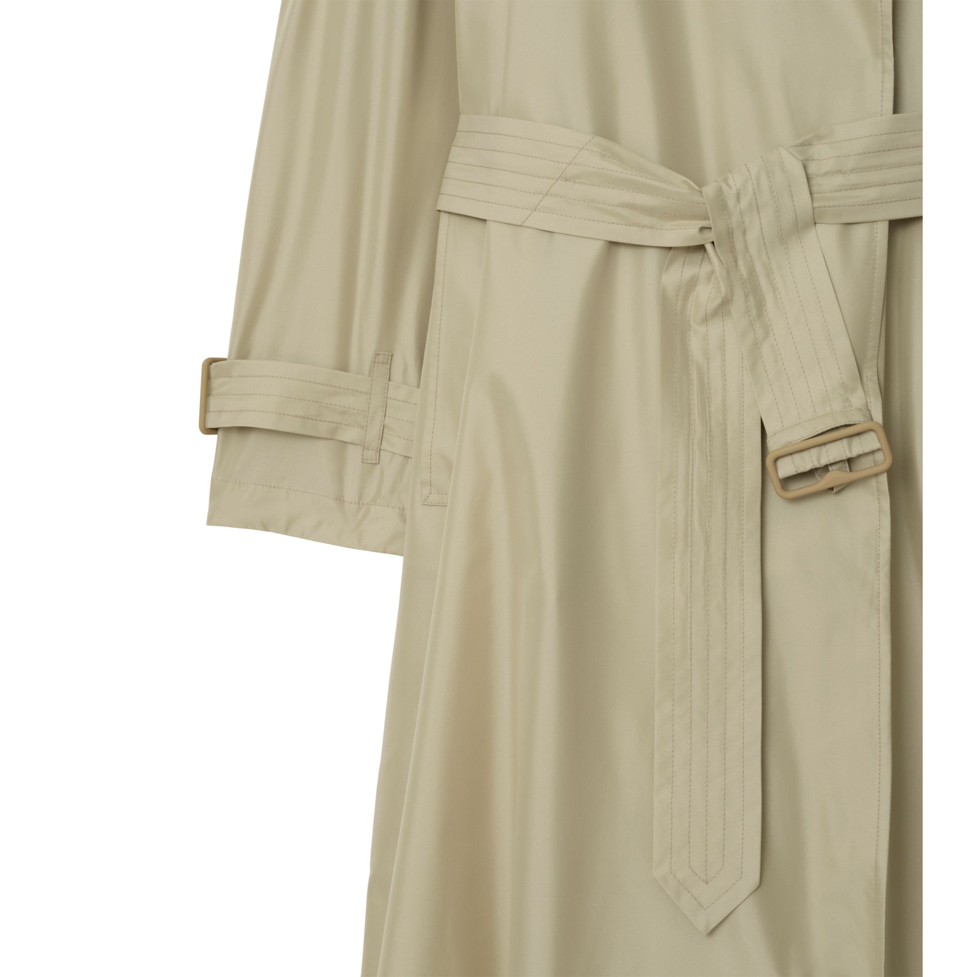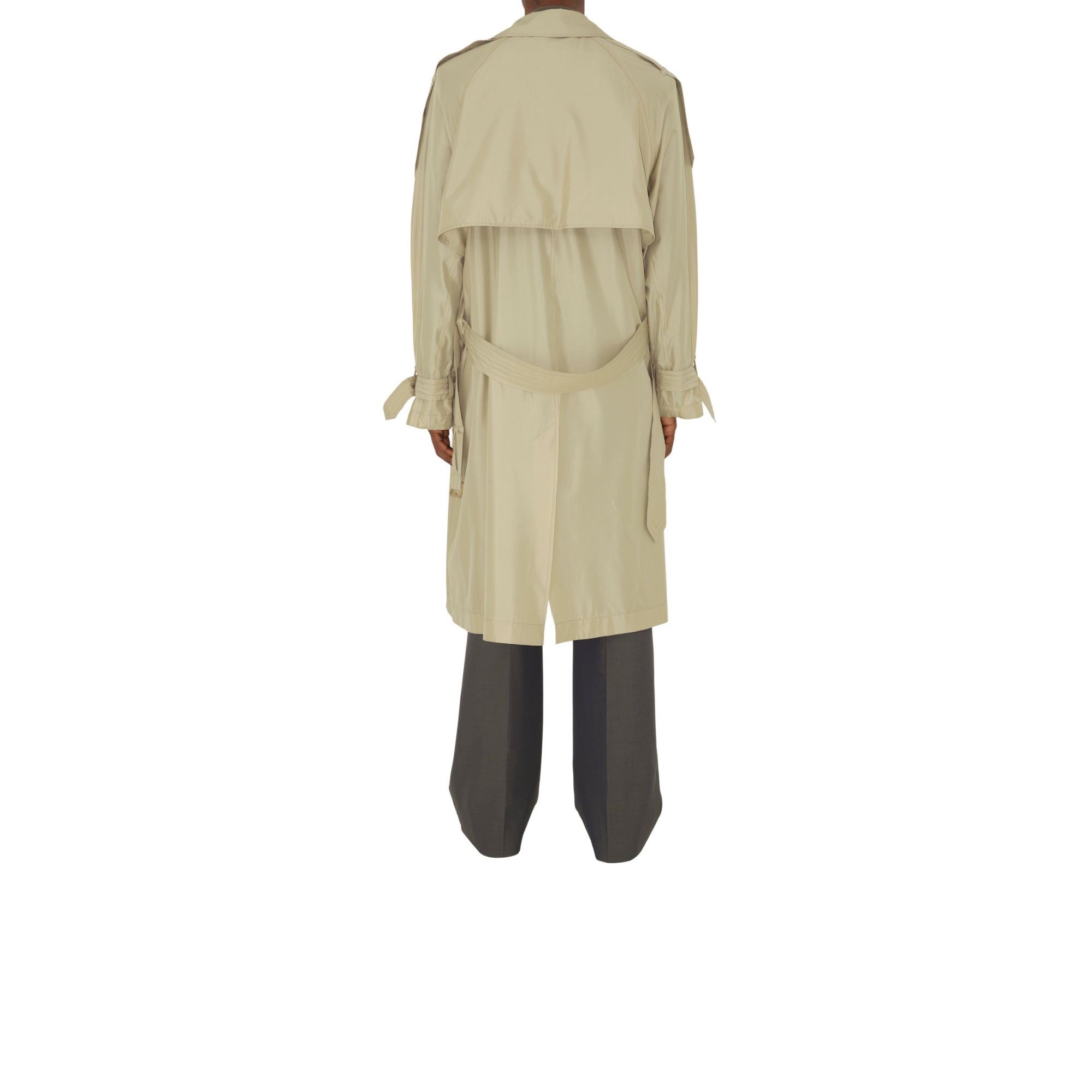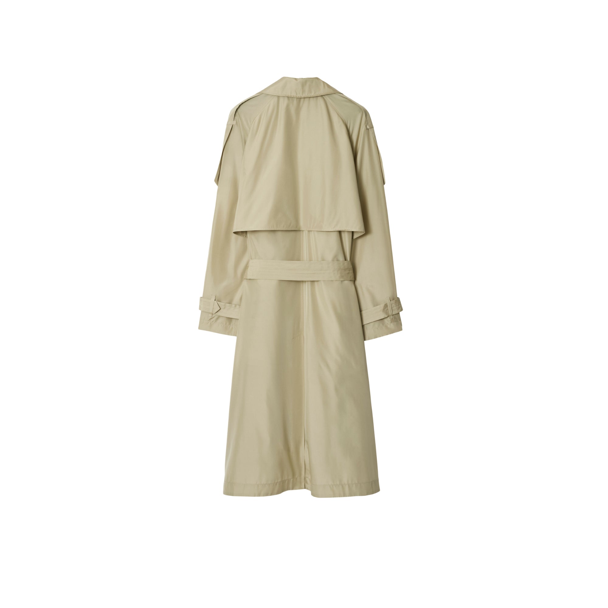 상품설명 : 이탈리안 실크 소재의 오버사이즈핏 랩 트렌치코트. 안감 처리되지 않은 디자인으로, 래글런 소매가 돋보이며 스티치 디테일이 연출된 벨트를 사용해 실루엣을 조절할 수 있습니다.##랩 여밈#견장​#벨트#측면의 웰트 포켓​#커프스의 벨트 디테일​#뒤트임