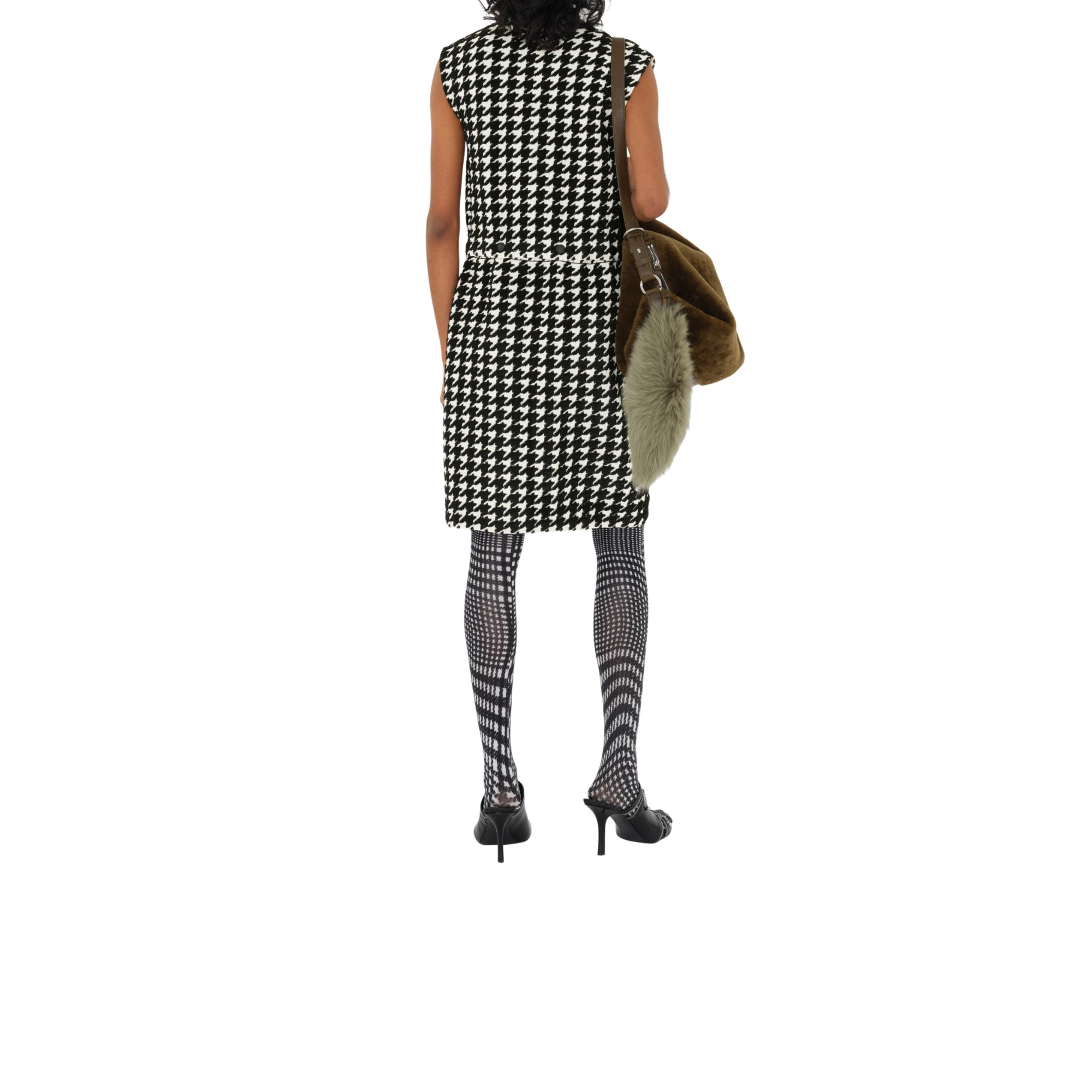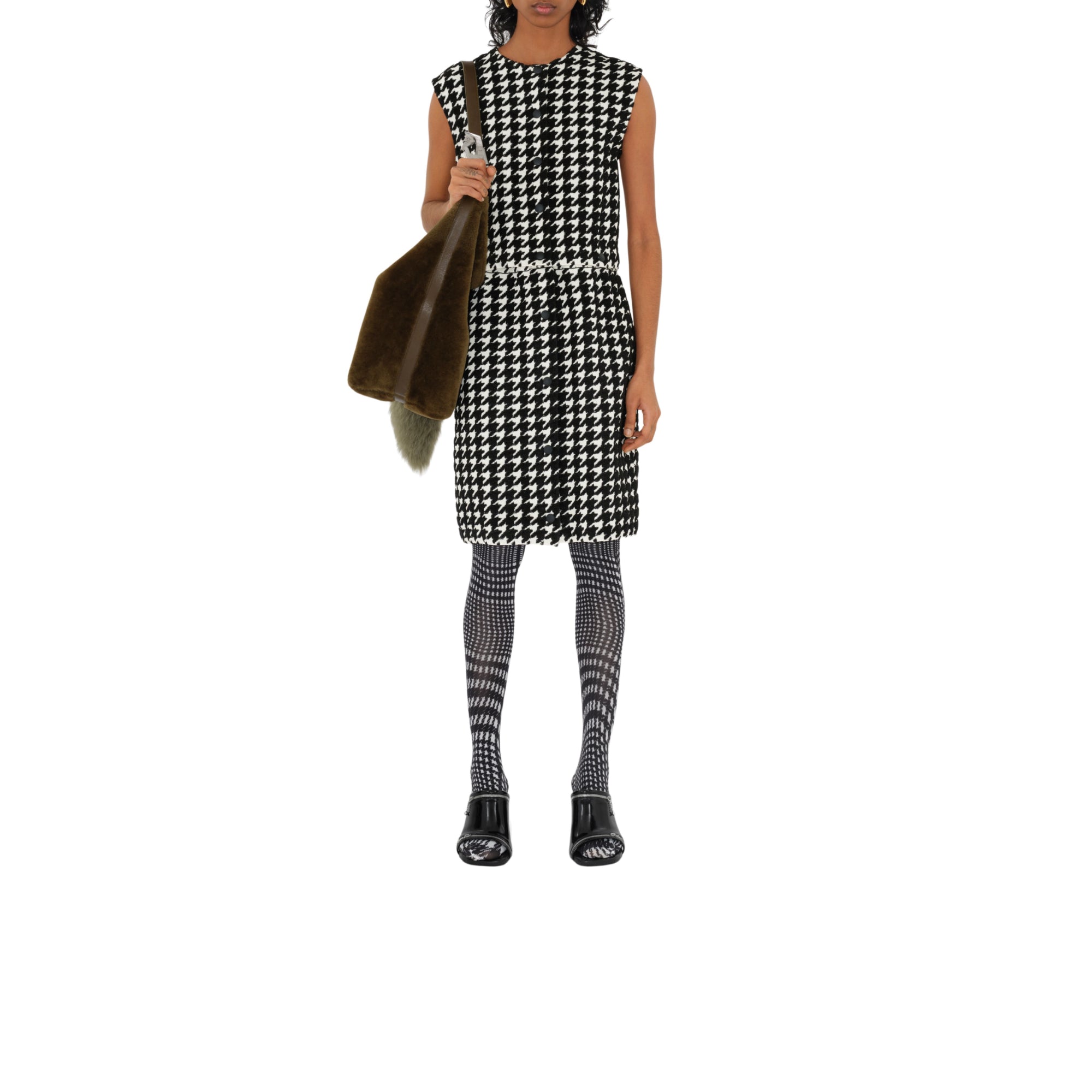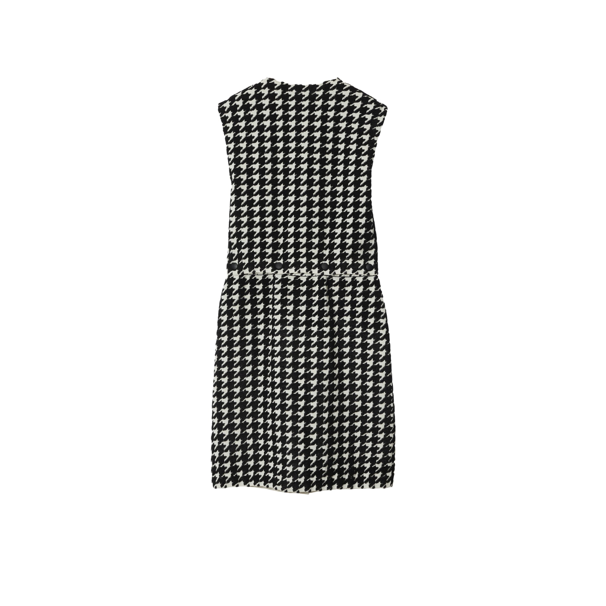 상품설명 : 나일론 혼방 소재로 이탈리아에서 제작된 민소매 드레스. 하운즈투스 패턴이 돋보이며, 허리 부분을 풀어 2피스 세트로도 스타일링할 수 있는 아이템.##스냅 단추 여밈