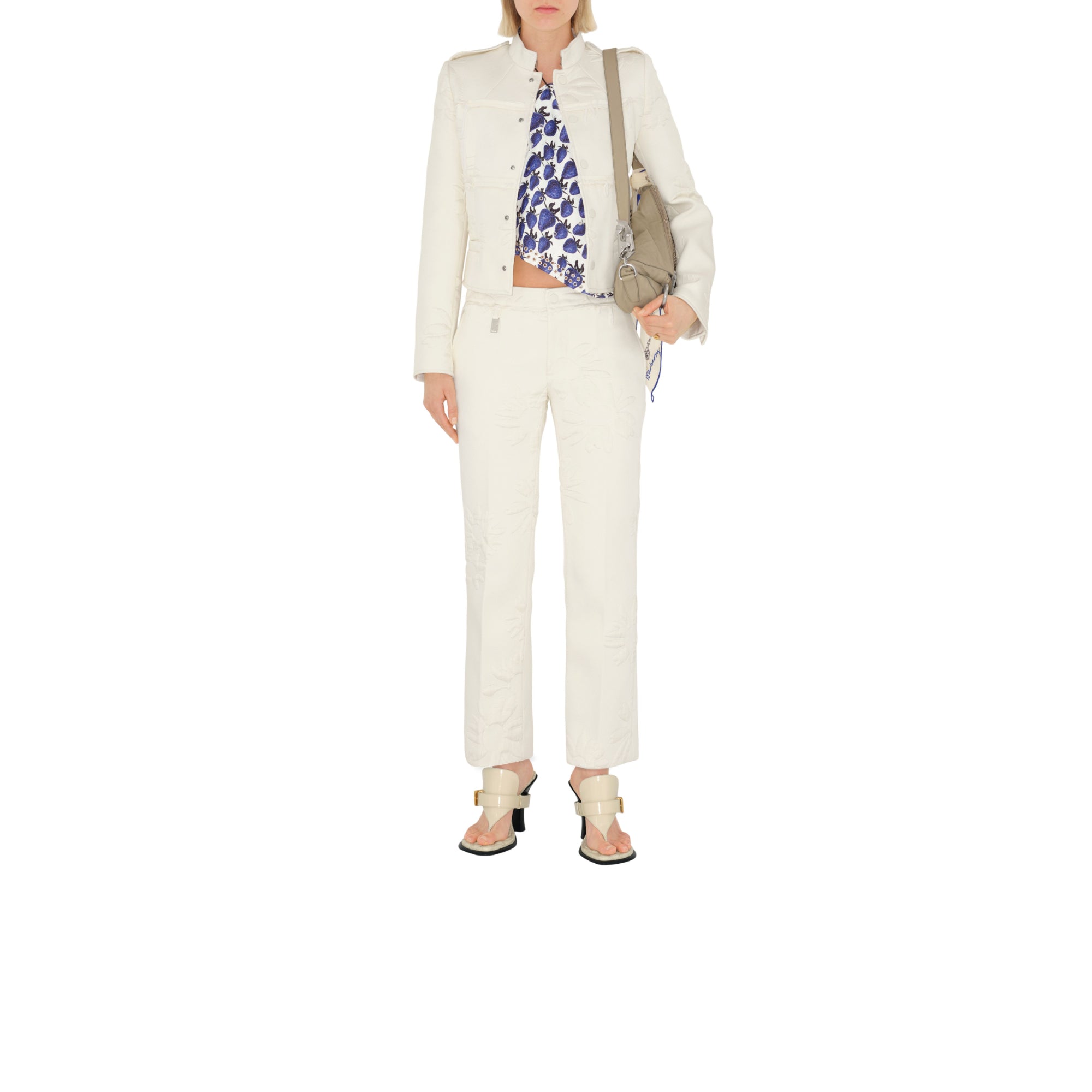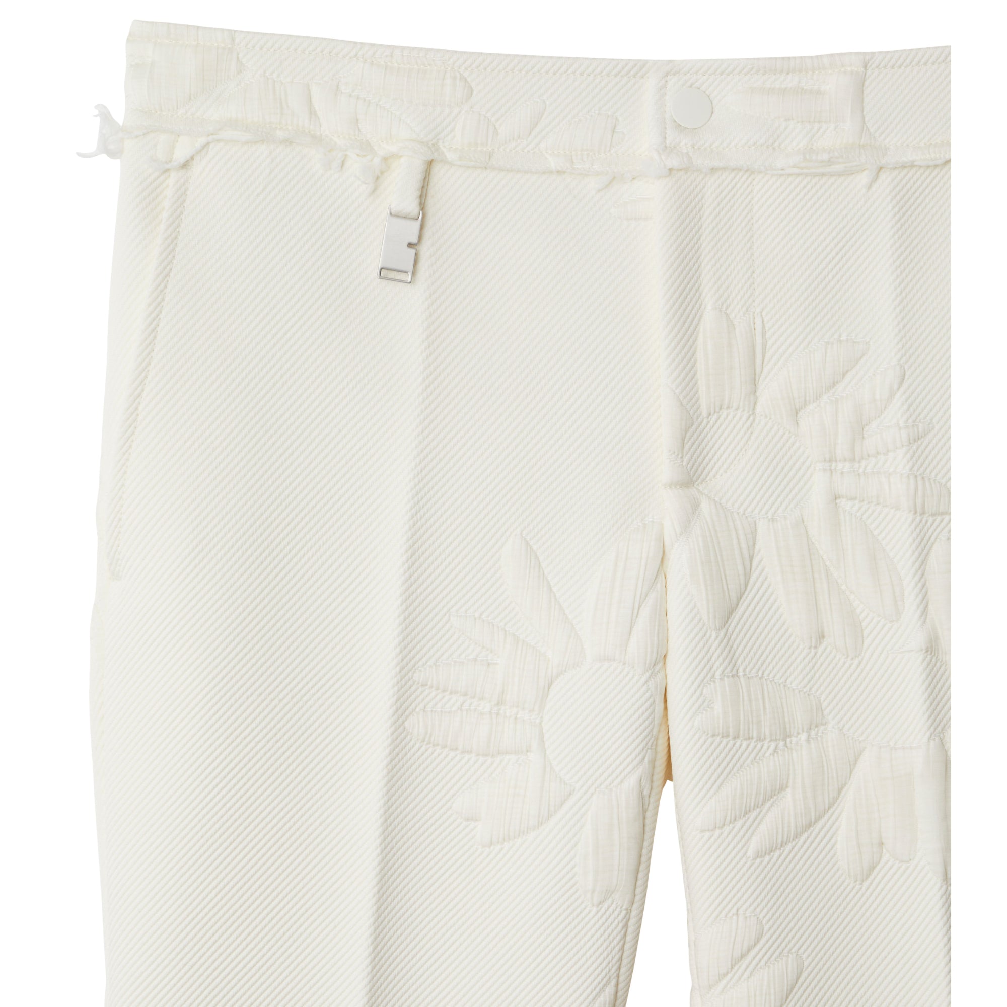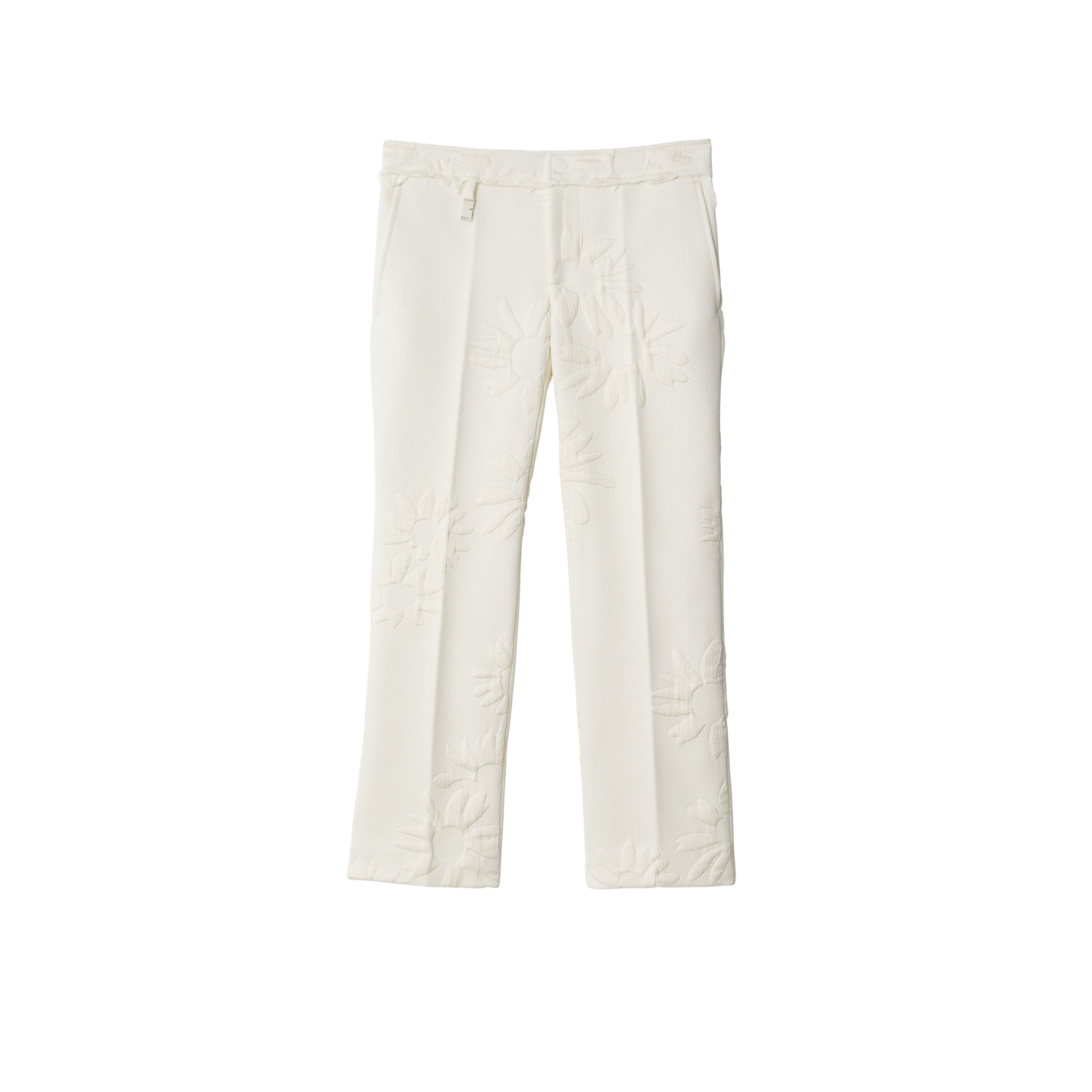 상품설명 : 신축성이 가미된 실크 혼방 소재의 테일러드 팬츠. 버버리 데이지 가든 프린트에서 영감을 받은 퀼팅 플로럴 디자인 및 슬림핏 실루엣이 특징.##스냅 단추, 지퍼 및 단추 여밈#측면의 슬립 포켓, 뒷면의 웰트 포켓#허리밴드의 B 모양 태그