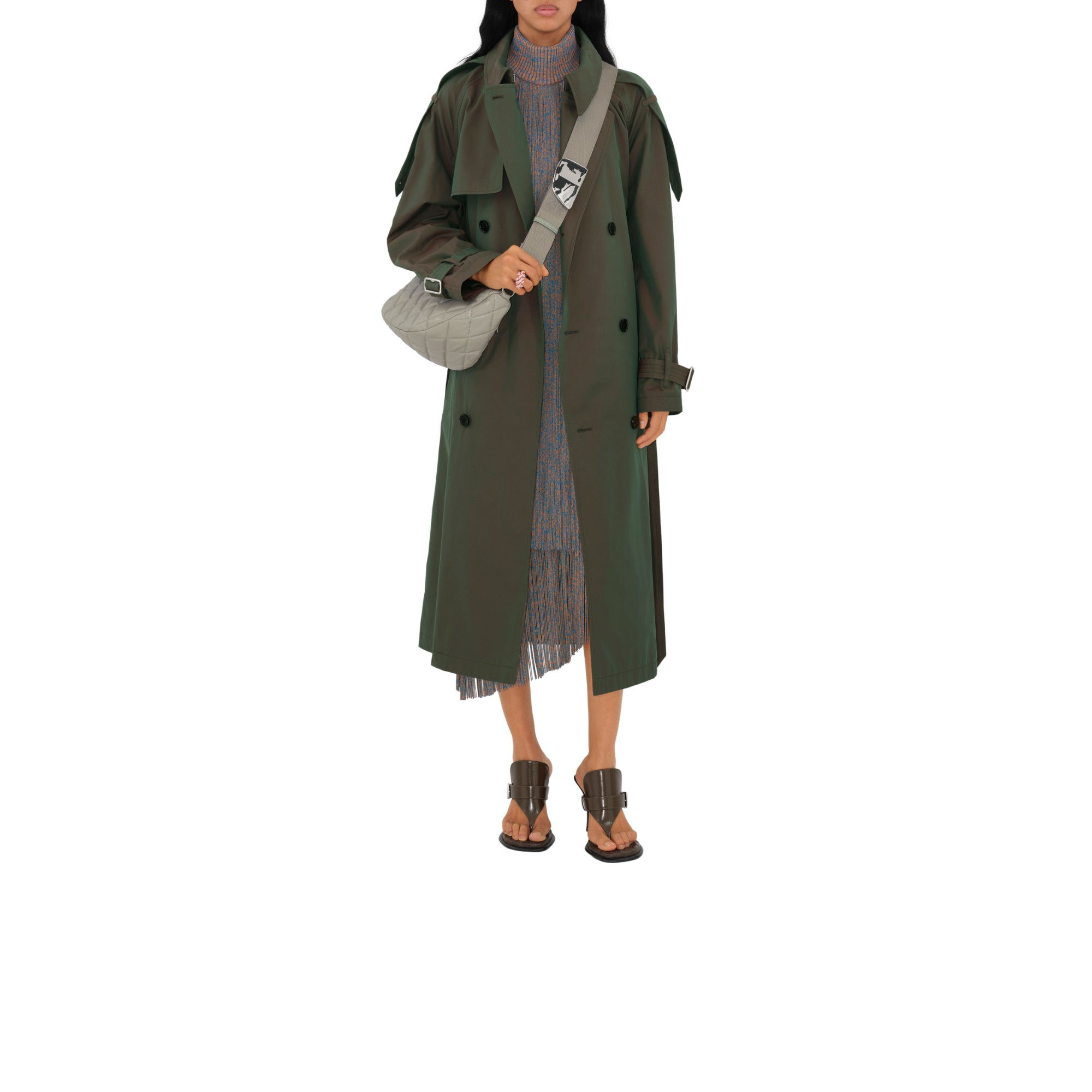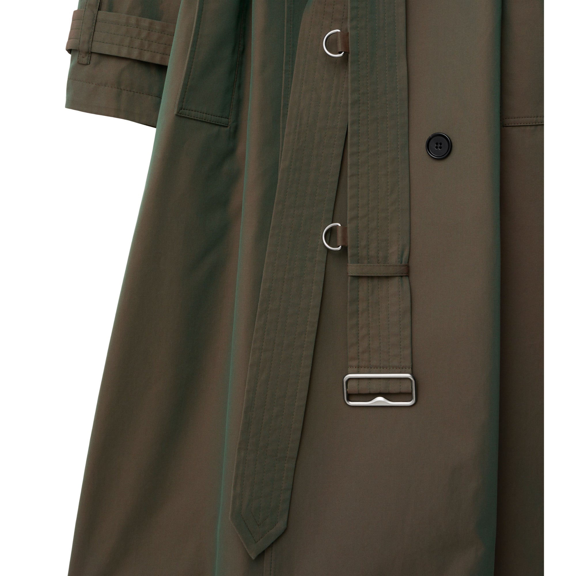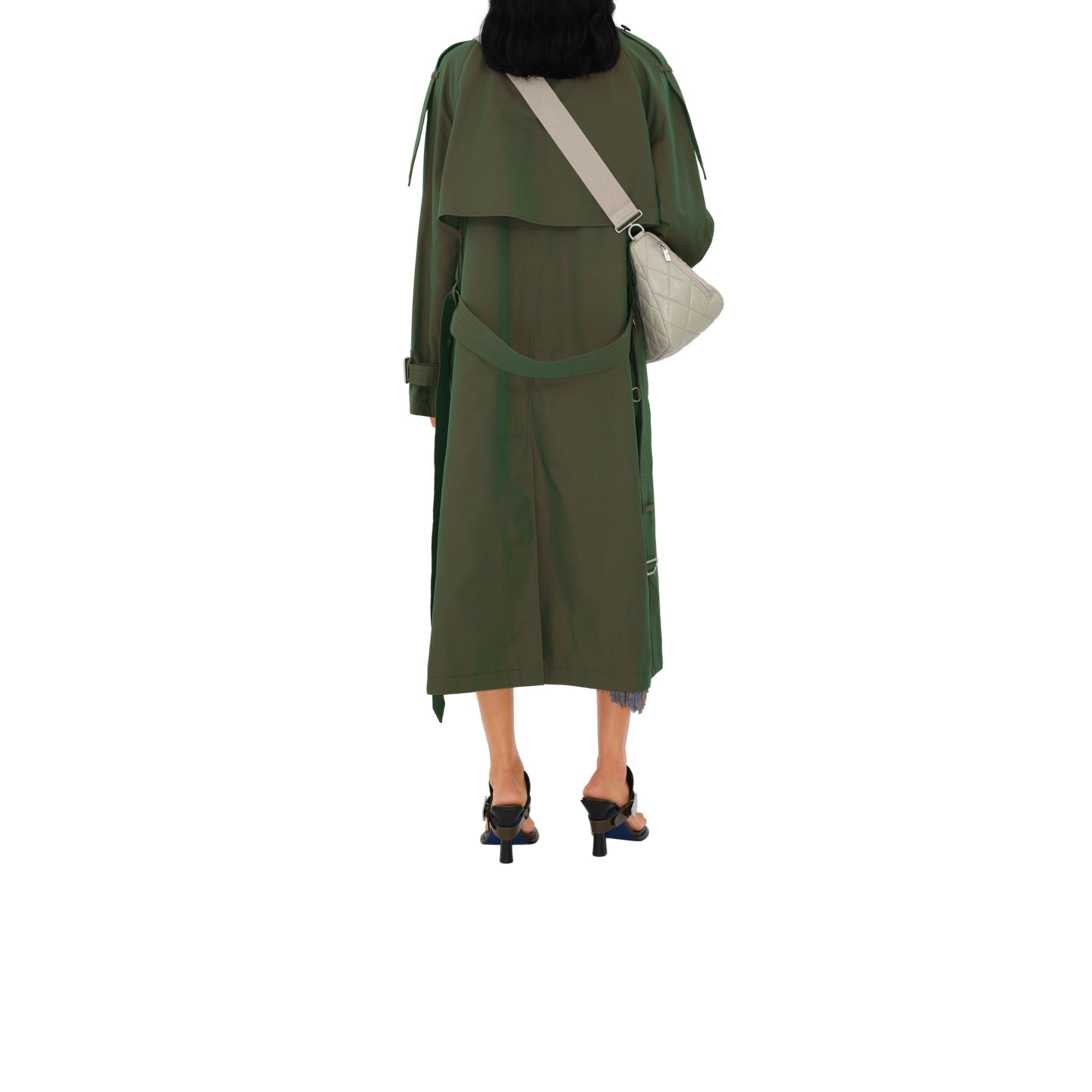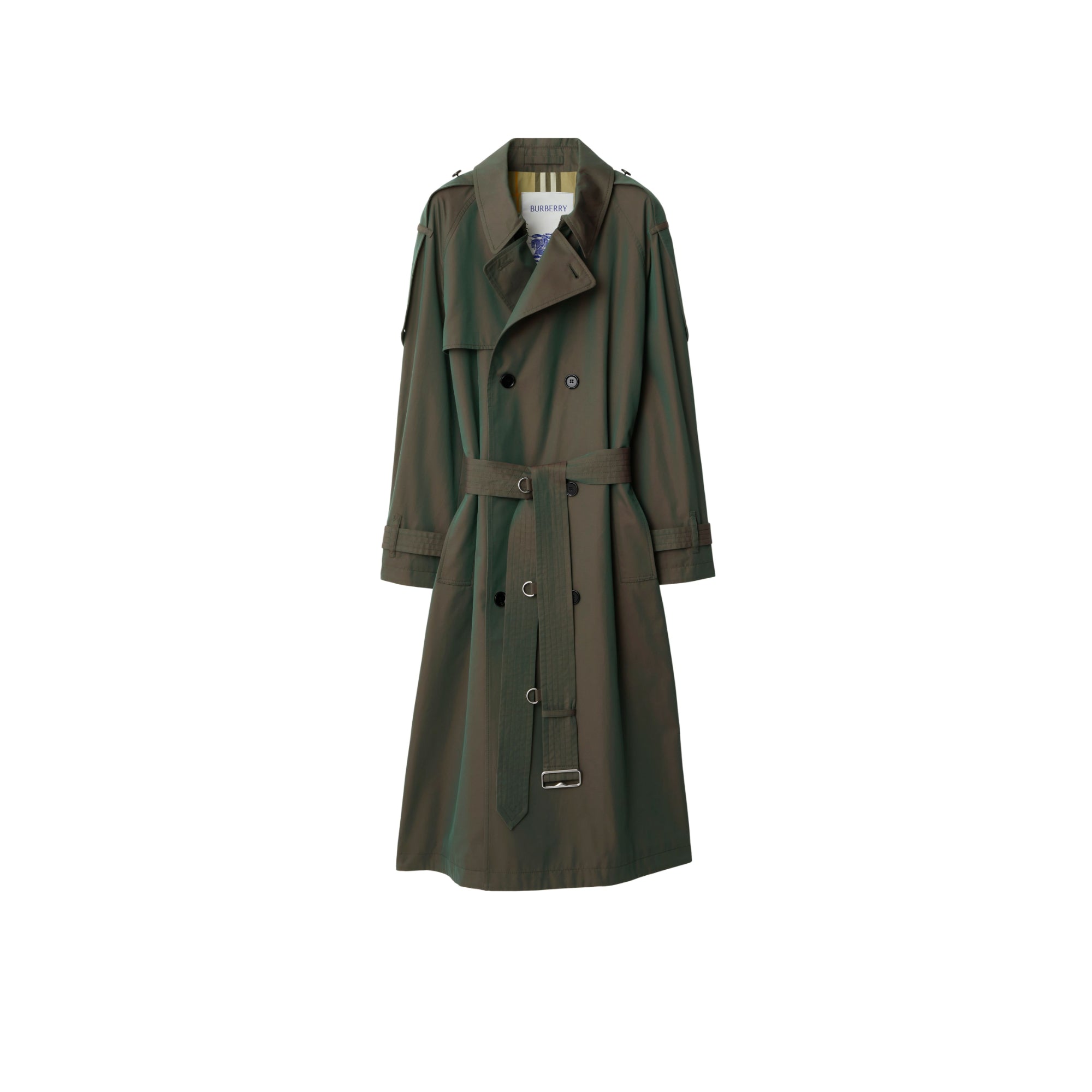 상품설명 : 이리데센트 면 트윌 소재의 트렌치코트. 아카이브에서 받은 영감을 바탕으로, 대비를 이루는 원사를 직조하여 각도에 따라 색상이 다르게 보이는 효과가 연출되었습니다. 1920년대부터 버버리 코트의 안감으로 사용되어 온 버버리 체크 면 소재가 내부를 장식합니다. 릴랙스핏 실루엣 및 핏을 조절할 수 있는 탈착식 벨트가 특징입니다.##더블브레스트 단추 여밈#후크 앤 아이 칼라 여밈#견장#B 버클 벨트#측면의 웰트 포켓#커프스의 벨트 디테일#뒤트임#버버리 체크 안감