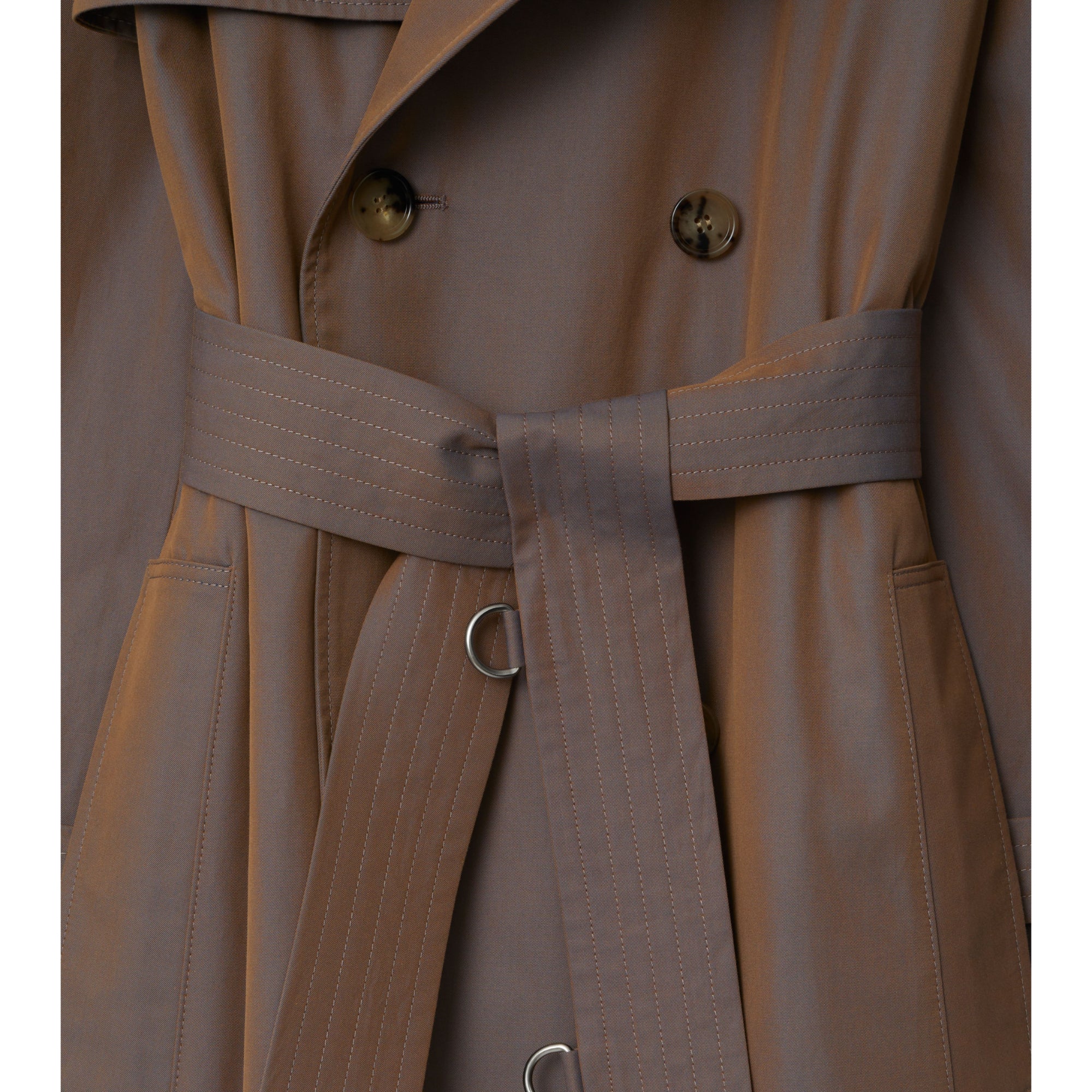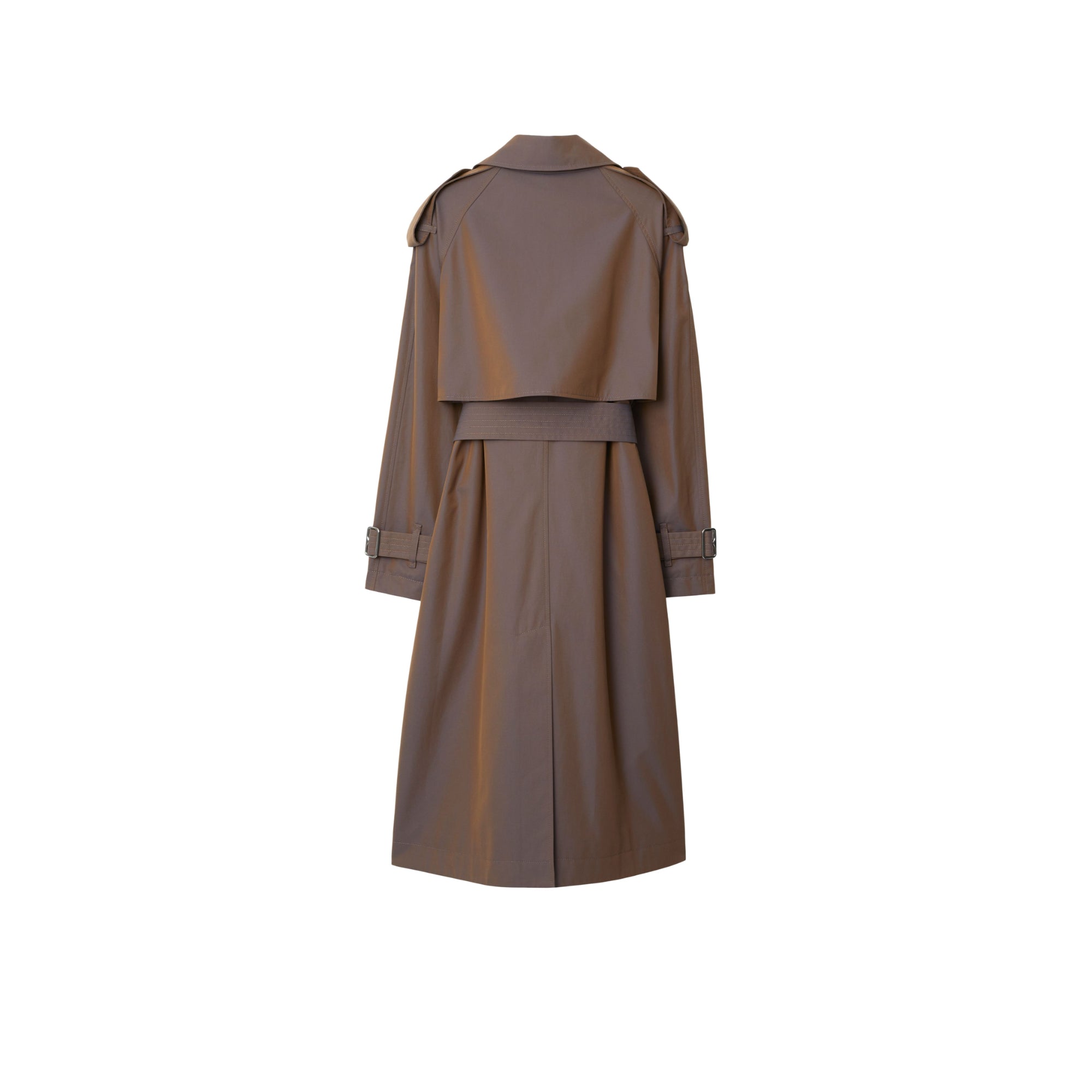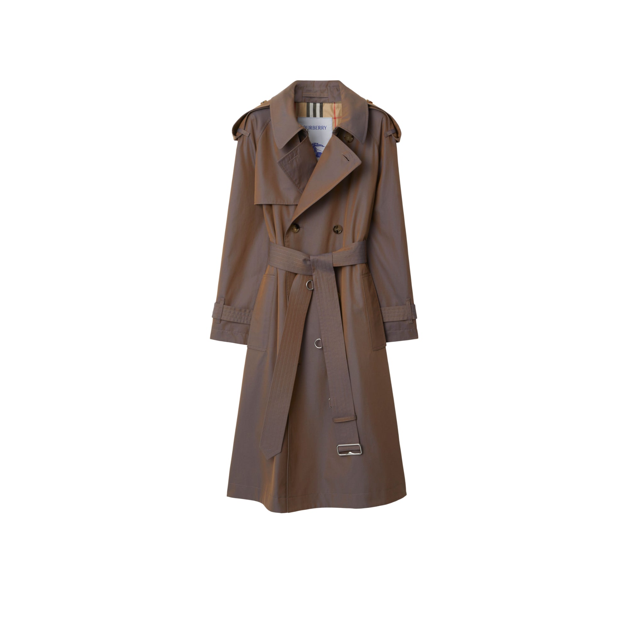 상품설명 : 이리데센트 면 개버딘 소재의 트렌치코트. 아카이브에서 받은 영감을 바탕으로, 대비를 이루는 원사를 직조하여 각도에 따라 색상이 다르게 보이는 효과가 연출되었습니다. 1920년대부터 버버리 코트의 안감으로 사용되어 온 버버리 체크 면 소재가 내부를 장식합니다. 릴랙스핏 실루엣 및 핏을 조절할 수 있는 탈착식 벨트가 특징입니다.##더블브레스트 단추 여밈#후크 앤 아이 칼라 여밈#견장#B 버클 벨트#측면의 웰트 포켓#커프스의 벨트 디테일#뒤트임#버버리 체크 안감