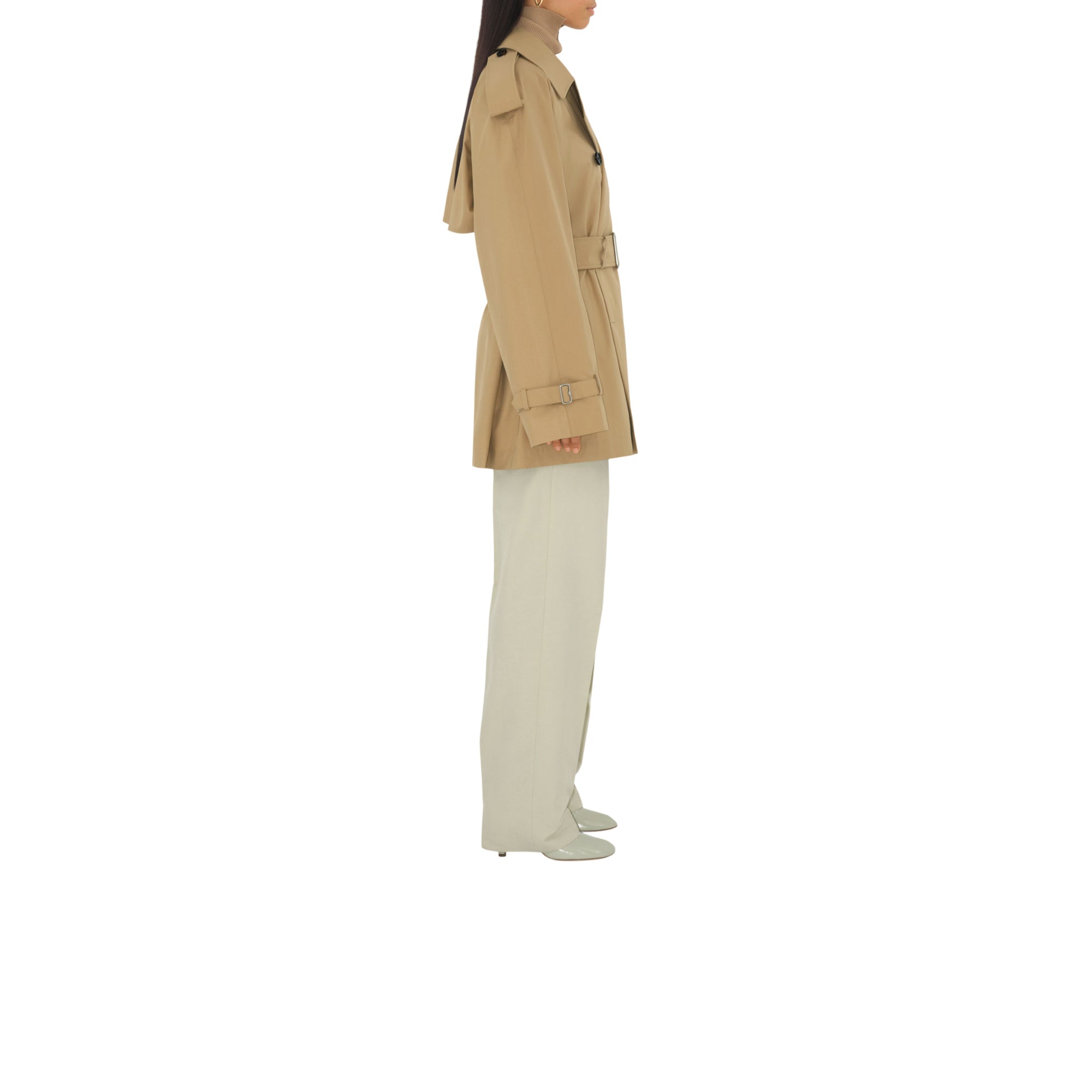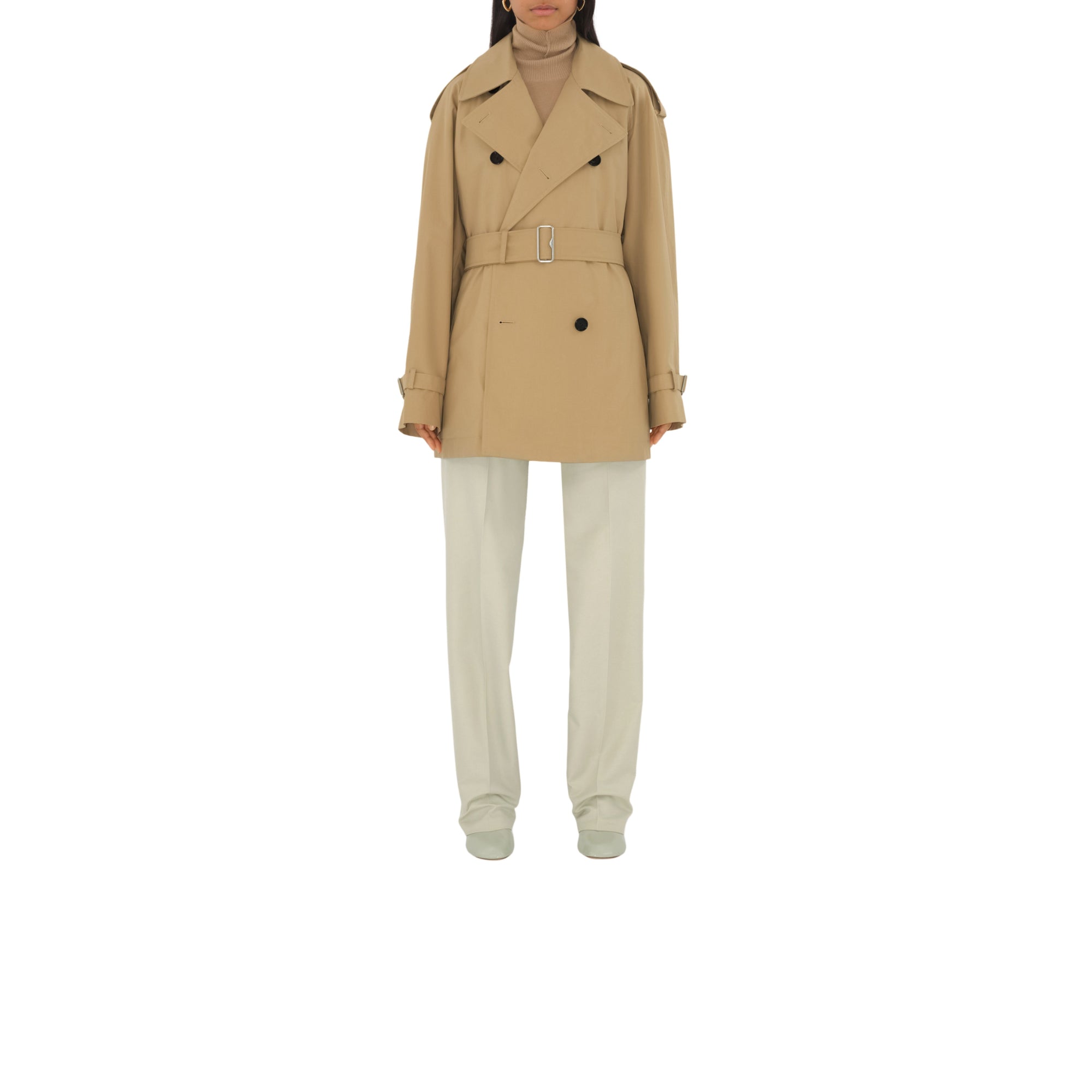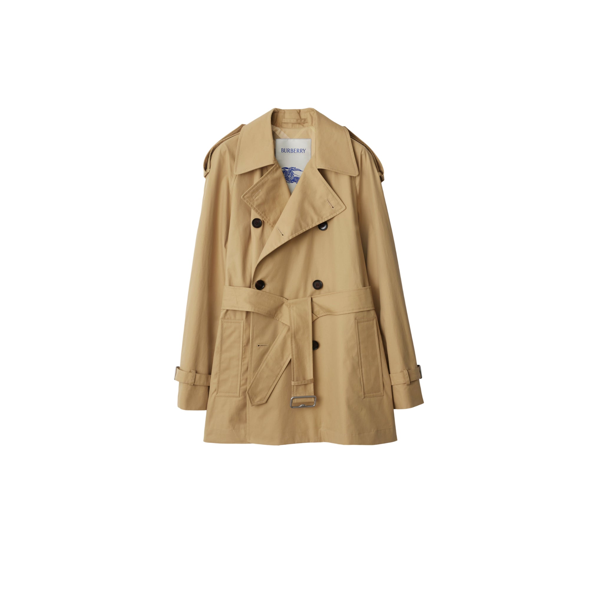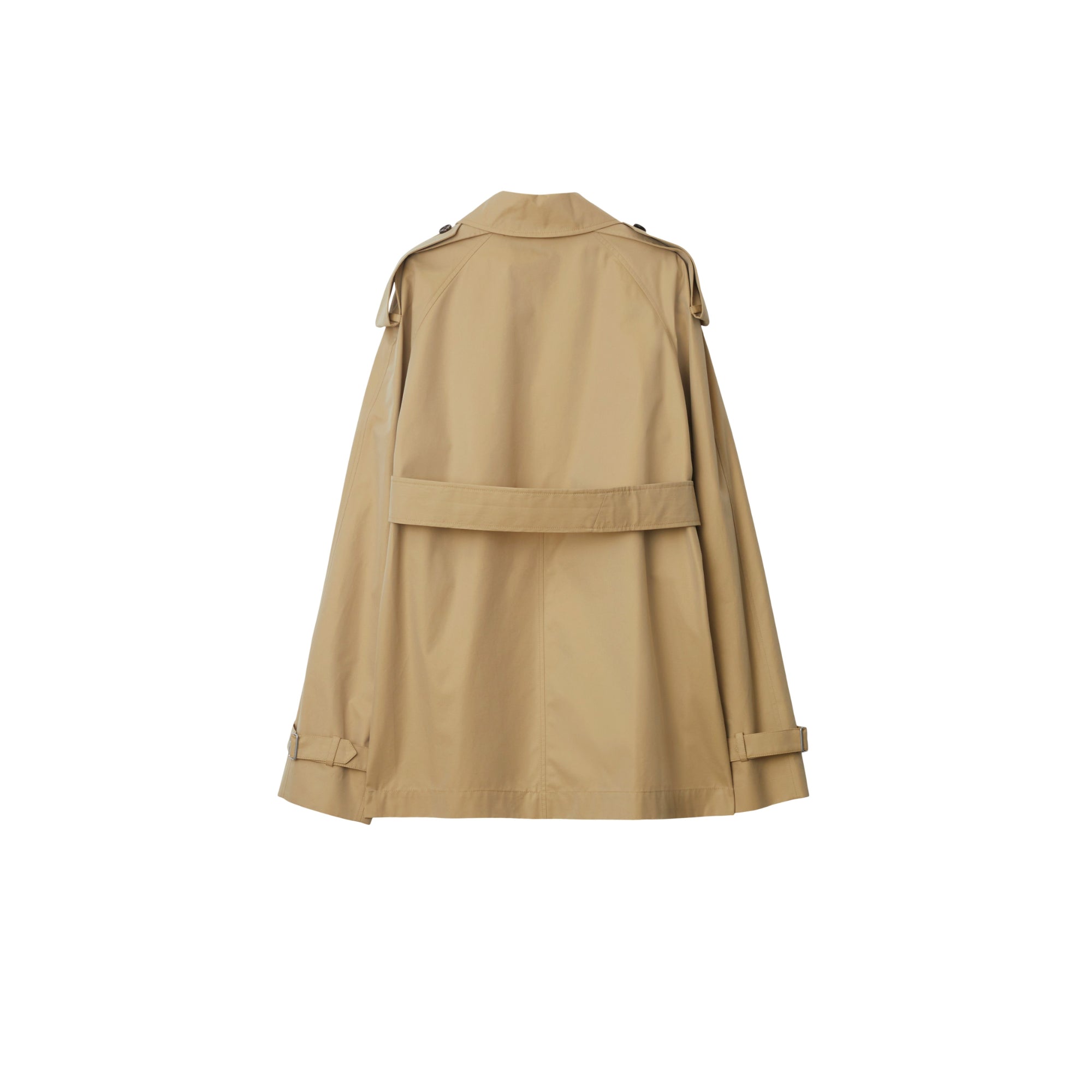 상품설명 : 생활 방수 면 개버딘 소재의 트렌치코트. 1920년대부터 버버리 코트의 안감으로 사용되어 온 버버리 체크 면 소재가 내부를 장식합니다. 오버사이즈핏 실루엣과 래글런 소매가 특징입니다.##더블브레스트 단추 여밈#견장#B 버클 벨트#측면의 웰트 포켓#커프스의 벨트 디테일#안감과 밑깃의 버버리 체크