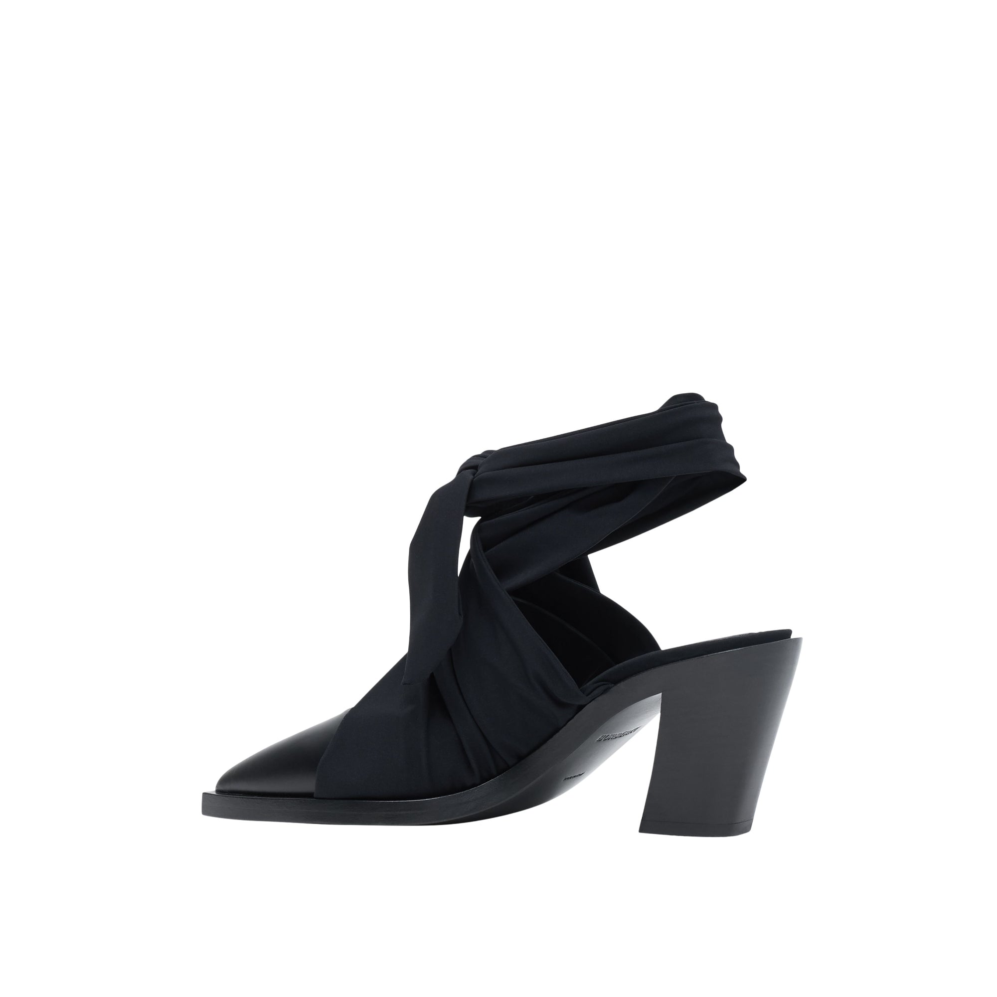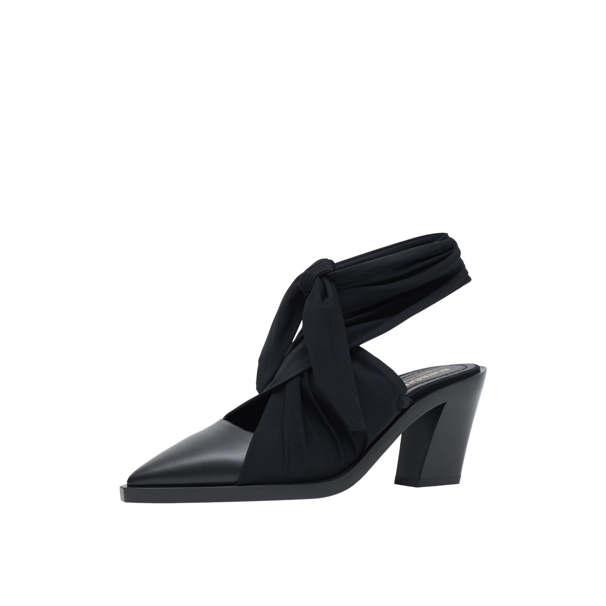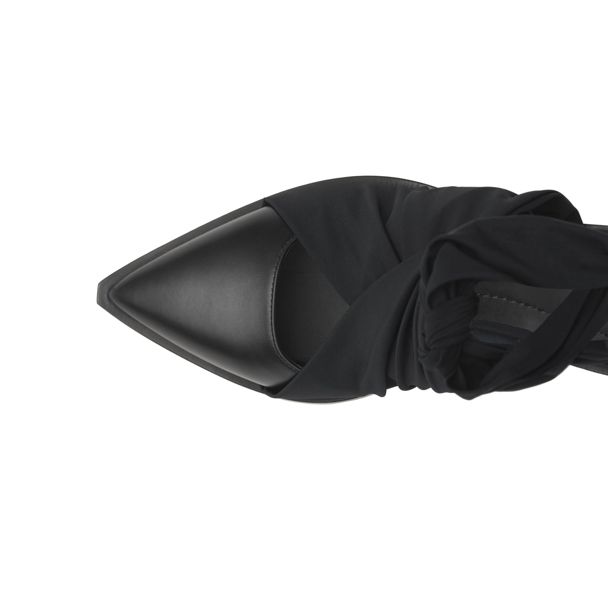 스카프 타이 디테일 레더 포인트 토 뮬 블랙
