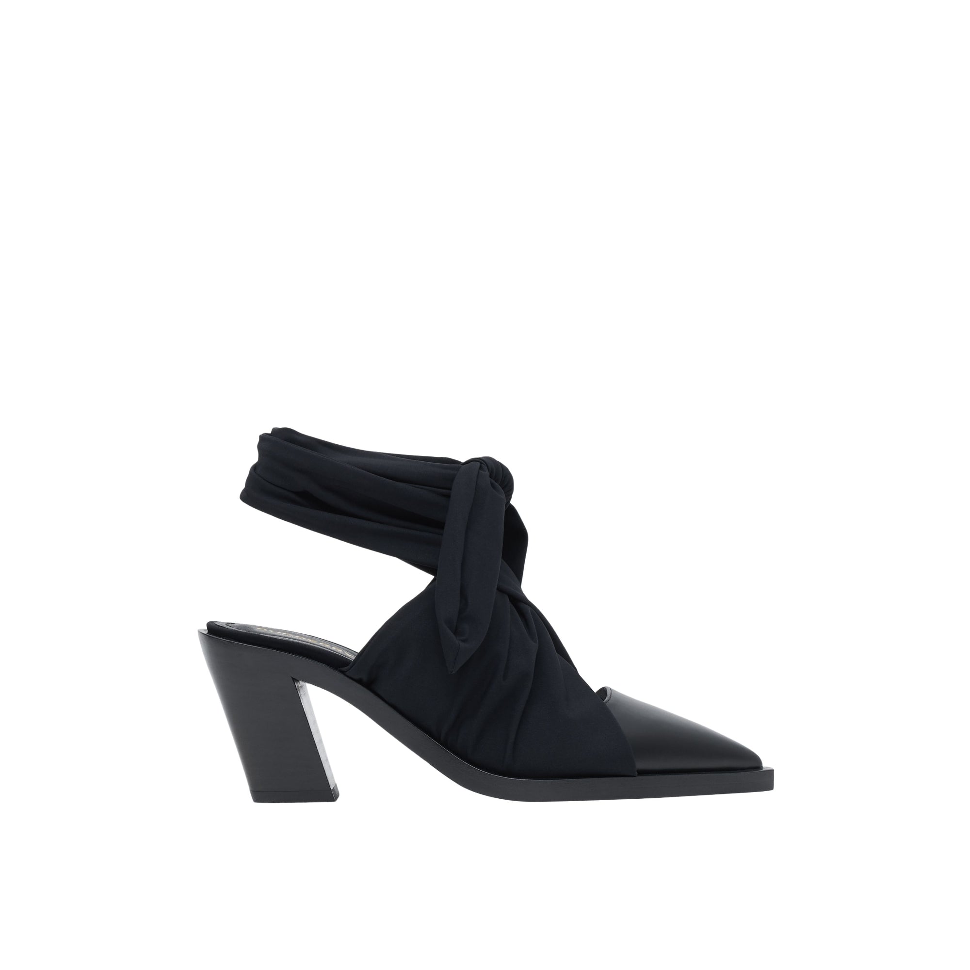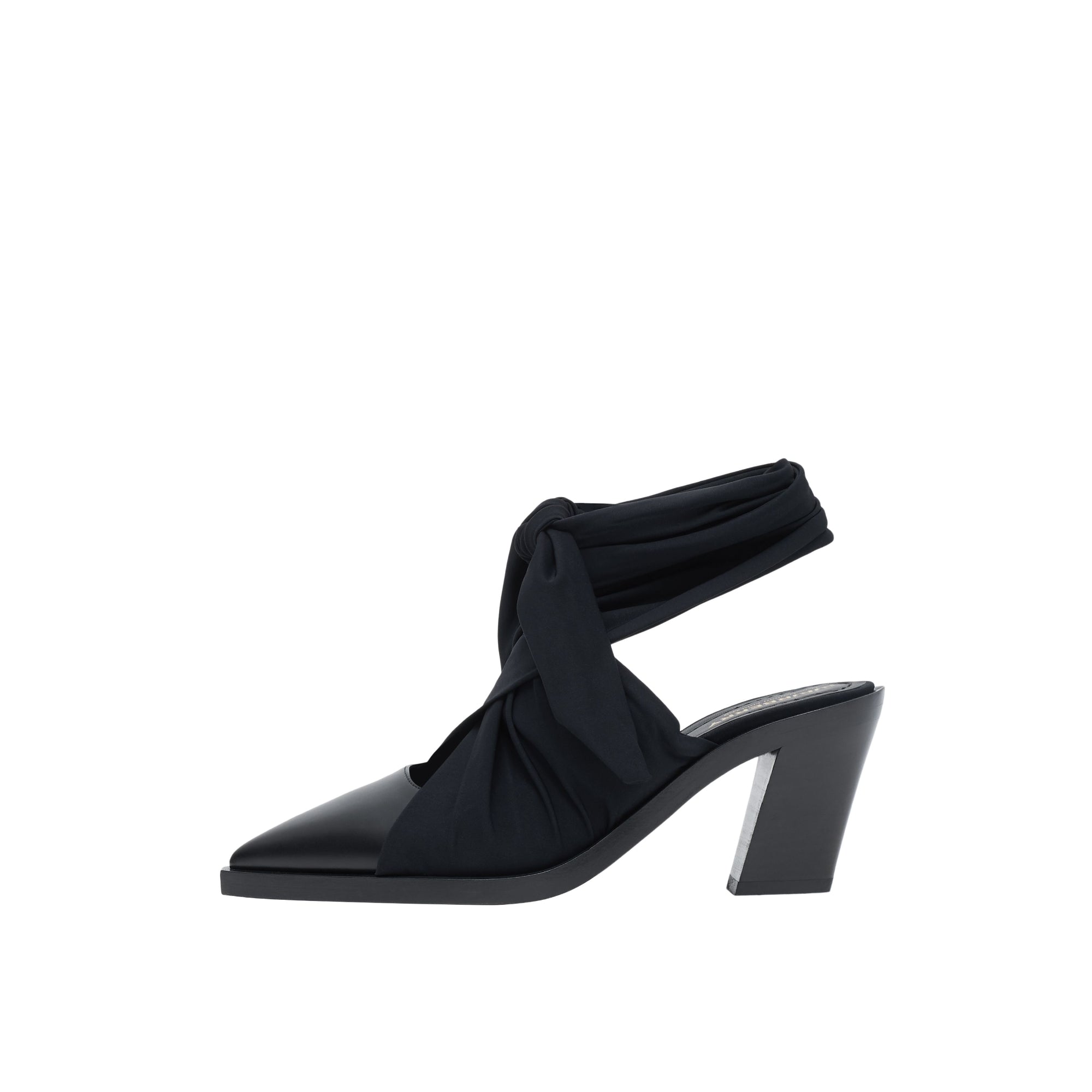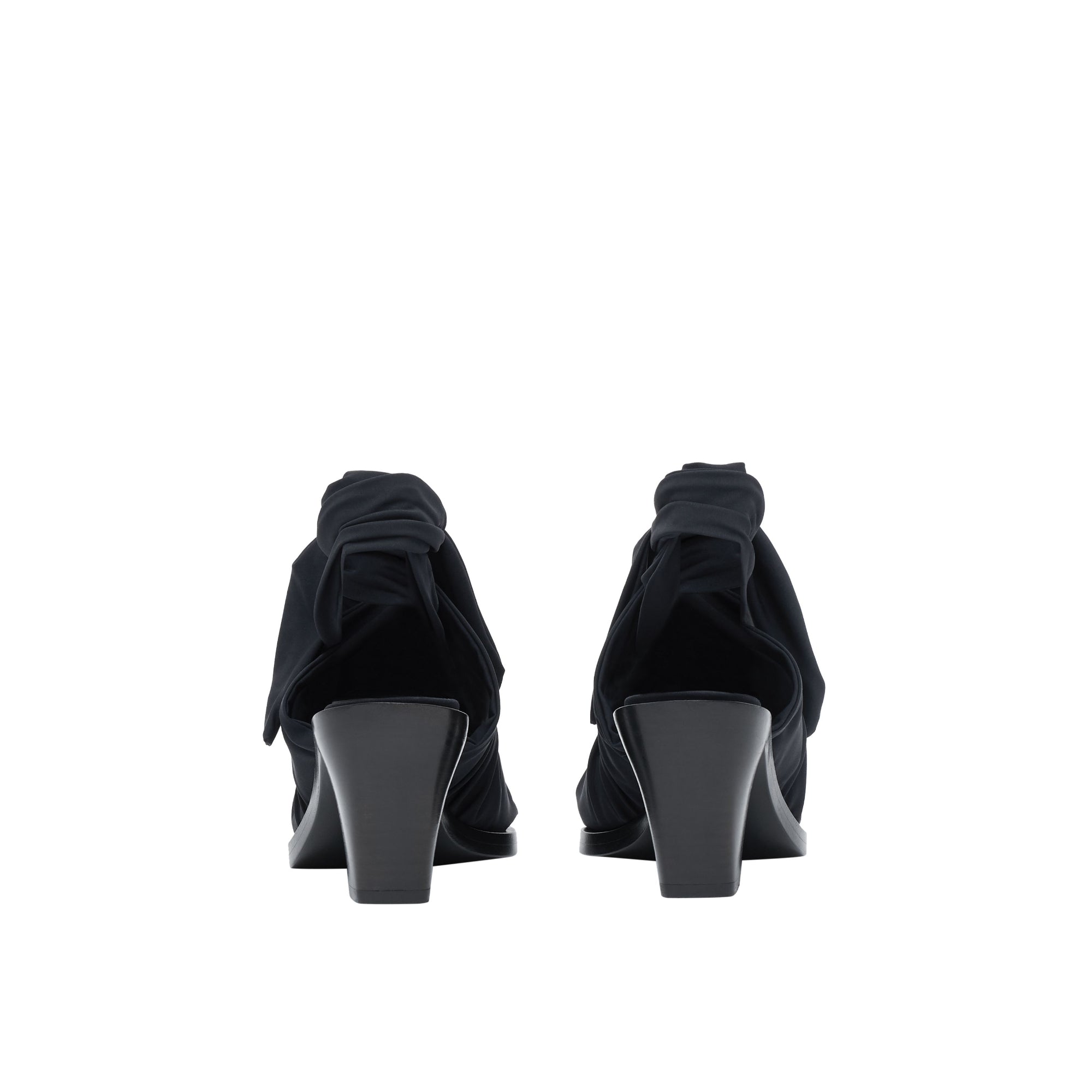 스카프 타이 디테일 레더 포인트 토 뮬 블랙