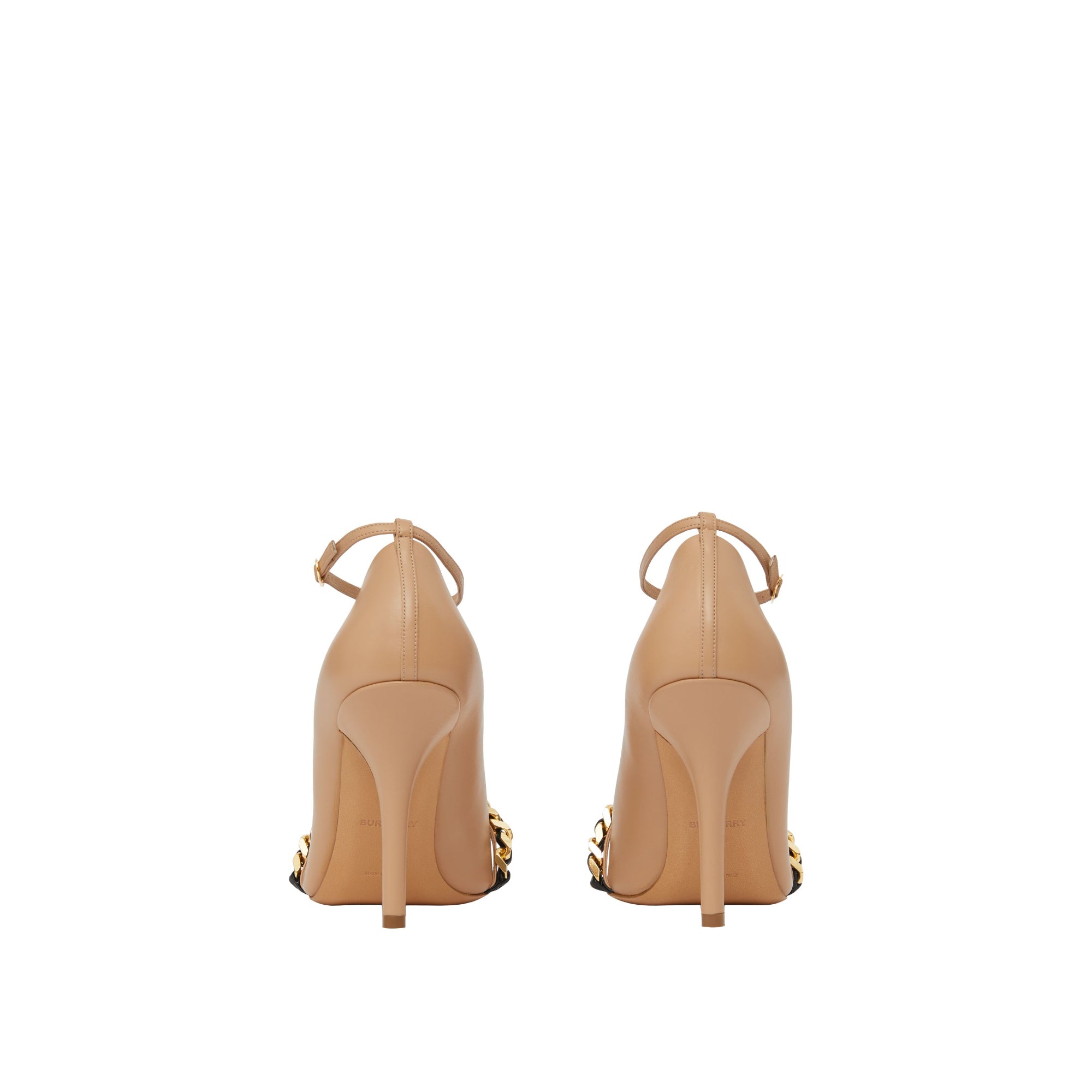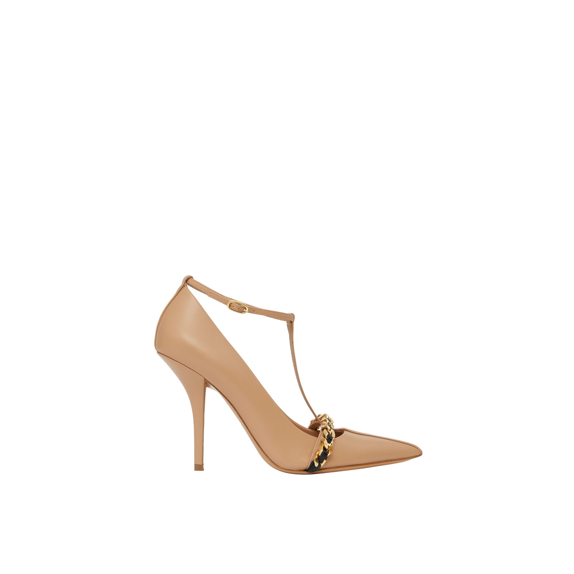 체인 트리밍 레더 포인트 토 펌프스 쿨 베이지