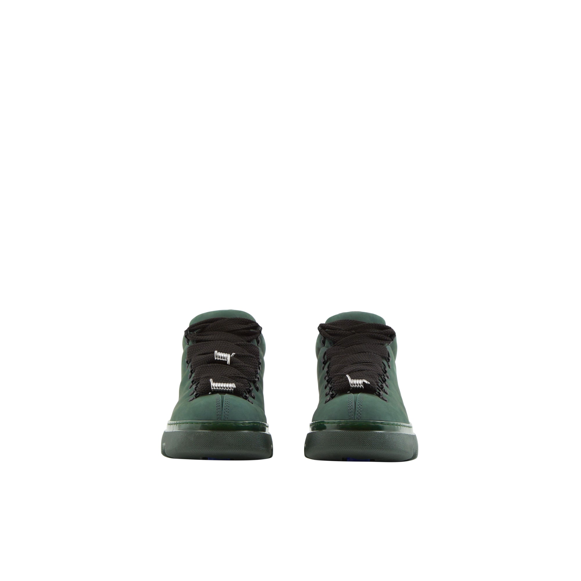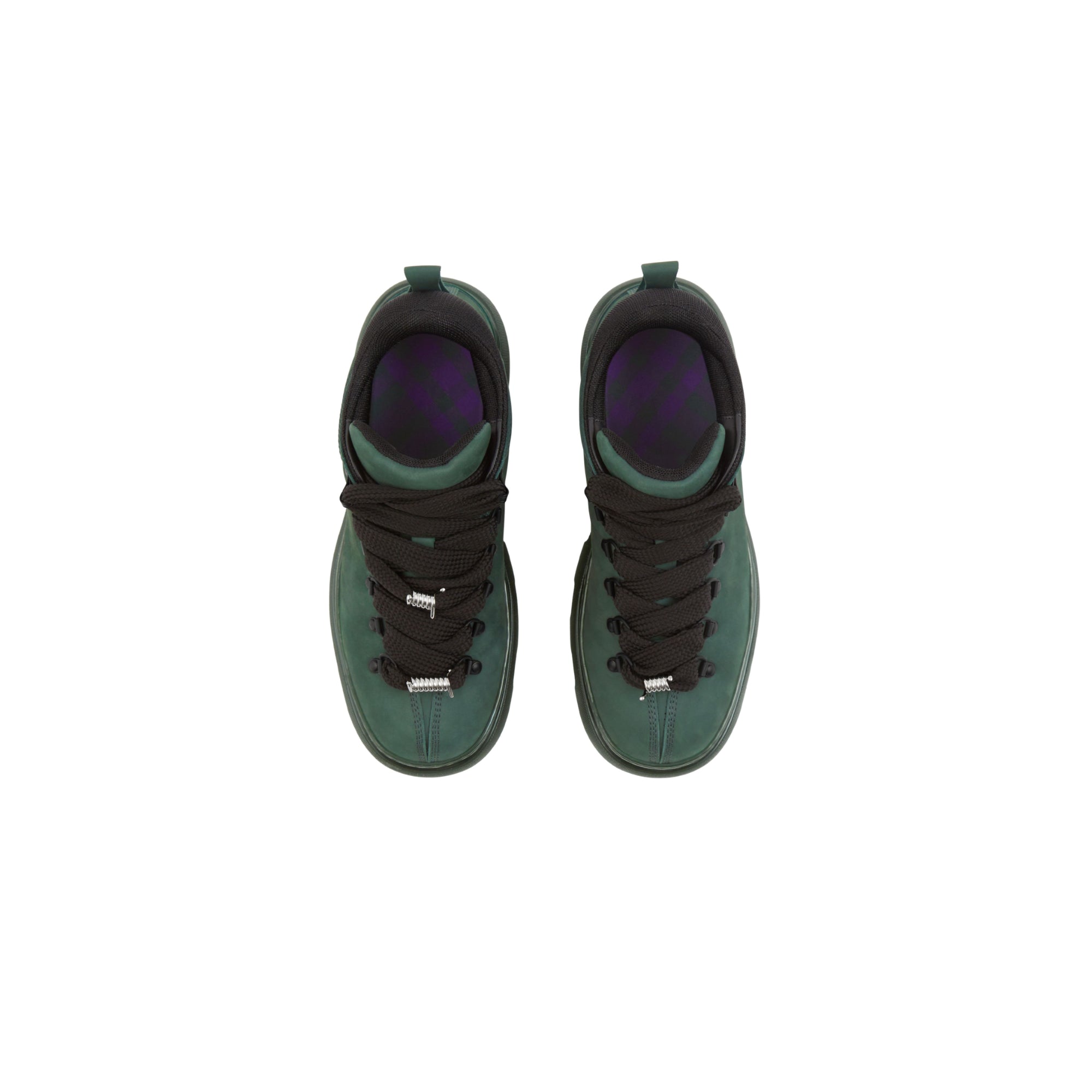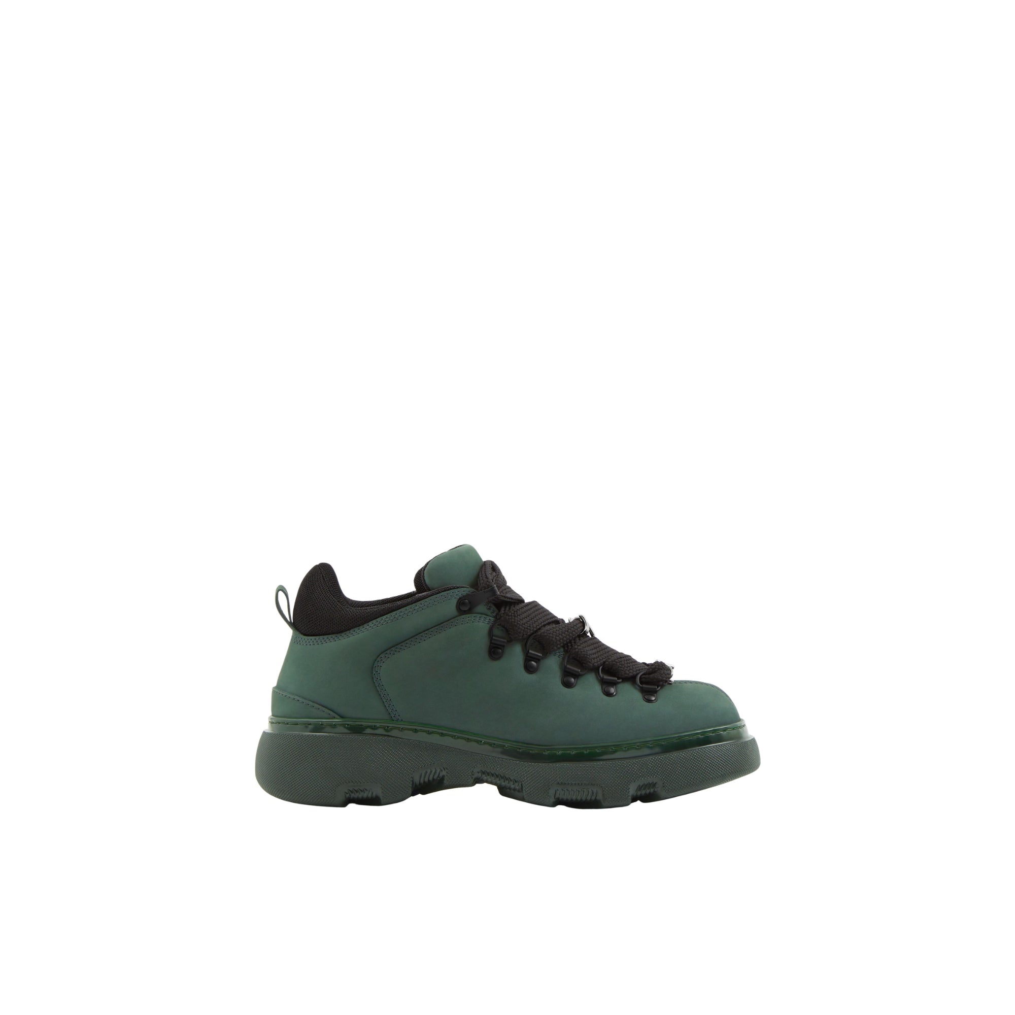 상품설명 : 누벅 가죽 소재로 이탈리아에서 제작된 하이킹 스타일 부츠. 패딩 처리된 메시 안감이 특징. 독특한 와이어 하드웨어 디테일이 연출된 신발끈이 돋보이며 고무 밑창에 몰딩 처리된 아카이브 버버리 레터링이 특별함을 더하는 아이템.##레이스업 여밈#둥근 앞코#바브드 와이어 하드웨어#체크 안창#밑창의 버버리 레터링