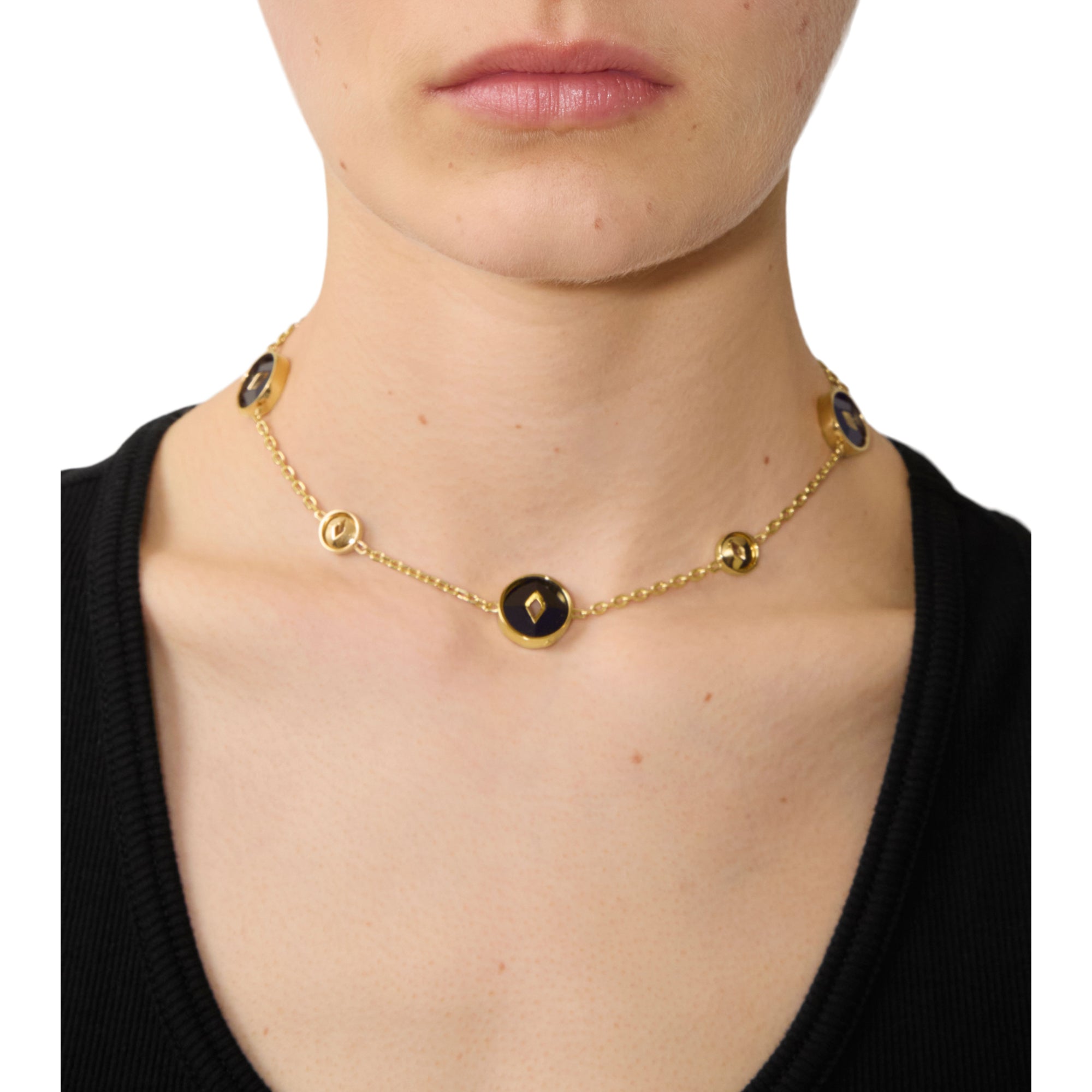 상품설명 : 금 도금 스털링 실버 소재로 이탈리아에서 제작된 네크리스. 조절 가능한 체인 링크 디자인 및 할로우 메달리언의 오닉스 디테일이 특징.##스프링 링 클래스프 여밈#B 모양 참