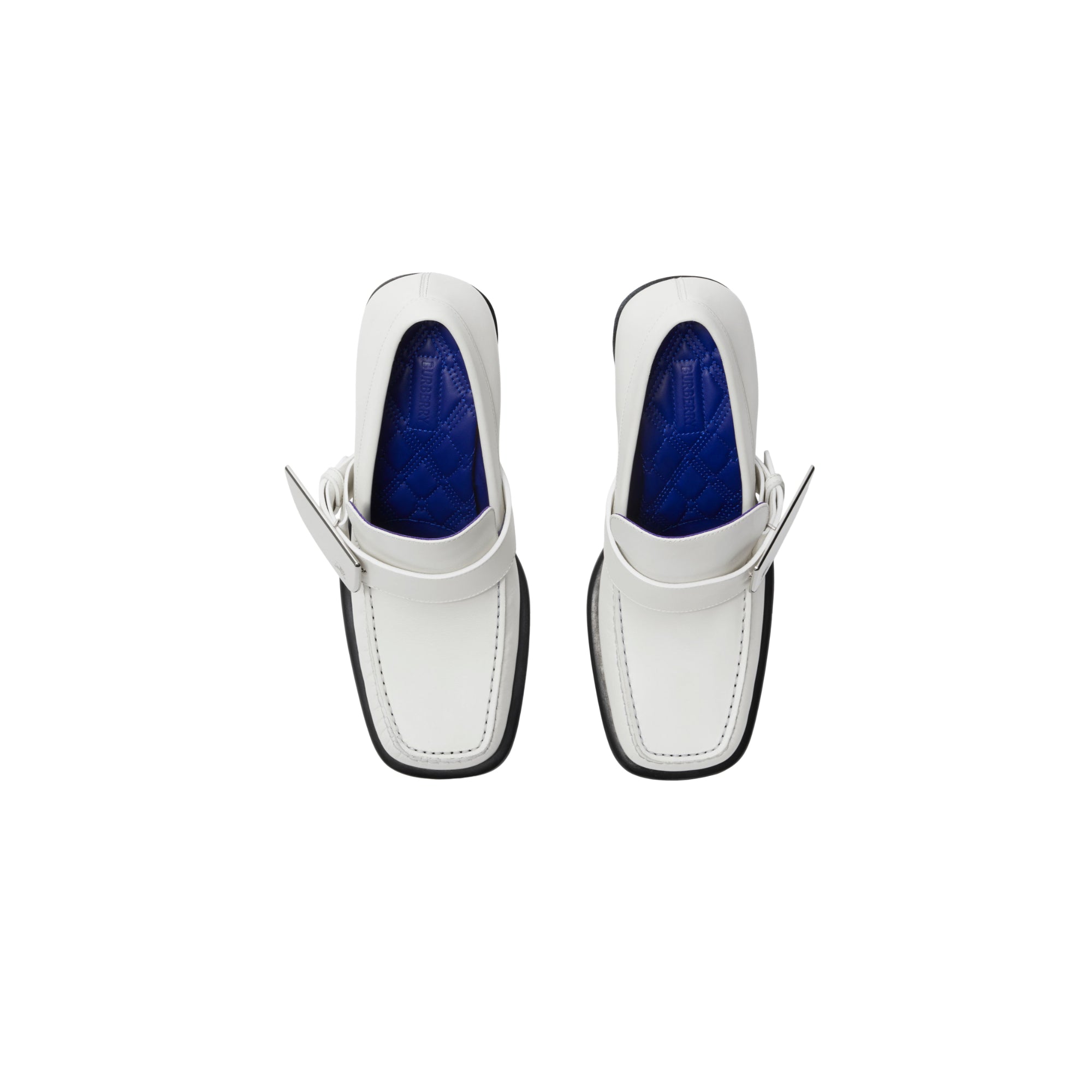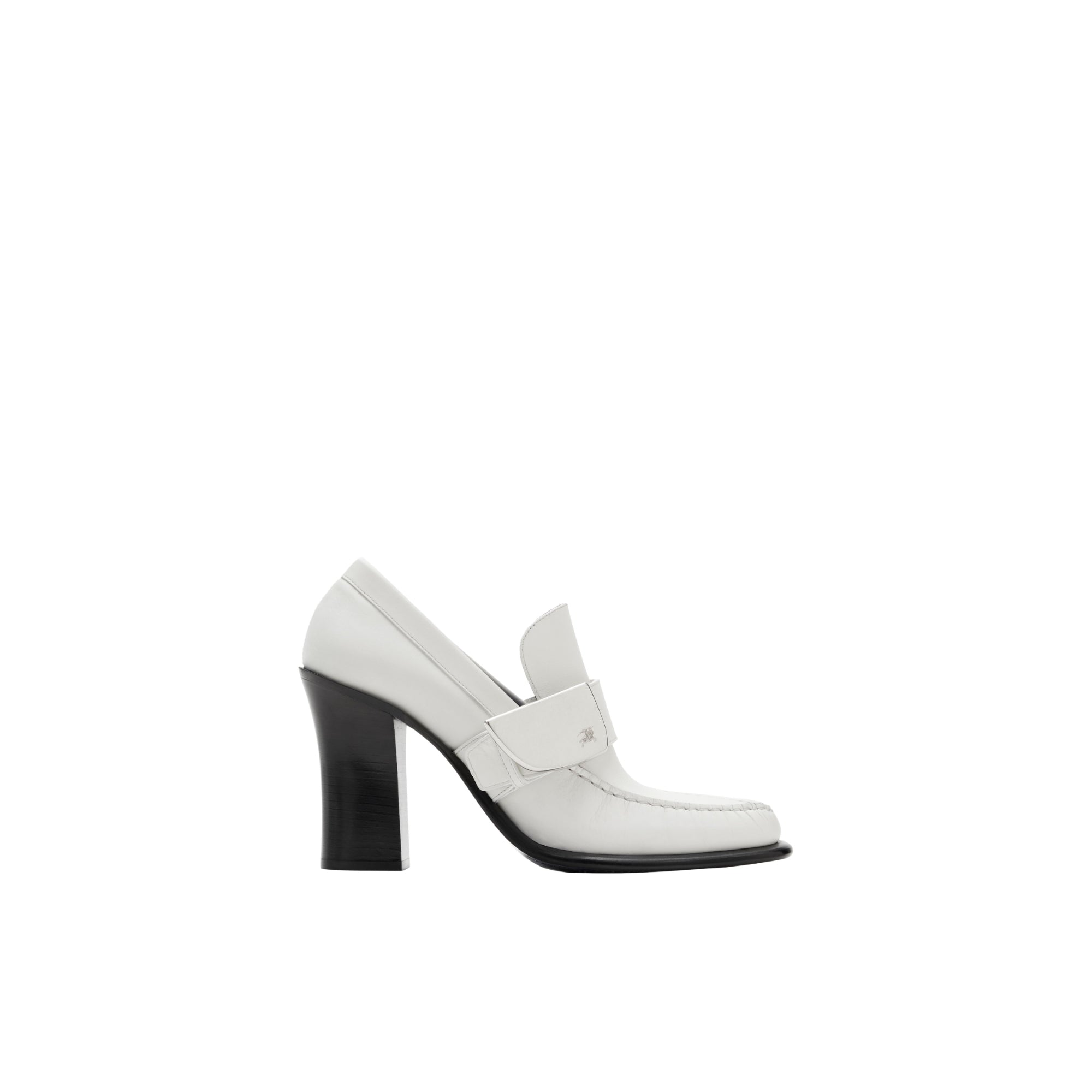 상품설명 : 가죽 소재로 이탈리아에서 제작된 힐 로퍼. 넓은 스트랩의 쉴드 플라크에 새겨진 기마상 디자인(Equestrian Knight Design, EKD)이 특징.##둥근 앞코#퀼팅 가죽 안창#블록 힐#밑창의 기마상 디자인(Equestrian Knight Design, EKD)