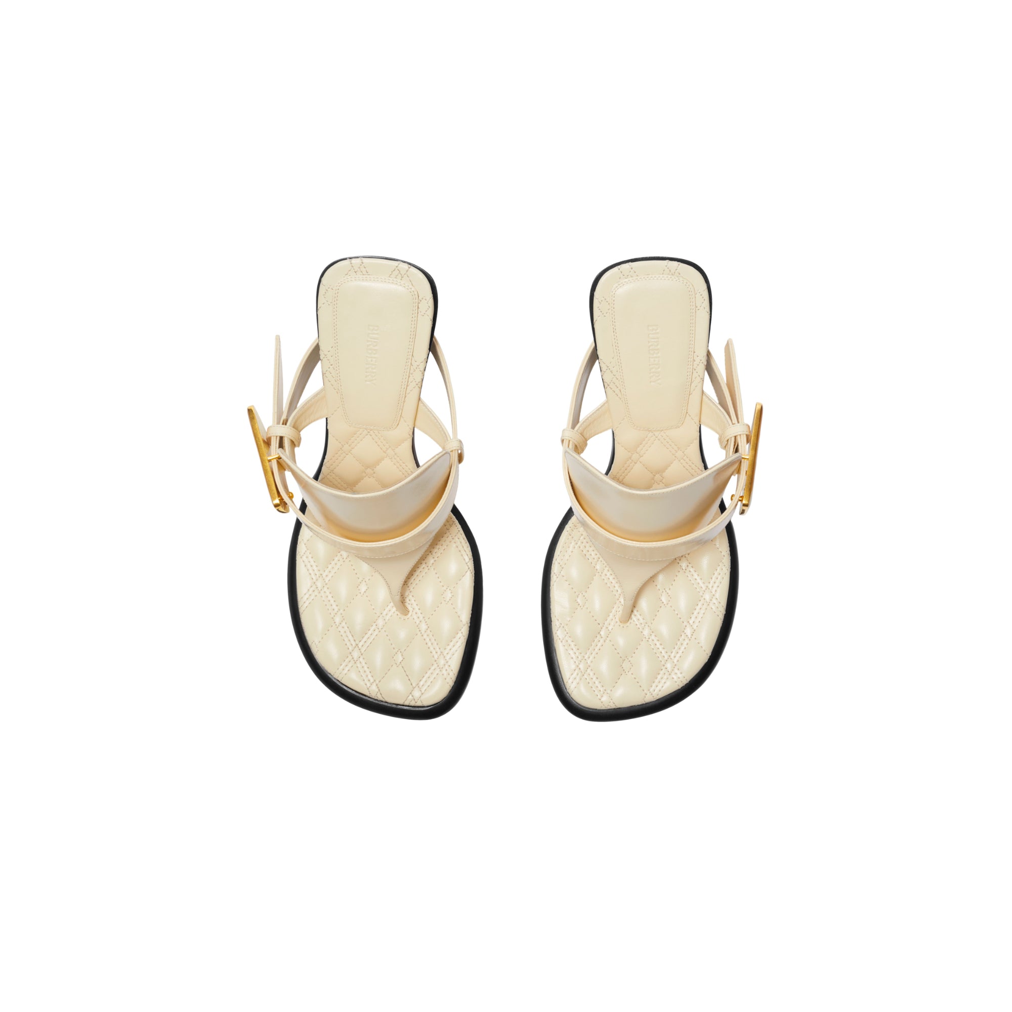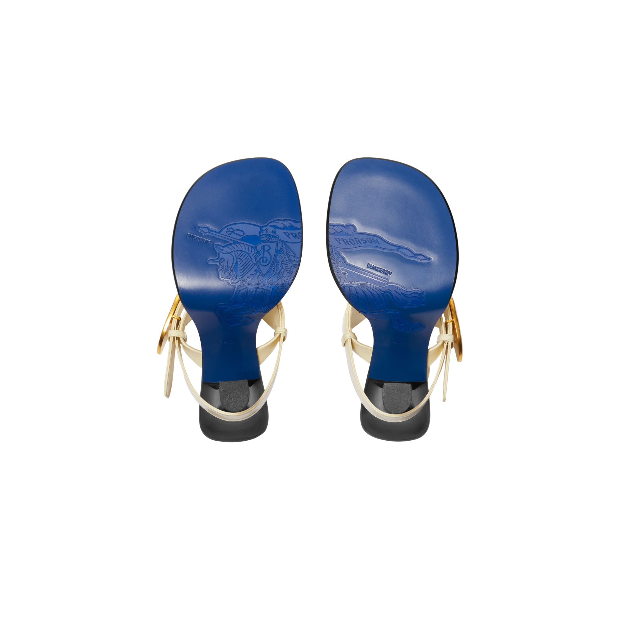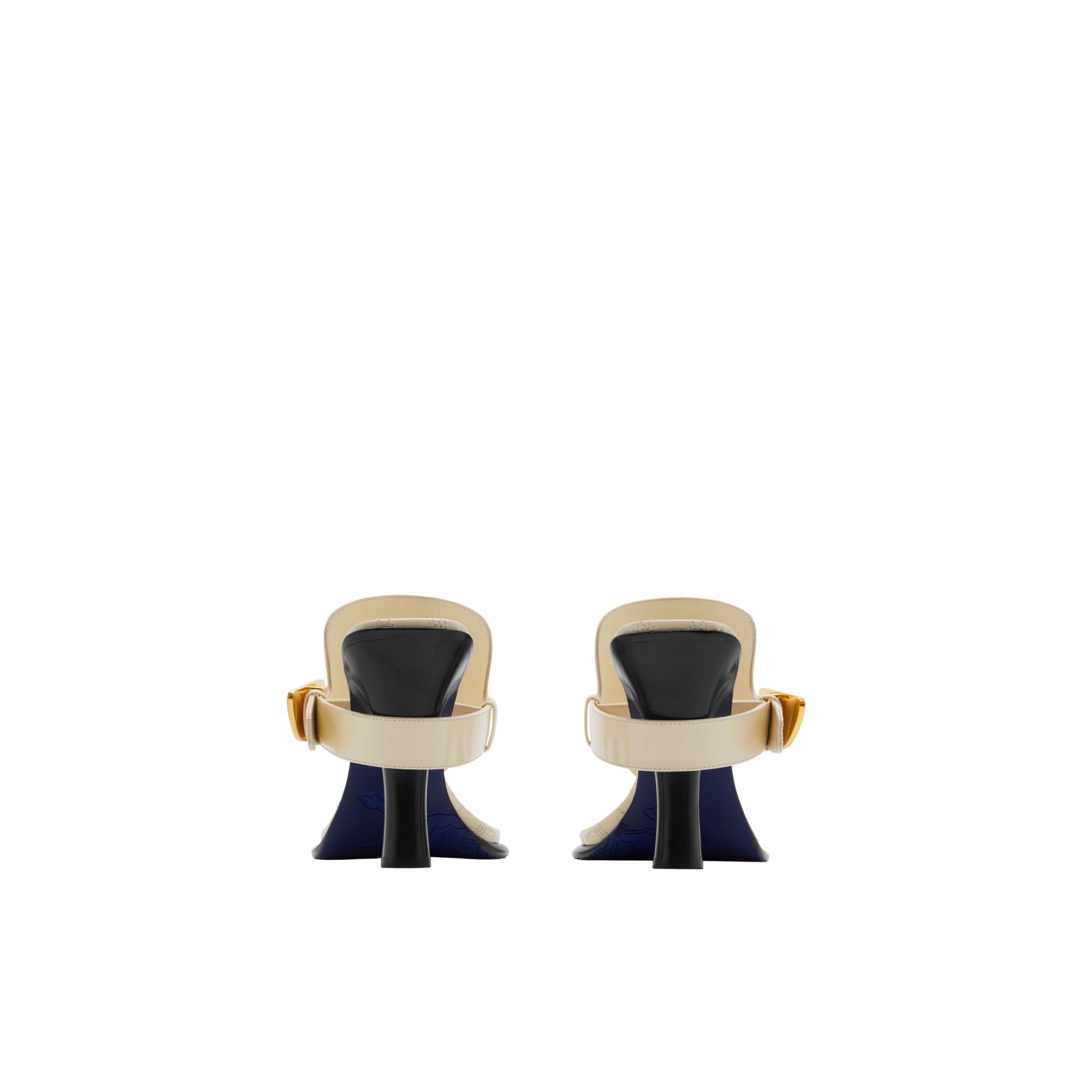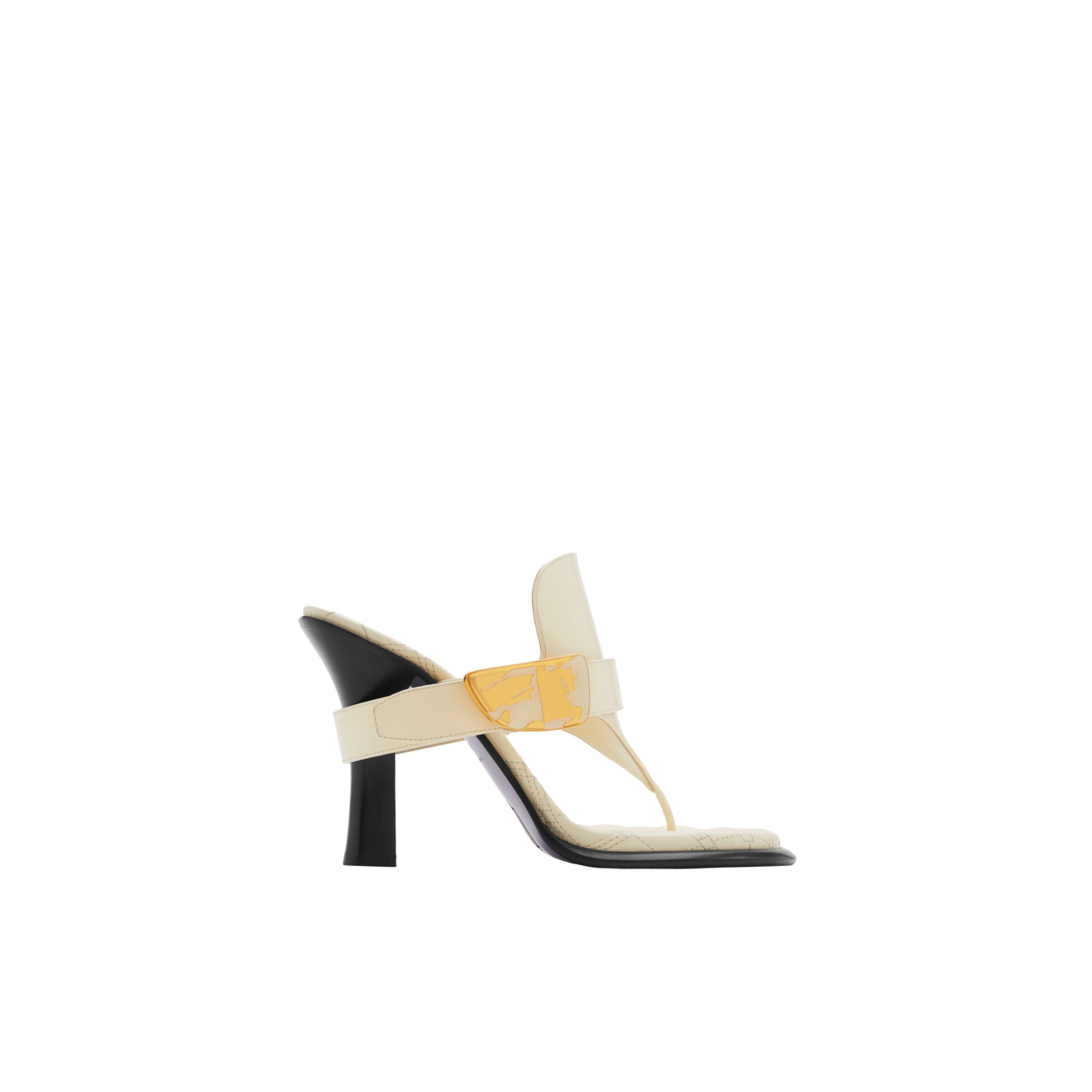 상품설명 : 송아지 가죽 소재로 이탈리아에서 제작된 힐 샌들. 넓은 스트랩의 쉴드 플라크에 연출된 에나멜 기마상 디자인(Equestrian Knight Design, EKD)이 특징.##사각 앞코#퀼팅 가죽 안창#밑창의 기마상 디자인(Equestrian Knight Design, EKD)