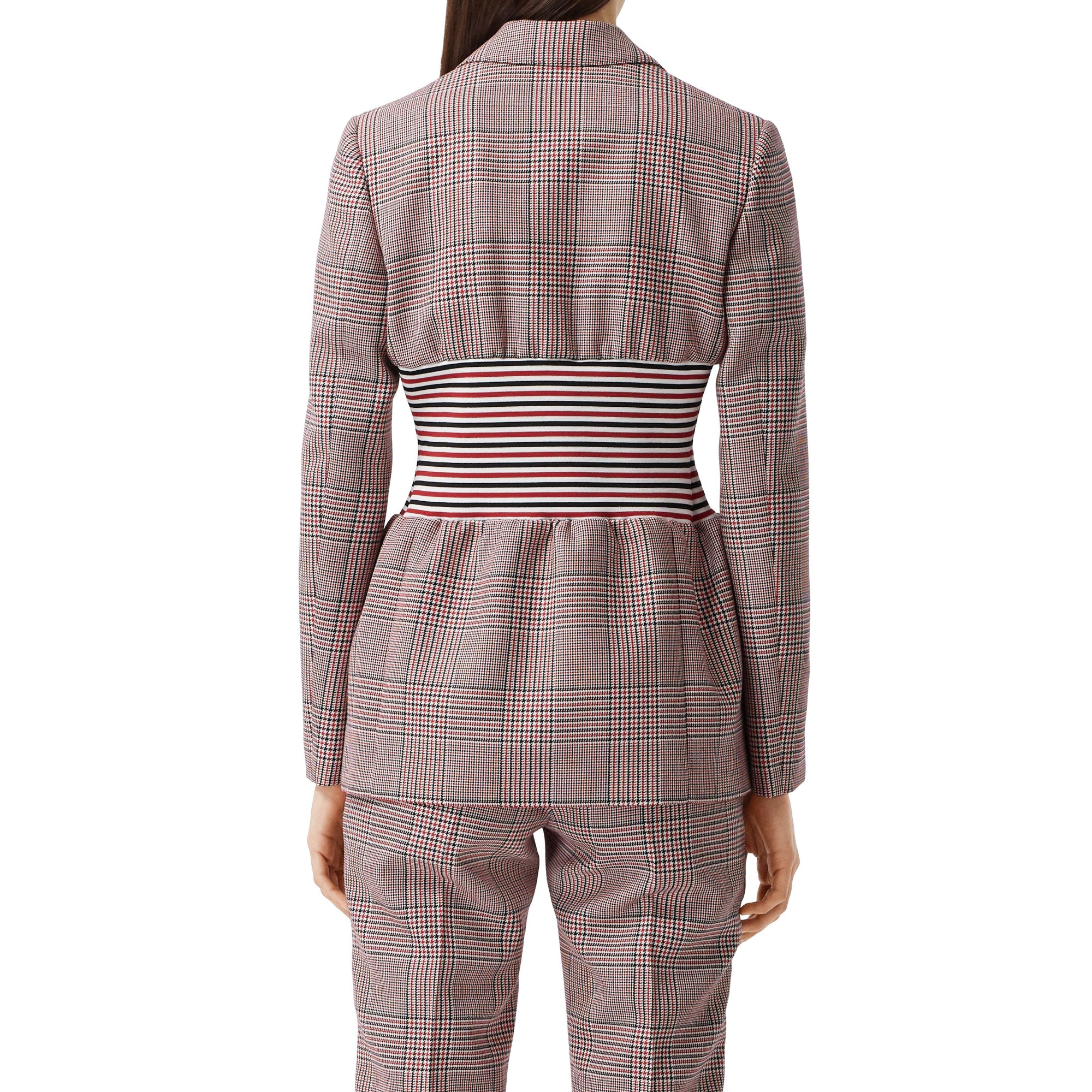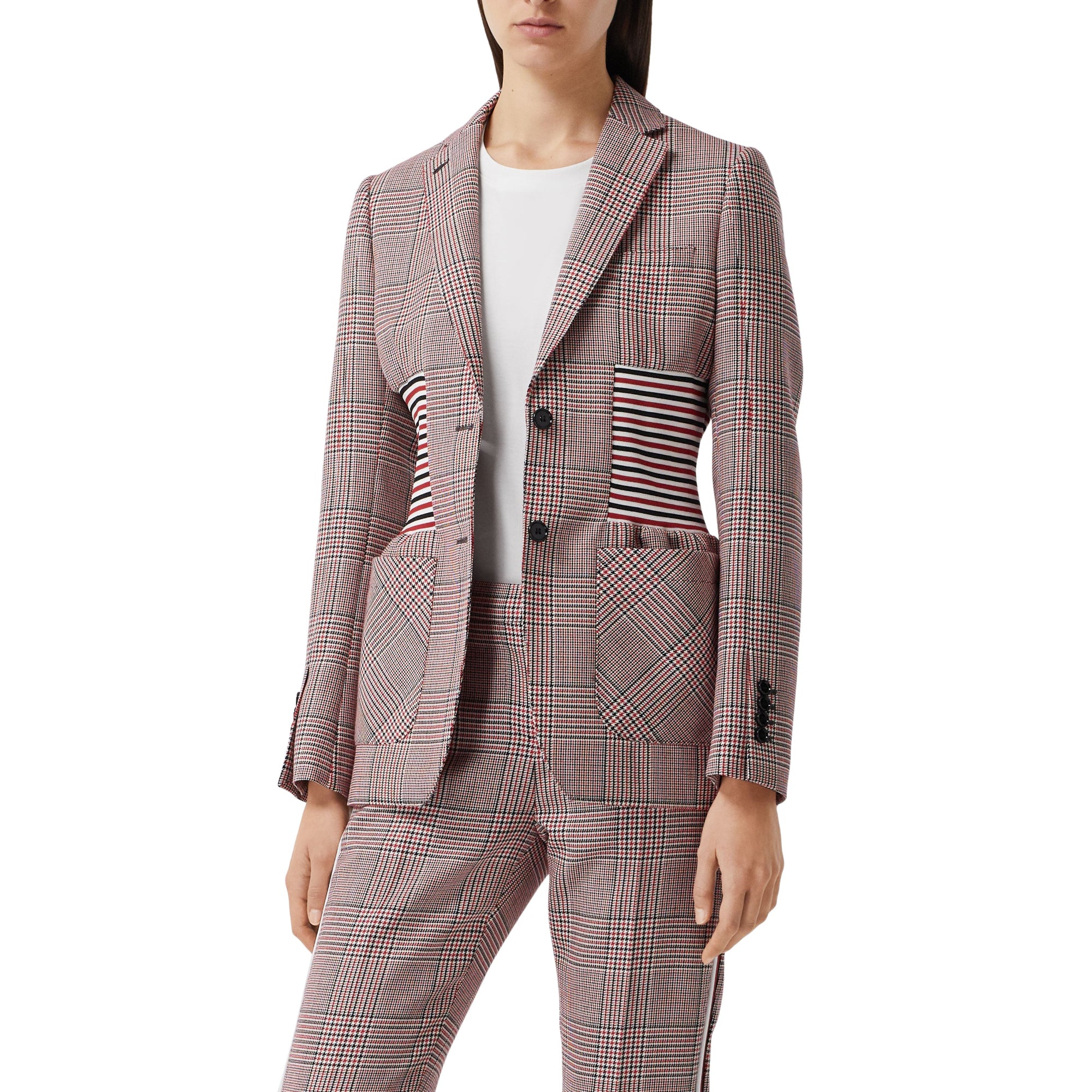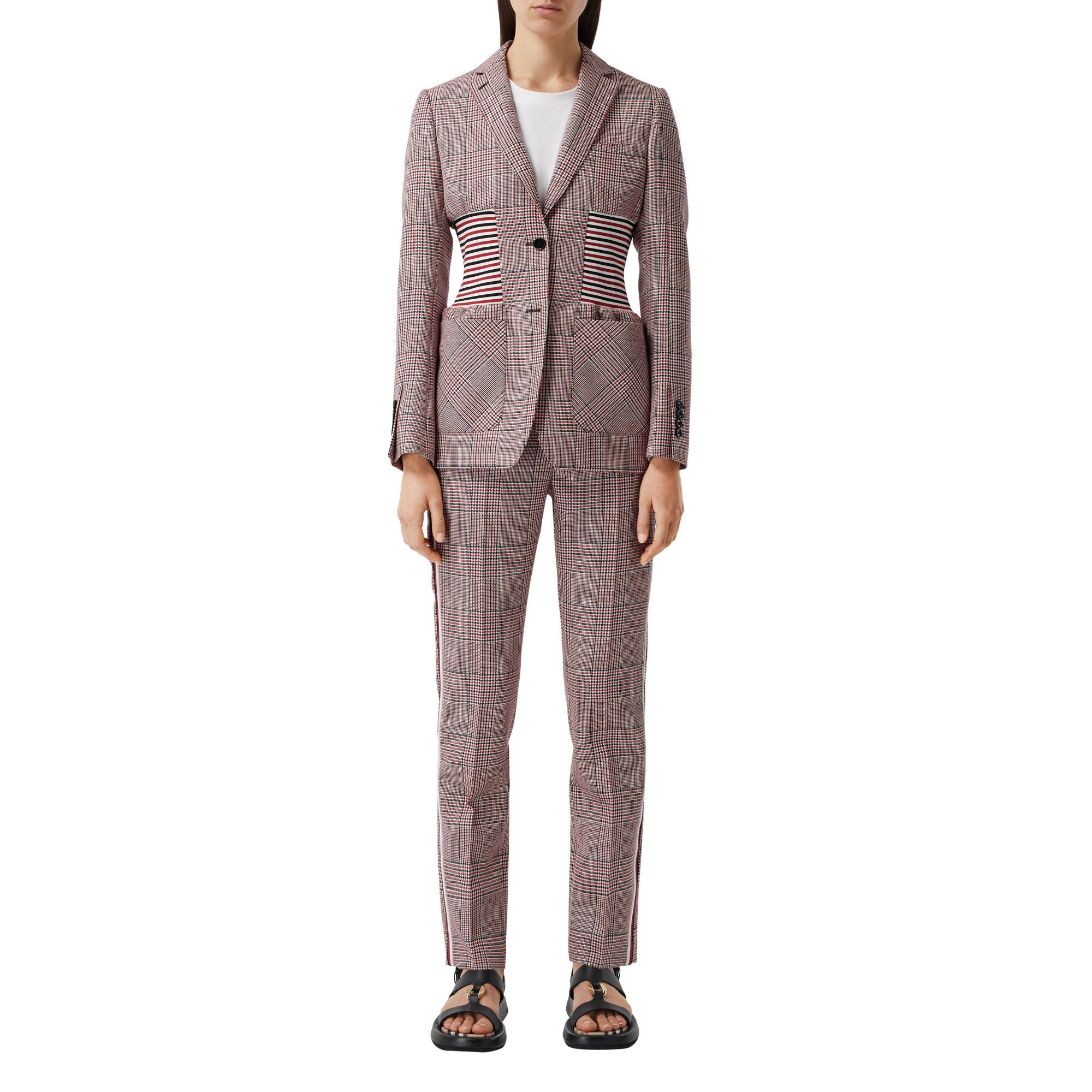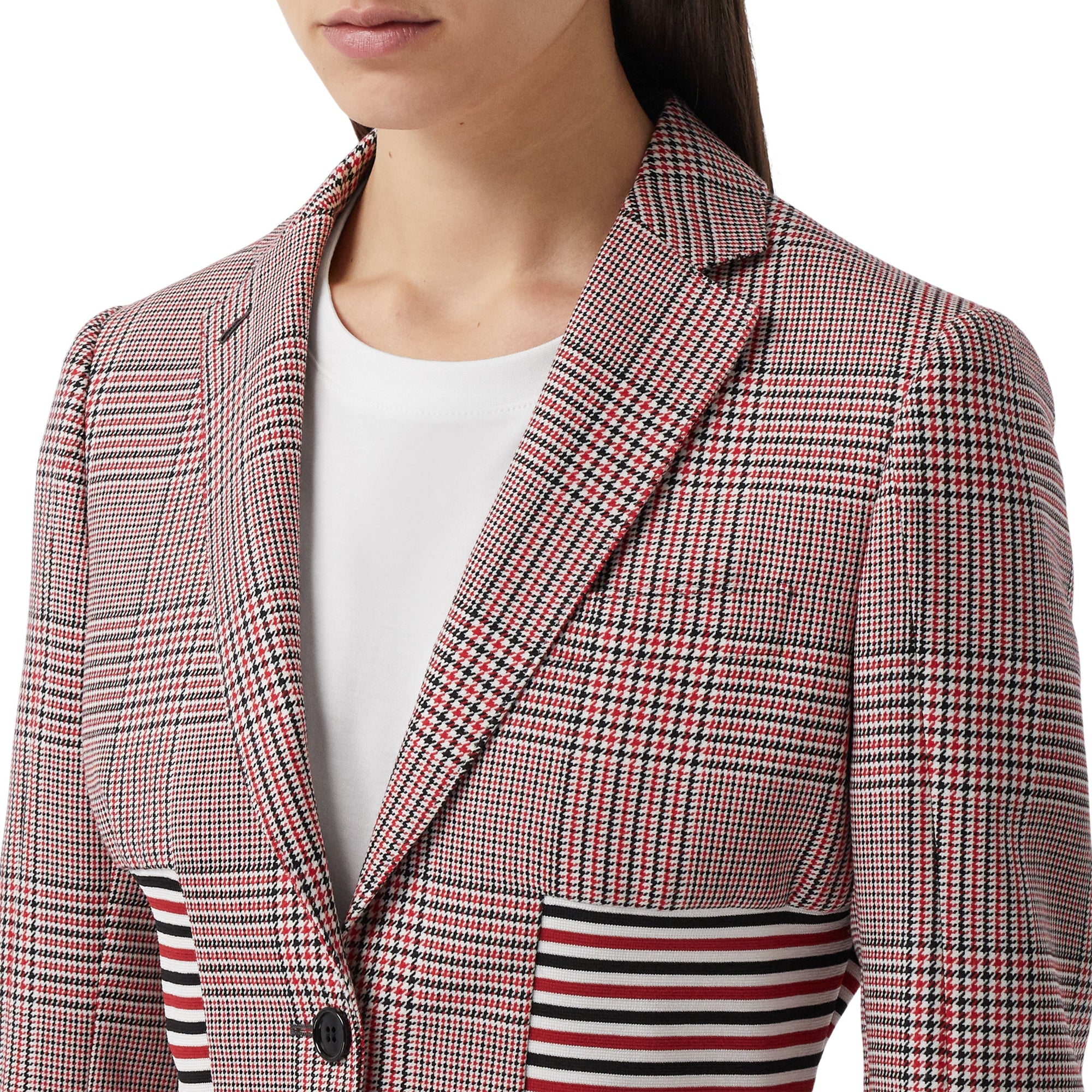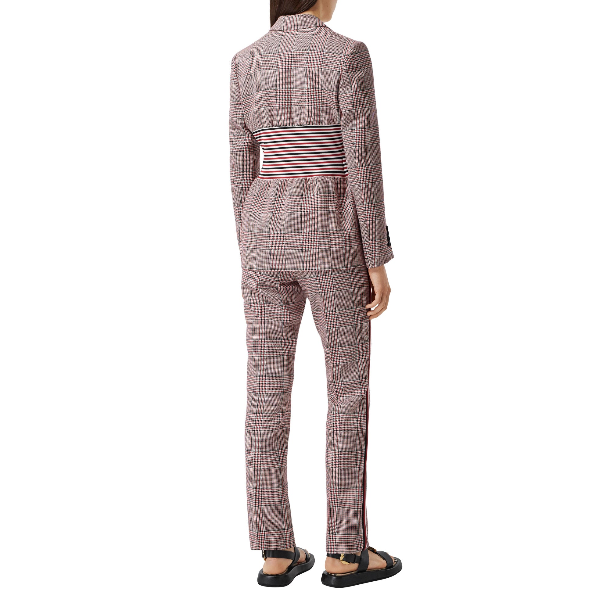 상품설명 : 이탈리아에서 직조된 하운즈투스 체크 울 소재의 테일러드 재킷. 허리 라인을 매력적으로 강조해주는 스트라이프 니트 패널이 특별함을 더합니다.