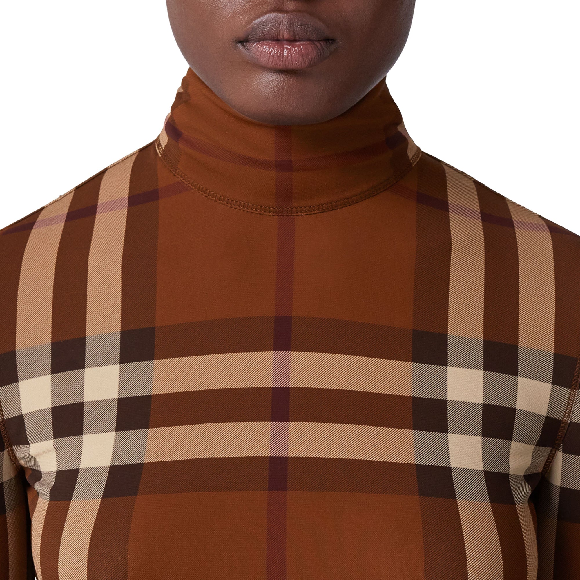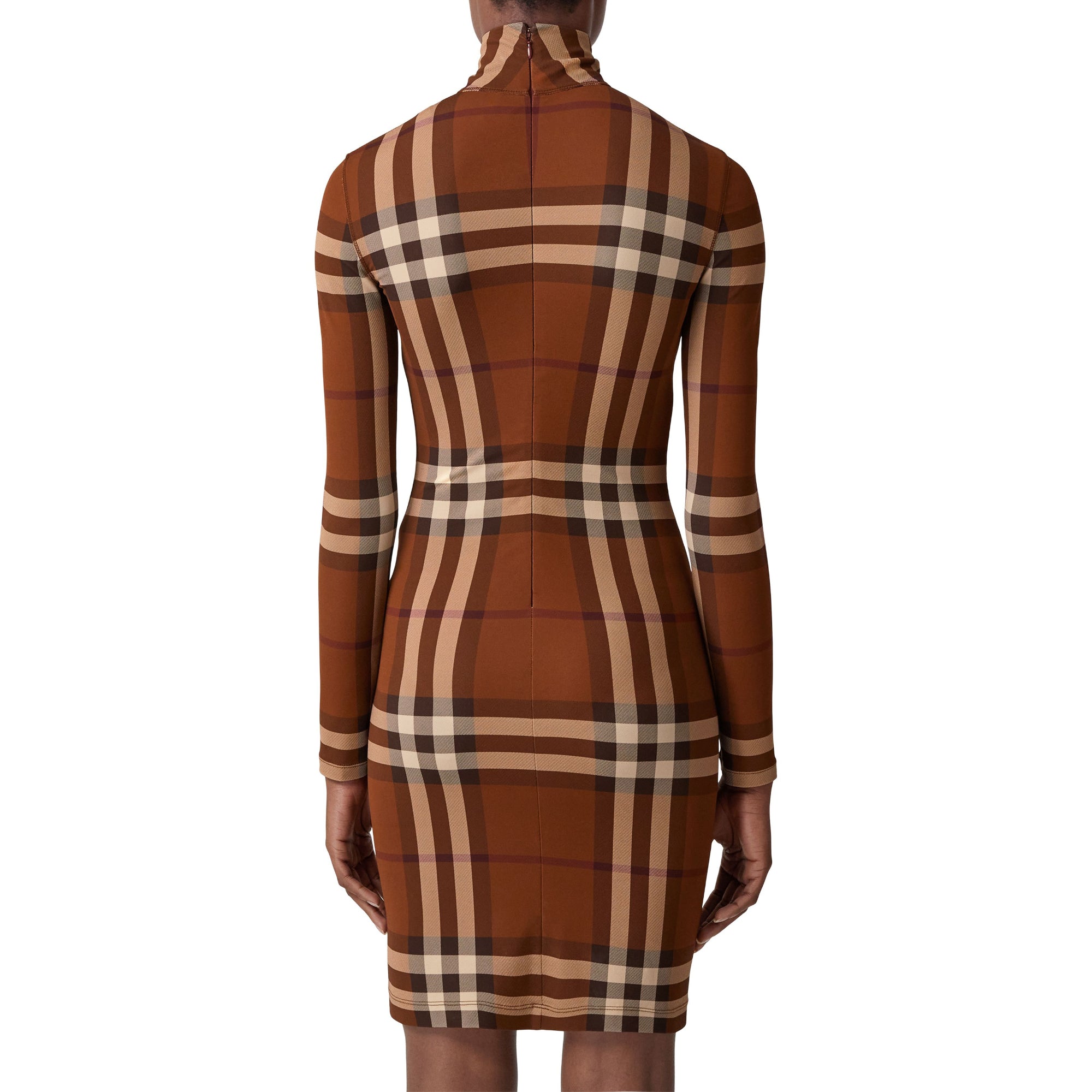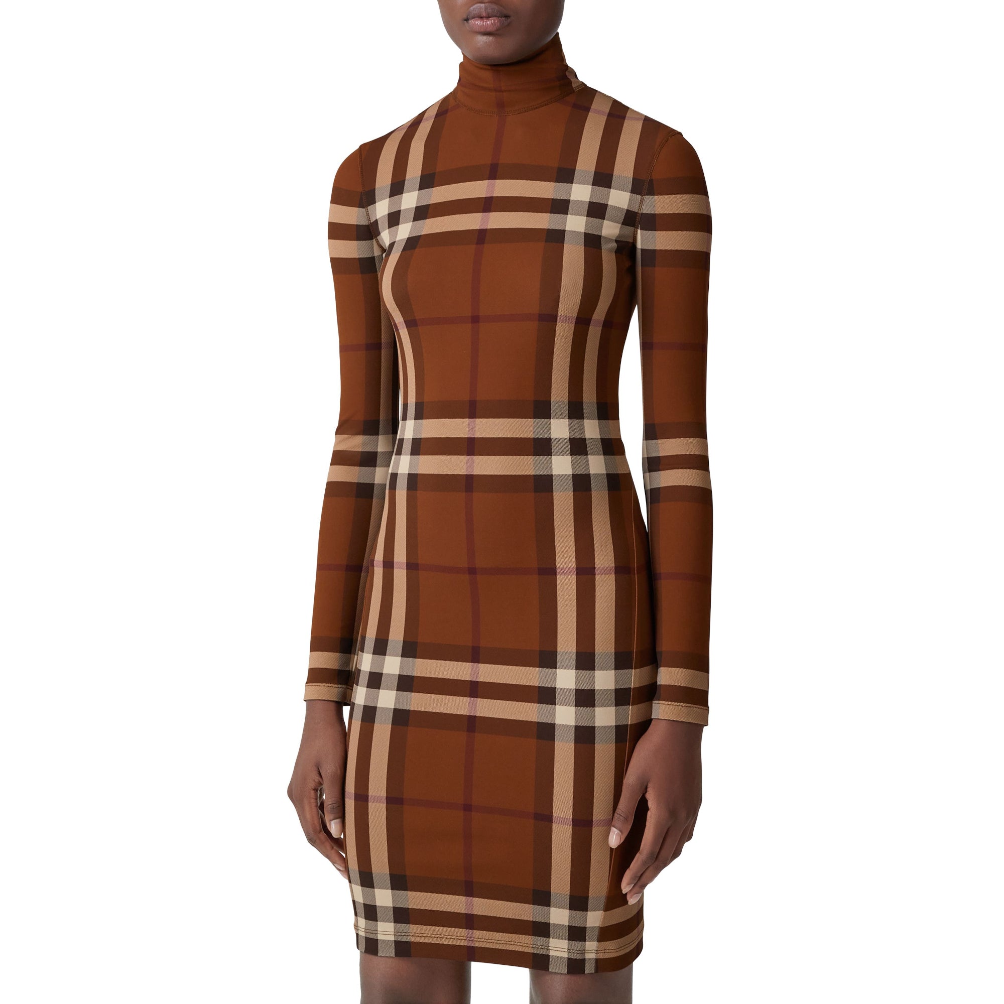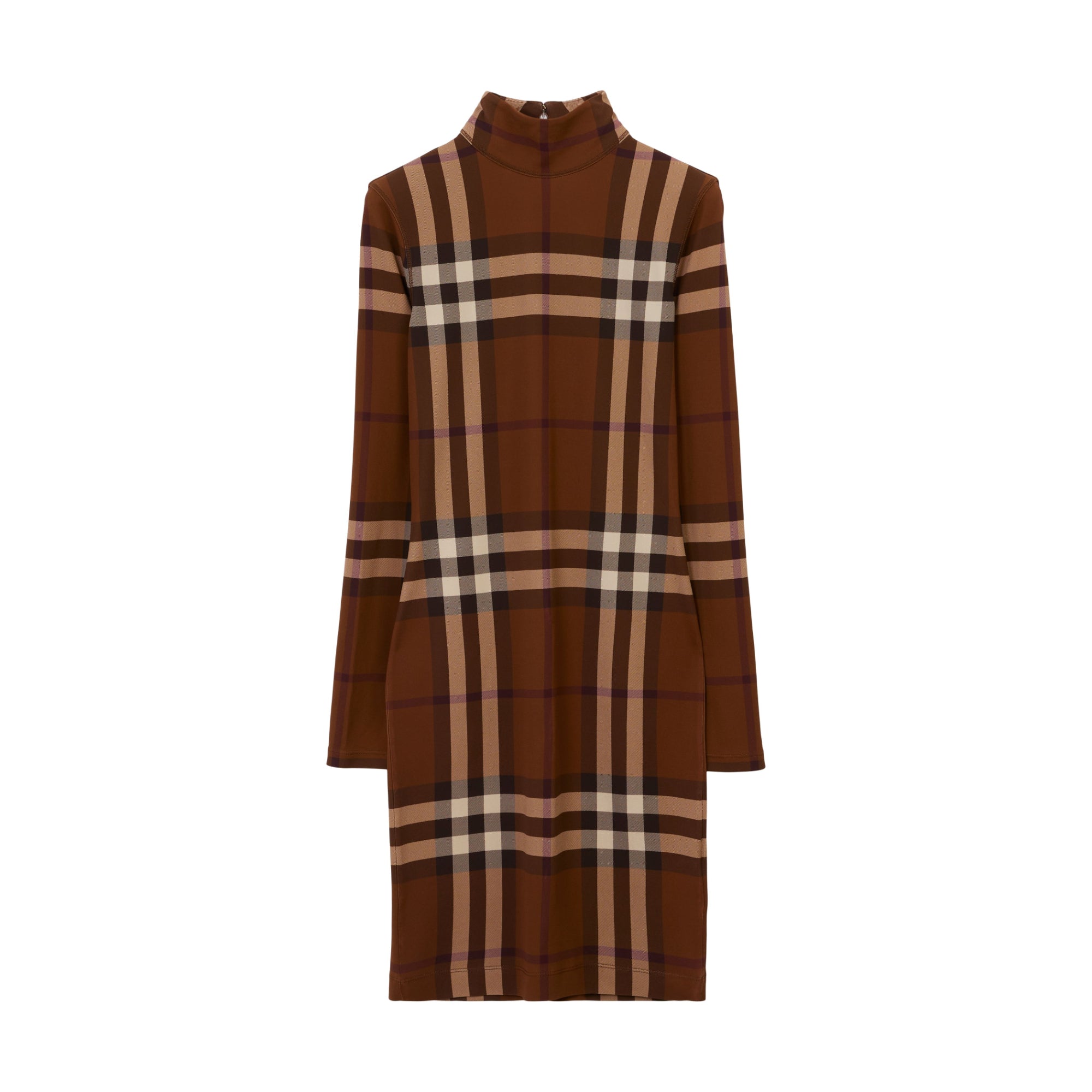 상품설명 : 신축성 있는 저지 소재로 이탈리아에서 제작된, 몸에 꼭 맞는 퍼넬넥 드레스. 버버리 시그니처 체크가 돋보이는 긴소매 디자인입니다.