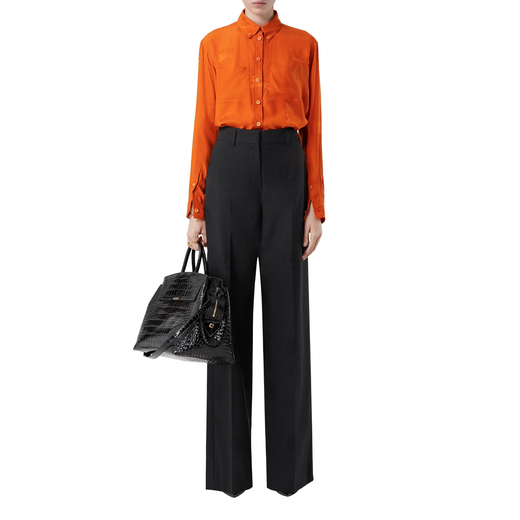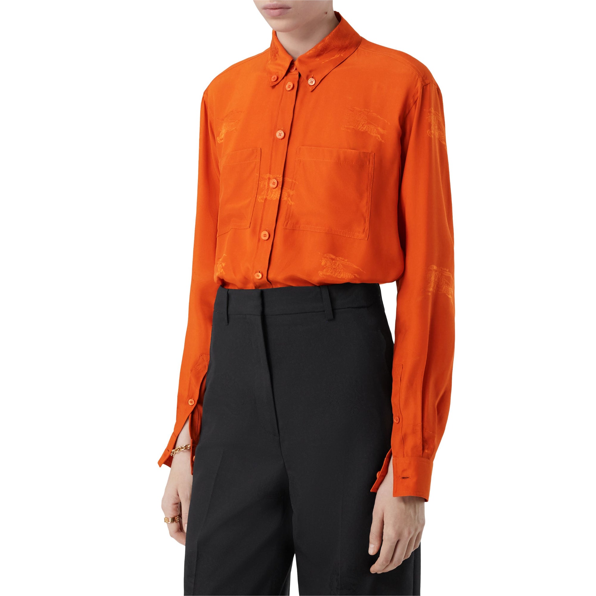 상품설명 : 오버사이즈 실루엣의 실크 셔츠. 버버리 아카이브의 엠블럼을 모던하게 해석한 자카드직 기마상 디자인이 특별함을 더합니다.