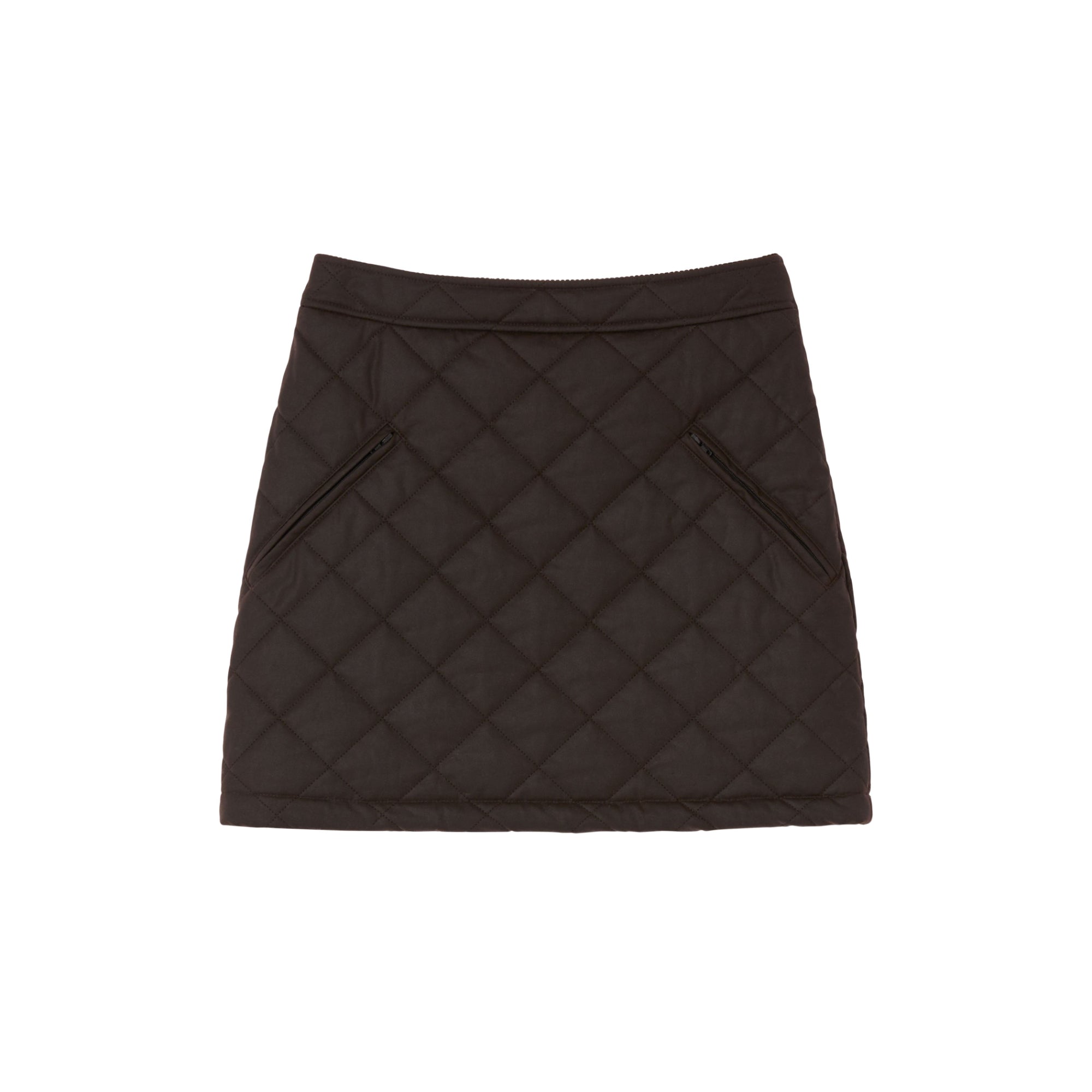 상품설명 : 영국에서 직조된 왁싱 면 소재의 다이아몬드 퀼팅 미니 스커트. 영국의 전원적 감성을 표현하는 디자인이 특징입니다.