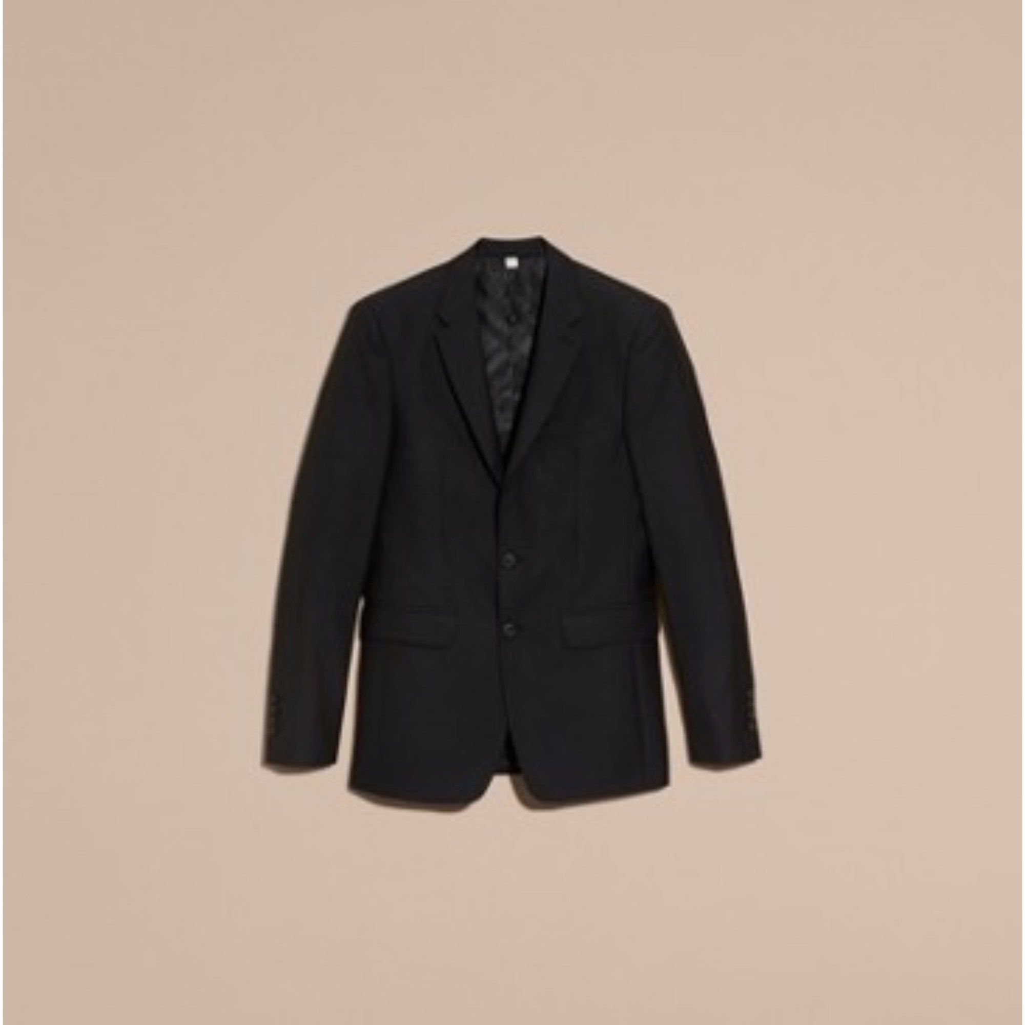 상품설명 : 버버리 공장에서 직조된 가벼운 울 소재의 슬림핏 수트. 몸에 꼭 맞는 짧은 기장의 재킷과 통이 점점 좁아지는 테이퍼드 팬츠로 구성되었습니다.#고급스러운 피크 스티치 디테일이 전통적인 테일러링을 연상시킵니다.#파트 캔버스 구조로 제작된 재킷은 가슴 부분에 한 겹의 천연 말총 심지가 사용되어 재킷의 형태를 잡아주며 가벼우면서도 간결한 실루엣을 연출합니다.#턱이 없는 디자인의 바지는 선명한 바지 주름과 겉으로 드러나지 않는 후크, 바, 지퍼 여밈 그리고 마감처리 되지 않은 밑단 등이 특징입니다.#이 디자인은 두 가지 소매 길이가 있으며, SF 사이즈는 일반 소매보다 3cm 더 짧게 제작됩니다.