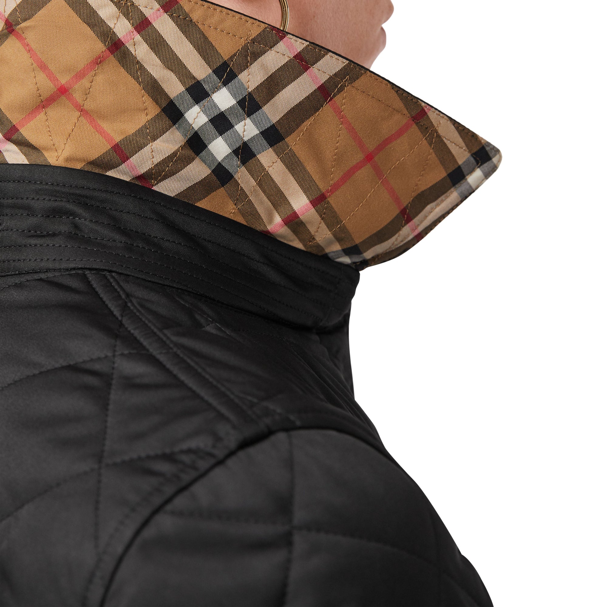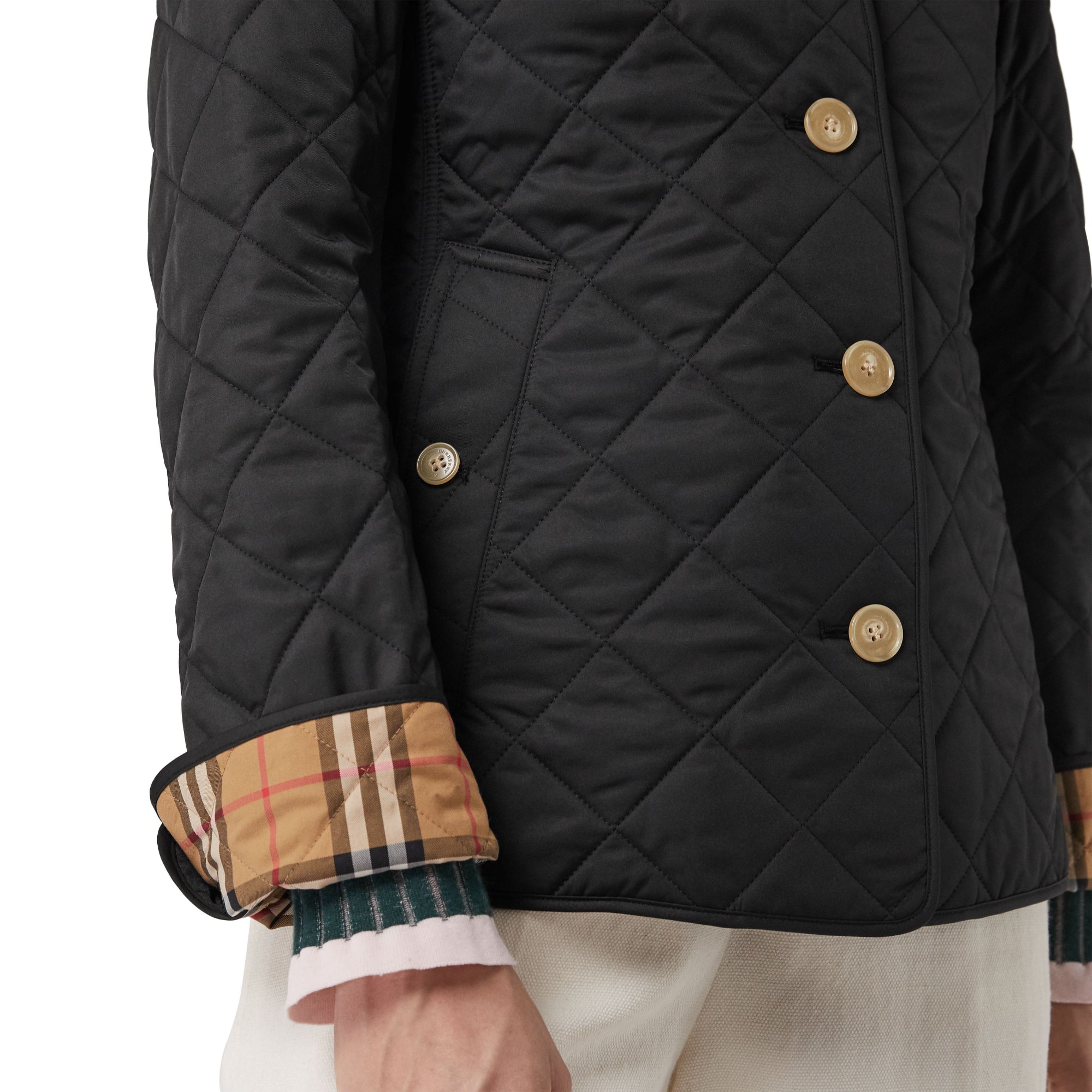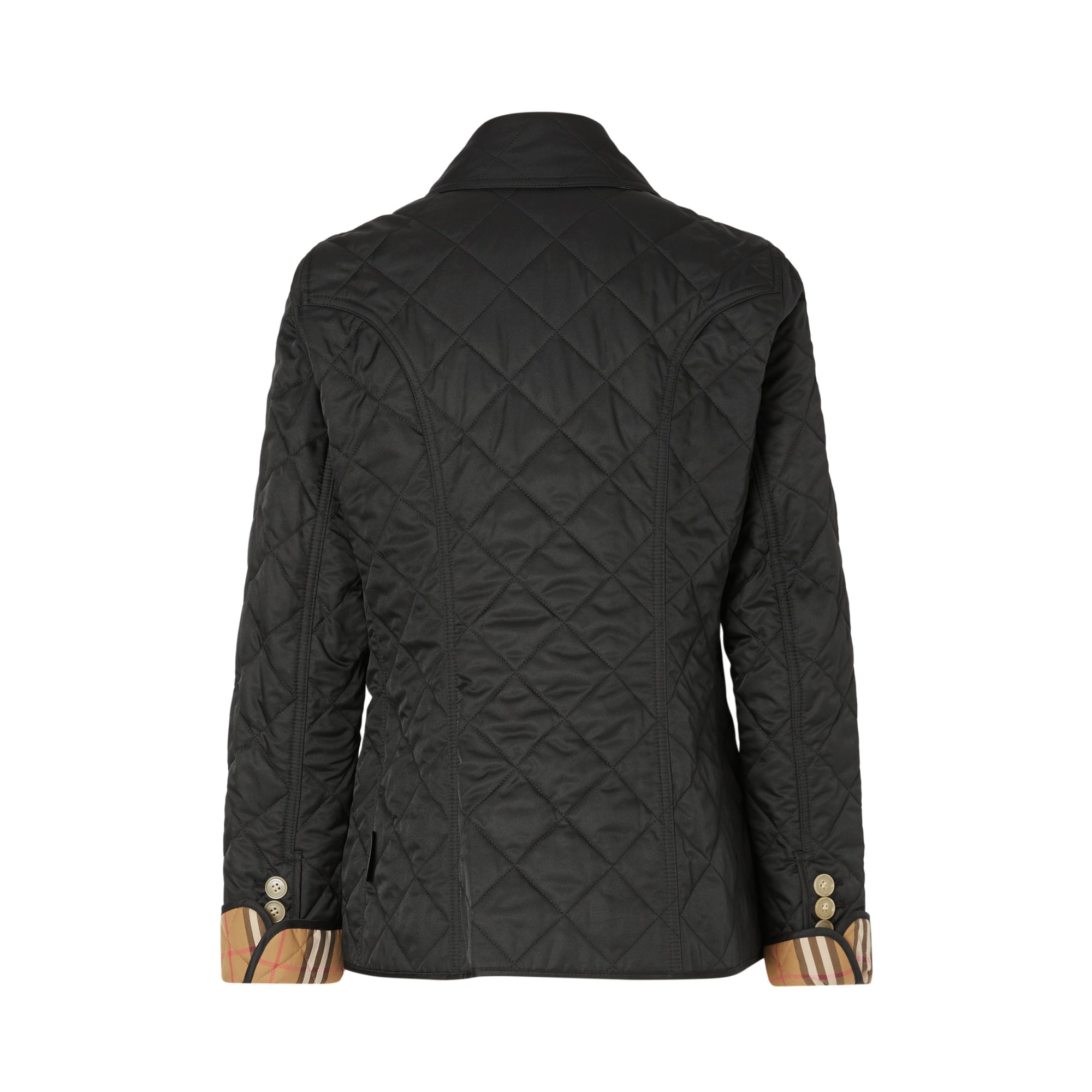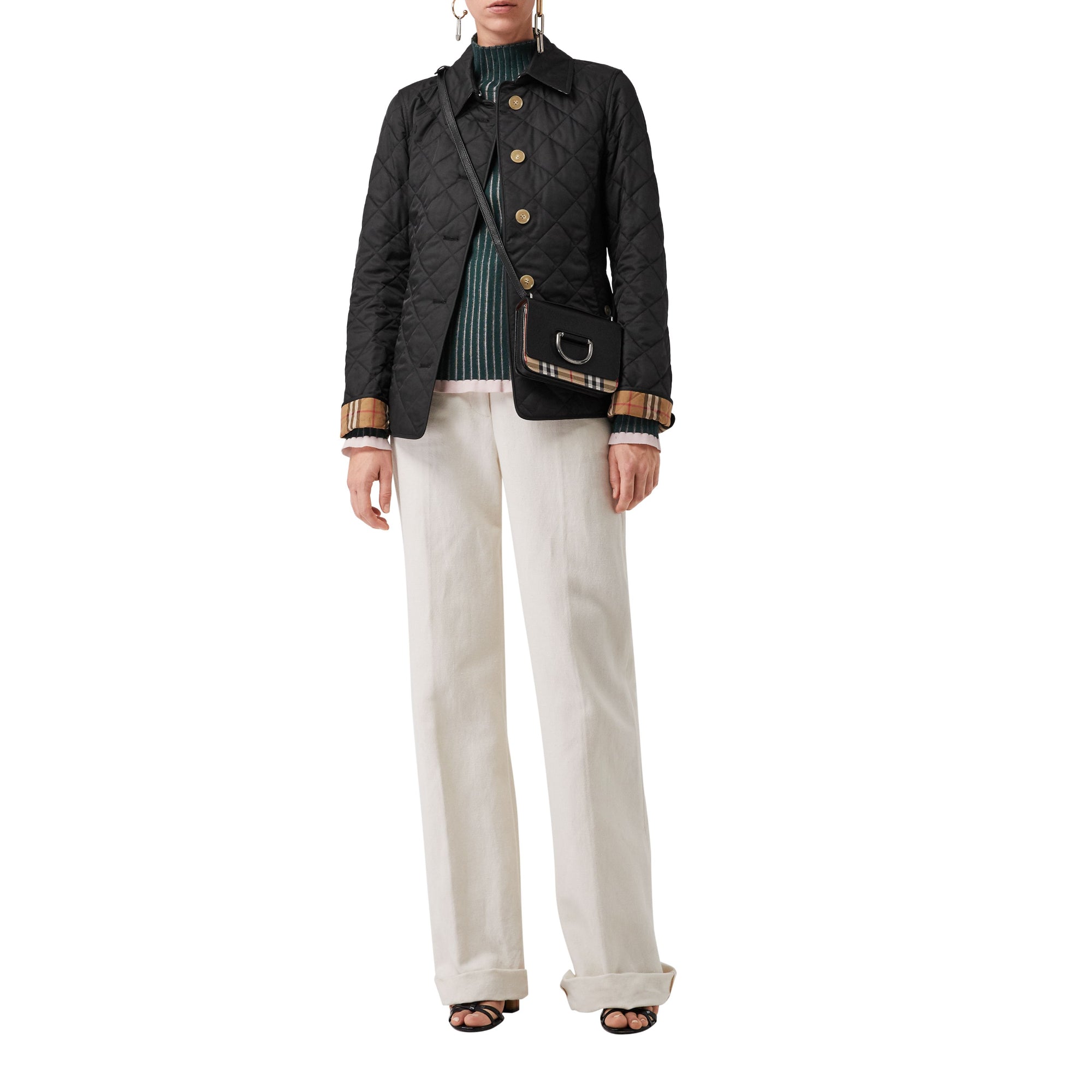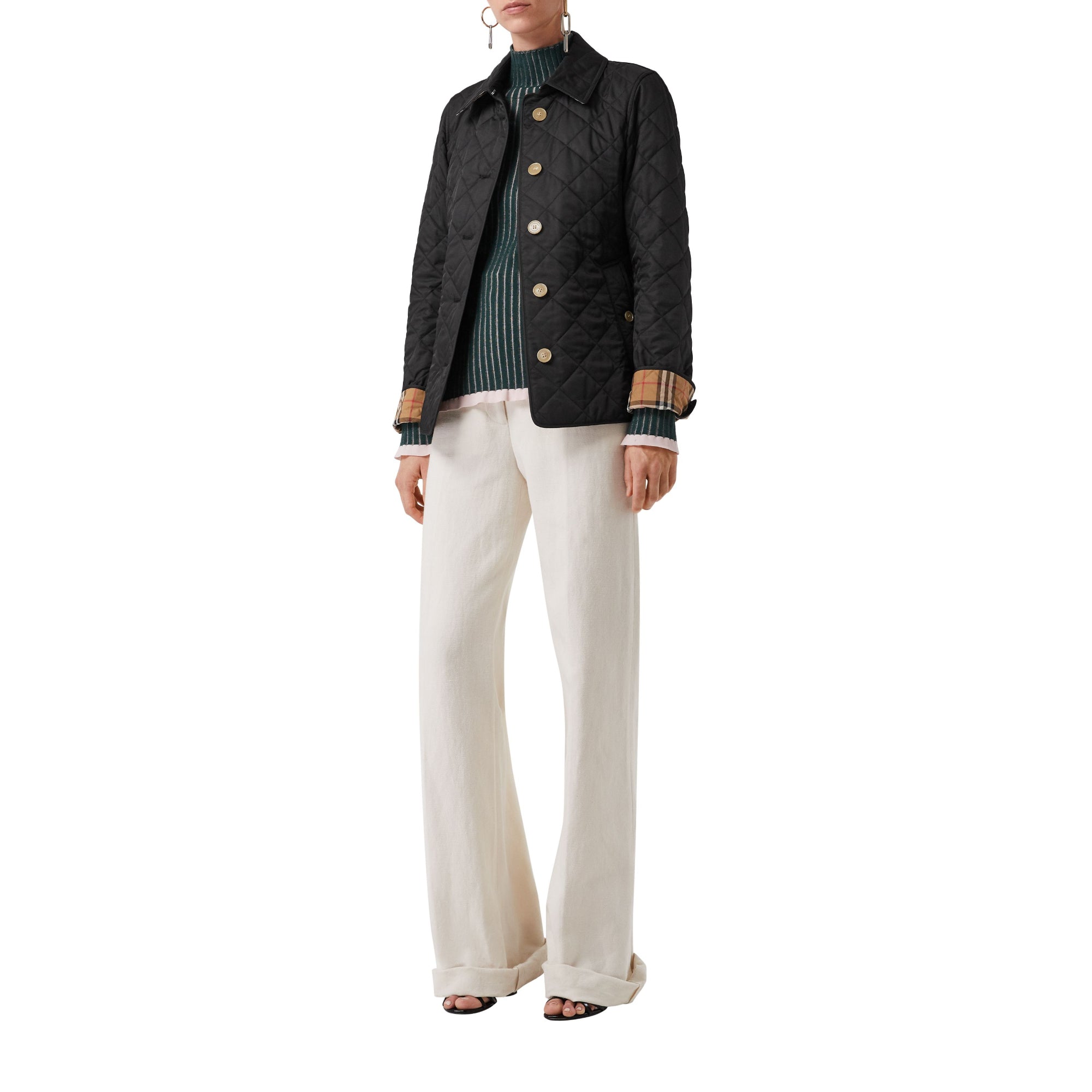 상품설명 : 대비를 이루는 색상의 단추가 특징인 단정한 테일러드 실루엣의 다이아몬드 퀼팅 재킷. 소매를 접어 올려 아이코닉 체크 패턴을 돋보이게 연출할 수 있습니다.