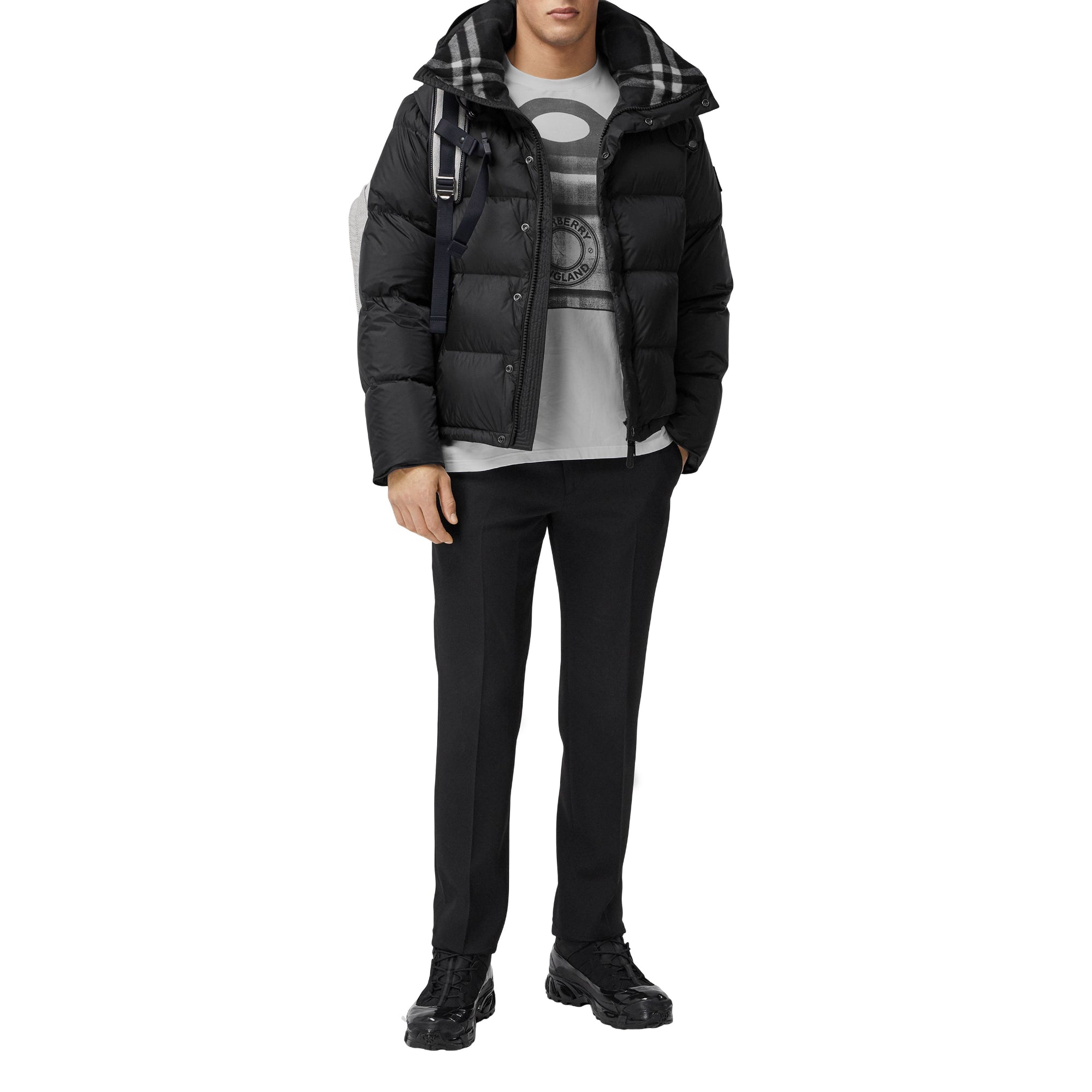 상품설명 : 거위 솜털과 깃털로 충전된 나일론 후드 재킷. 퍼넬넥과 후드의 빈티지 체크 안감이 돋보이며 지퍼를 사용해 소매를 탈착하면 베스트로 스타일링 할 수 있습니다.