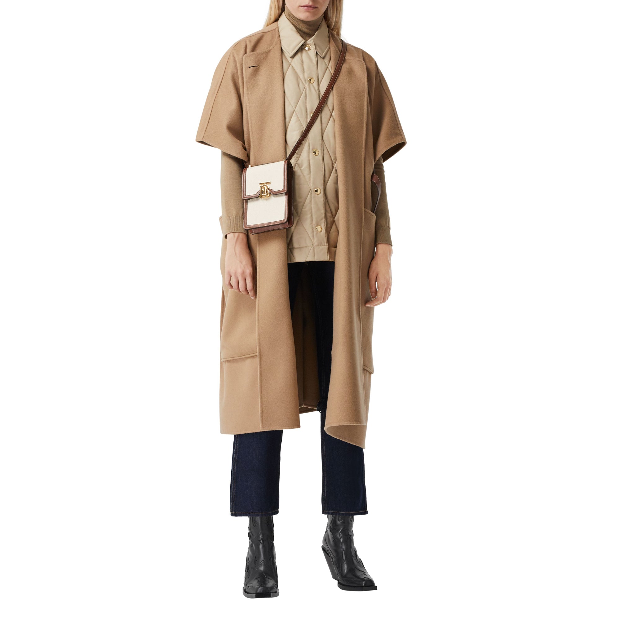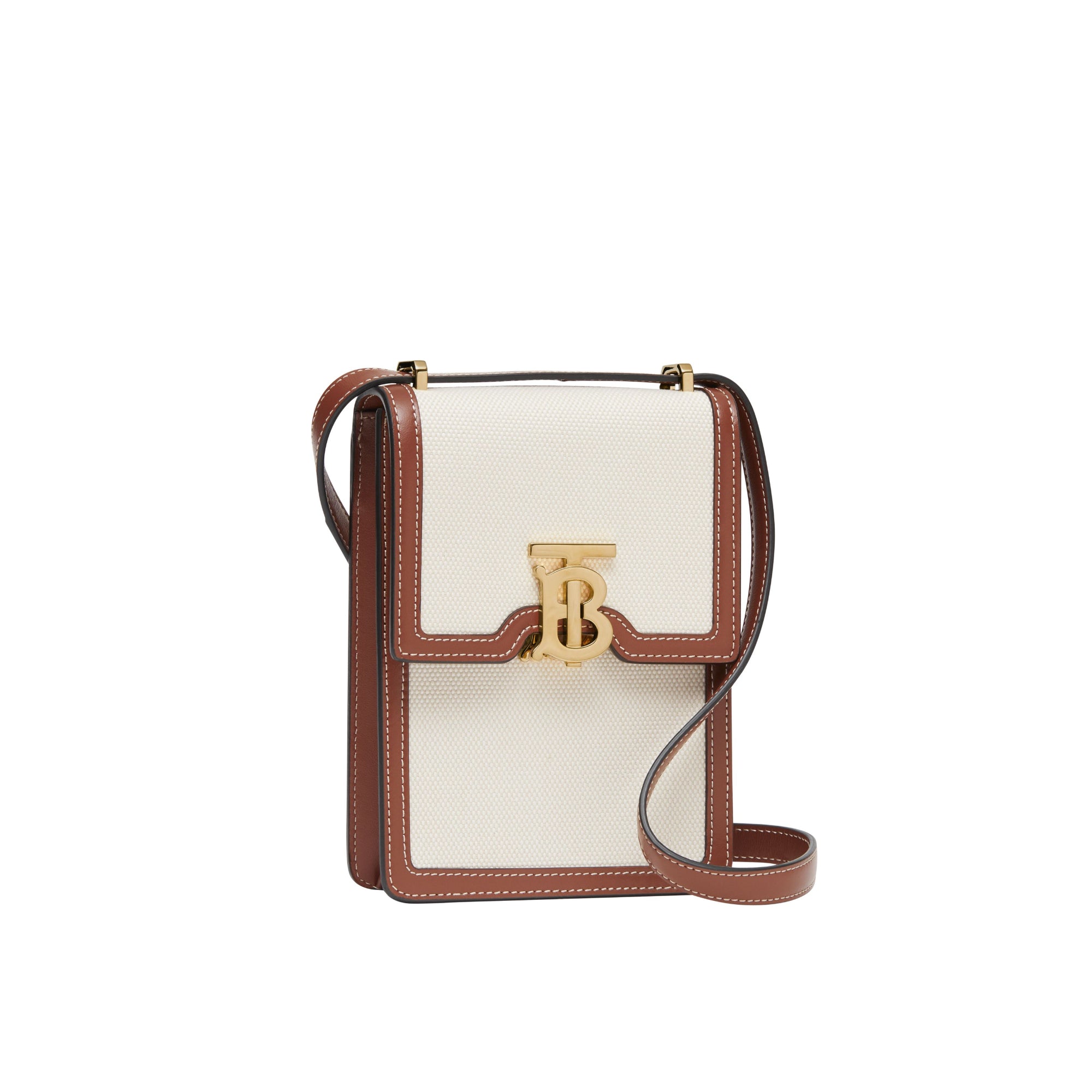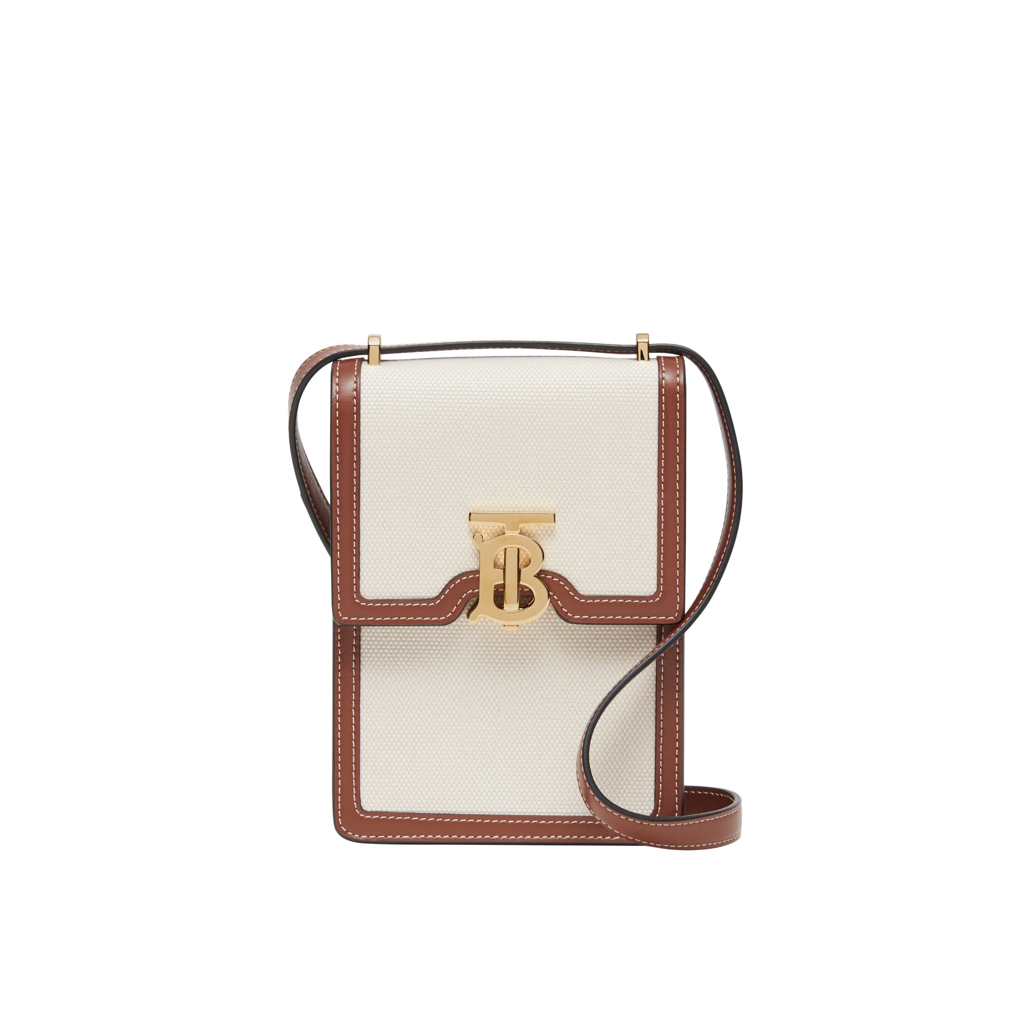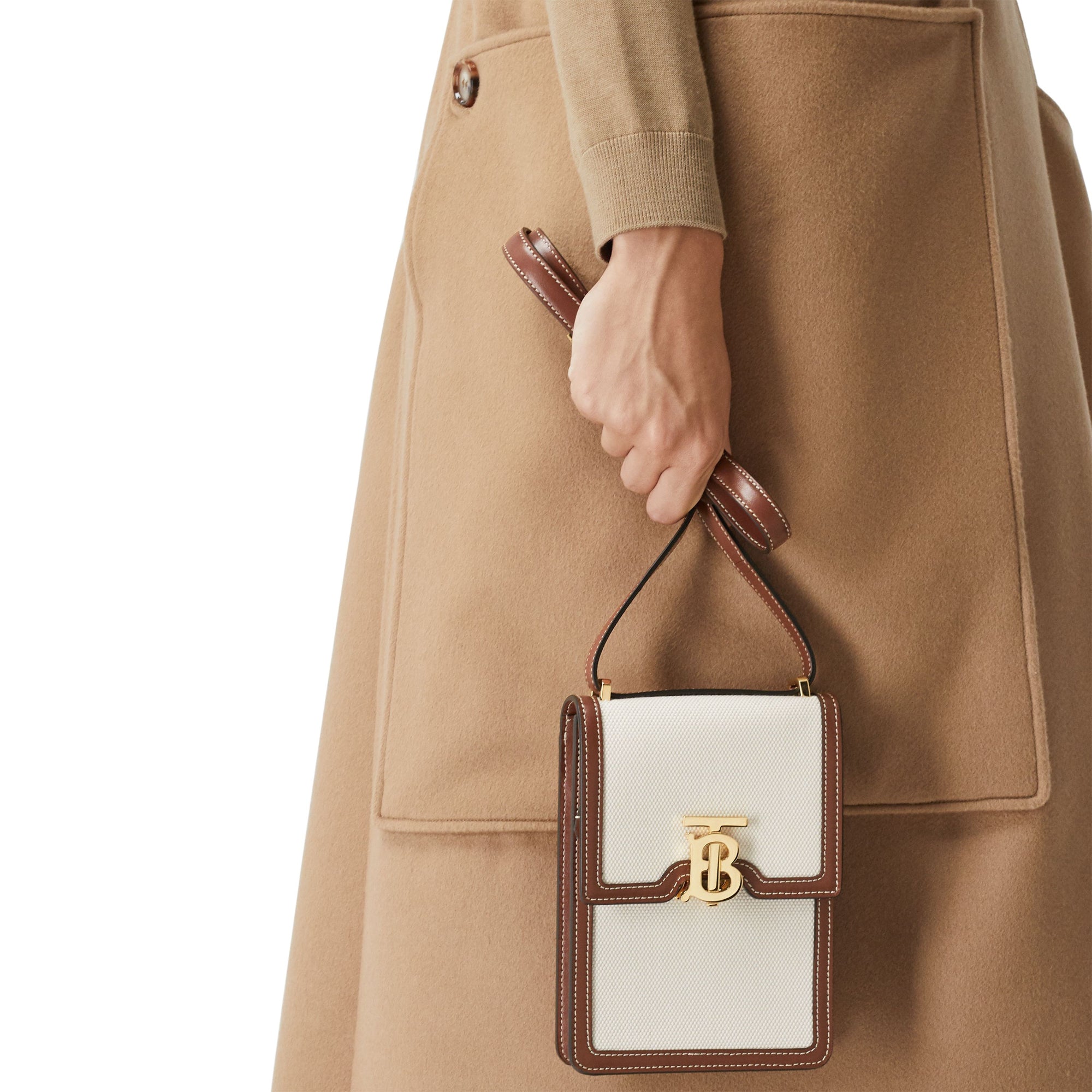 상품설명 : 면 캔버스와 스티치 디테일의 가죽 소재로 제작된 구조적인 디자인의 스몰 백으로 토마스 버버리 모노그램 클래스프가 돋보입니다. 어깨에 메거나 크로스바디 또는 손에 들어 다양하게 연출할 수 있으며 모든 사이즈의 휴대폰을 수납할 수 있도록 제작되었습니다.