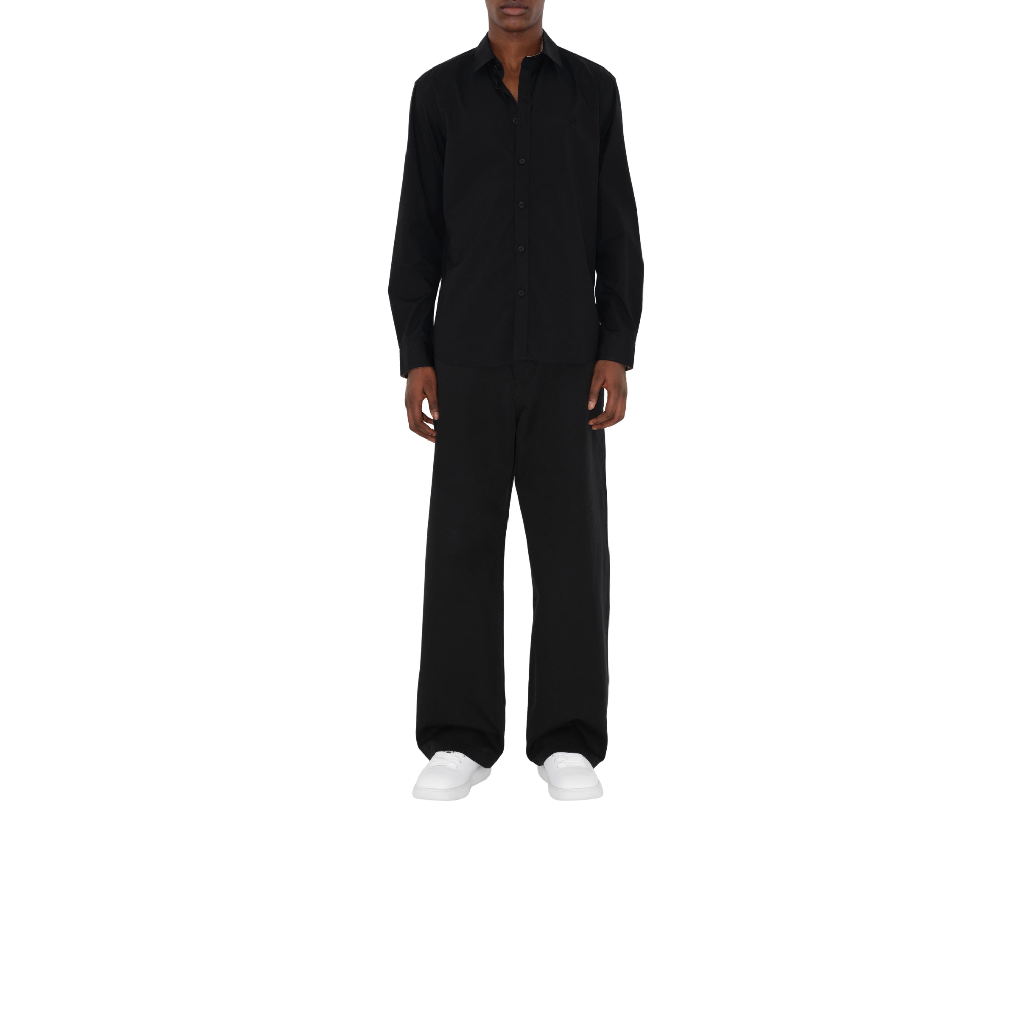 상품설명 : 신축성 있는 면 소재의 슬림핏 셔츠. 칼라와 소매단의 버버리 체크 안감이 돋보이며 토마스 버버리 모노그램 자수가 특징.##단추 여밈#포인트 칼라#싱글 버튼 커프스#곡선형 밑단