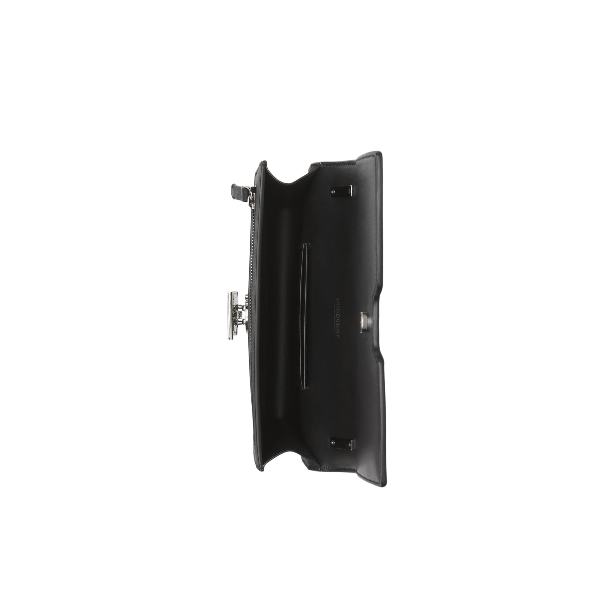 혼용률 : 20 x 5 x 12cm#최단 스트랩 길이: 38cm#최장 스트랩 길이: 53cm#겉감 및 안감: 송아지 가죽 100%#안감: 면 71%, 폴리아미드 29%#탈착 가능한 조절식 가죽 크로스바디 스트랩#내부 카드 수납칸 2개#외부의 지퍼 포켓 1개, 외부의 슬립 포켓 1개#클래스프 여밈의 접이식 상단#수작업으로 마감칠된 테두리#광택 있는 금속 하드웨어#이탈리아 제조
