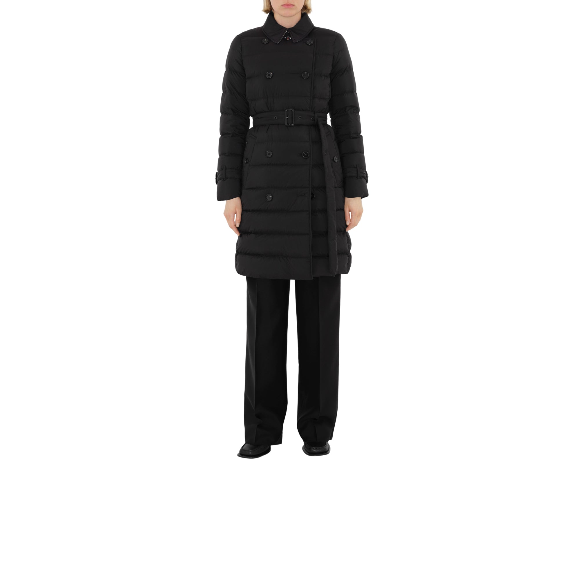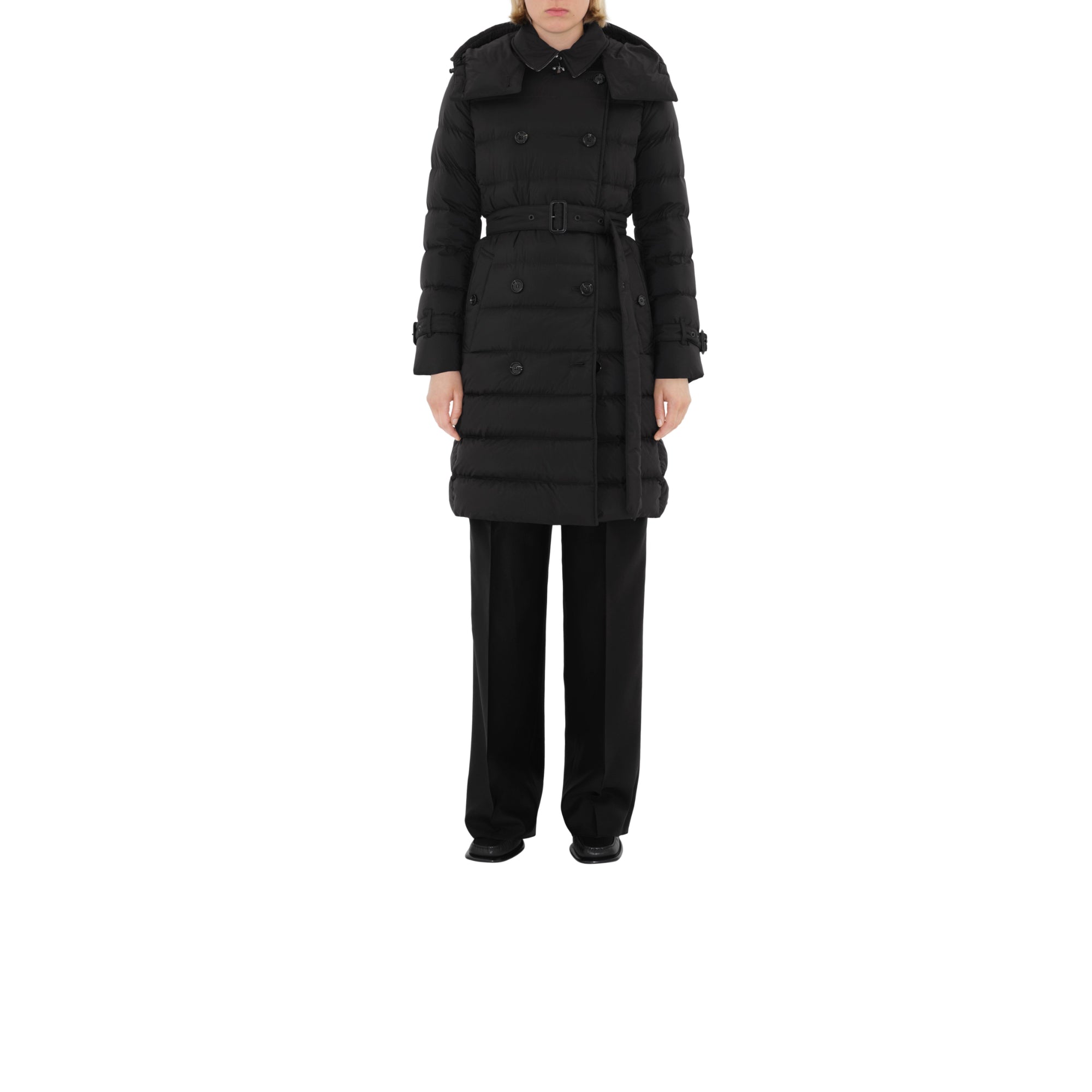 상품설명 : 거위 솜털과 깃털로 충전된 나일론 소재의 후드 퍼퍼 코트. 버버리 시그니처 트렌치코트에서 영감을 받은 디자인. 더블브레스트 슬림핏 실루엣 및 버버리 체크 부분 안감이 특징.##더블브레스트 단추 여밈#칼라의 후크 여밈#탈착식 드로스트링 후드#벨트#측면의 단추 디테일 웰트 포켓#커프스의 벨트 디테일#밑깃과 안감의 버버리 체크