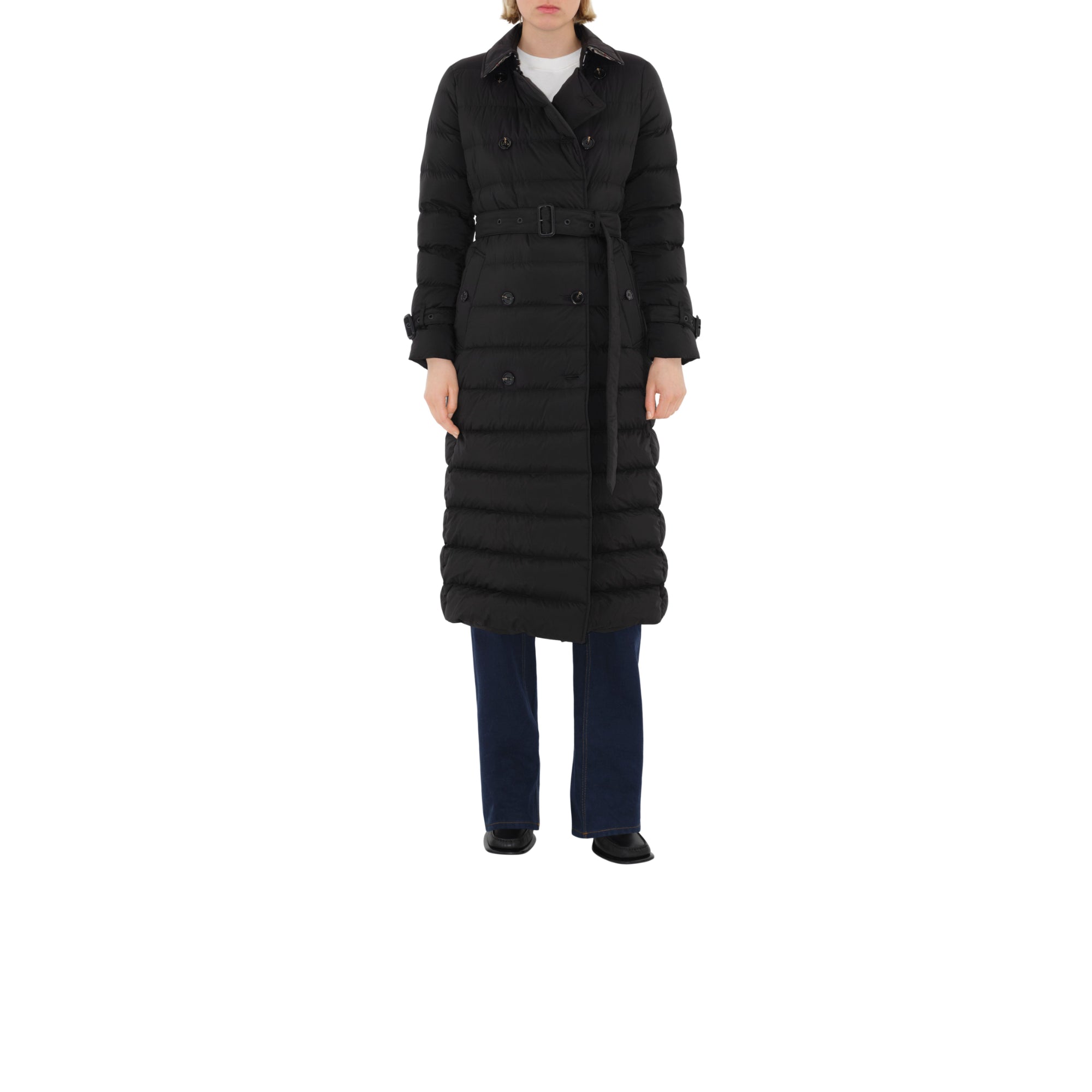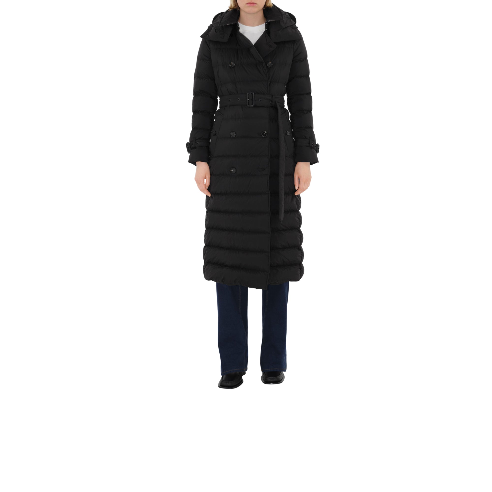 상품설명 : 거위 솜털과 깃털로 충전된 나일론 소재의 후드 퍼퍼 코트. 버버리 시그니처 트렌치코트에서 영감을 받은 디자인. 더블브레스트 슬림핏 실루엣 및 버버리 체크 부분 안감이 특징.##더블브레스트 단추 여밈#칼라의 후크 여밈#탈착식 드로스트링 후드#벨트#측면의 단추 디테일 웰트 포켓#커프스의 벨트 디테일#밑깃과 안감의 버버리 체크