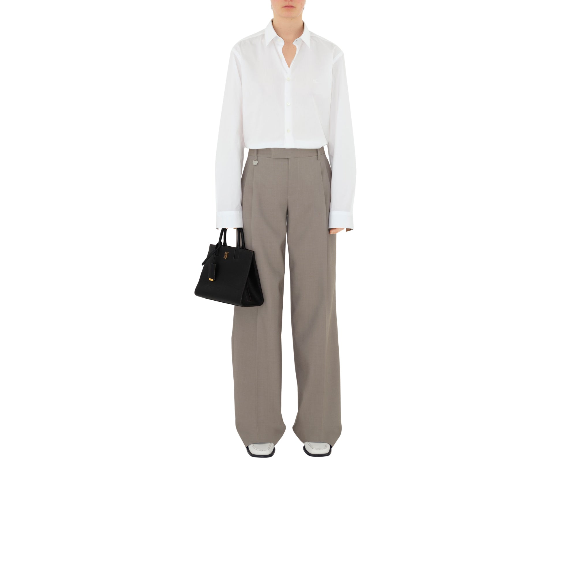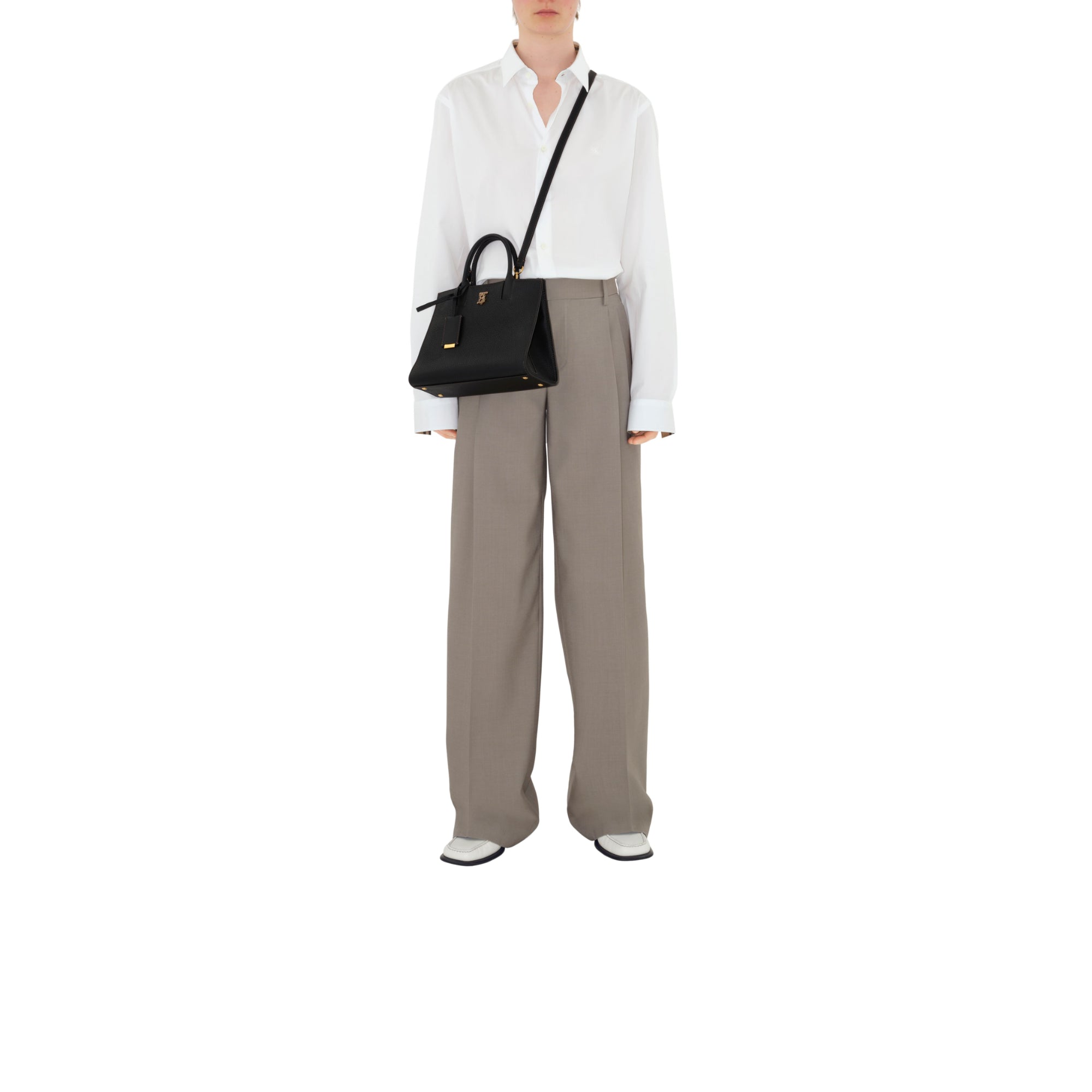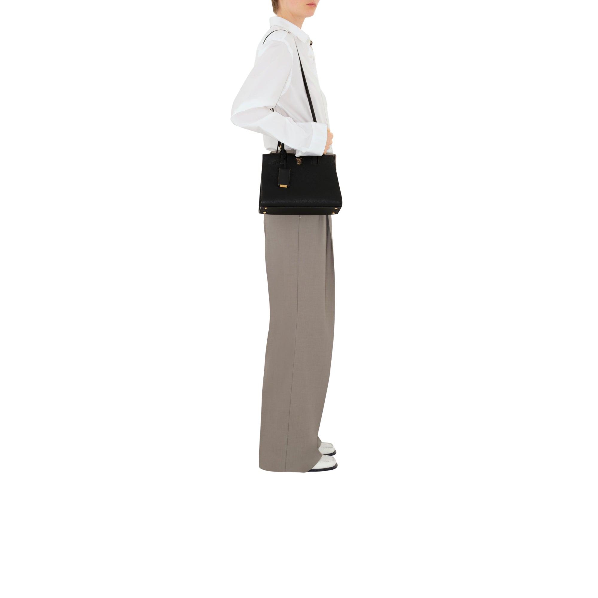 상품설명 : 그레이니 송아지 가죽 소재로 이탈리아에서 제작된 구조적이고 컴팩트한 토트. 토마스 버버리 모노그램이 돋보이며, 스무드 나파 가죽 소재의 안감 및 가죽으로 감싼 미러 참이 특징. 손에 들거나 탈착식 숄더 스트랩을 사용해 착용 가능.##둥글게 말린 가죽 상단 손잡이#조절 가능한 탈착식 숄더 스트랩#자석 여밈의 오픈 탑#외부의 슬립 포켓 1개, 내부의 지퍼 포켓 1개, 내부의 슬립 포켓 2개#수작업으로 마감칠된 테두리#광택 있는 금속 하드웨어#나파 가죽 안감