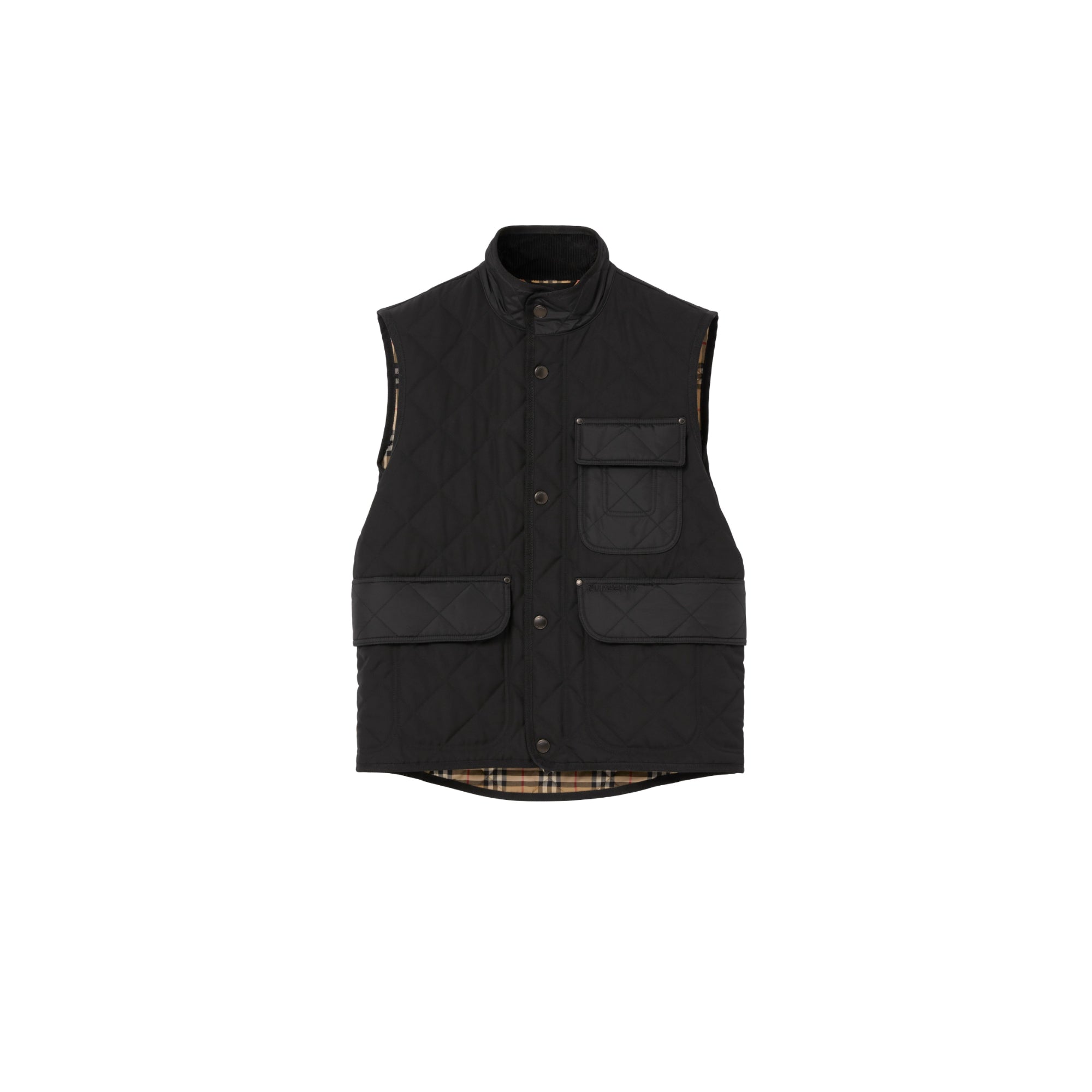 상품설명 : 보온 기능과 통기성을 제공하는 37.5® 체온조절 기술이 적용된 레귤러핏 퀼팅 질레. 퍼넬넥 스타일 및 버버리 체크 면 혼방 소재의 안감이 특징.##스냅 단추 및 지퍼 여밈#앞면의 스냅 단추 디테일 플랩 포켓#버버리 체크 안감