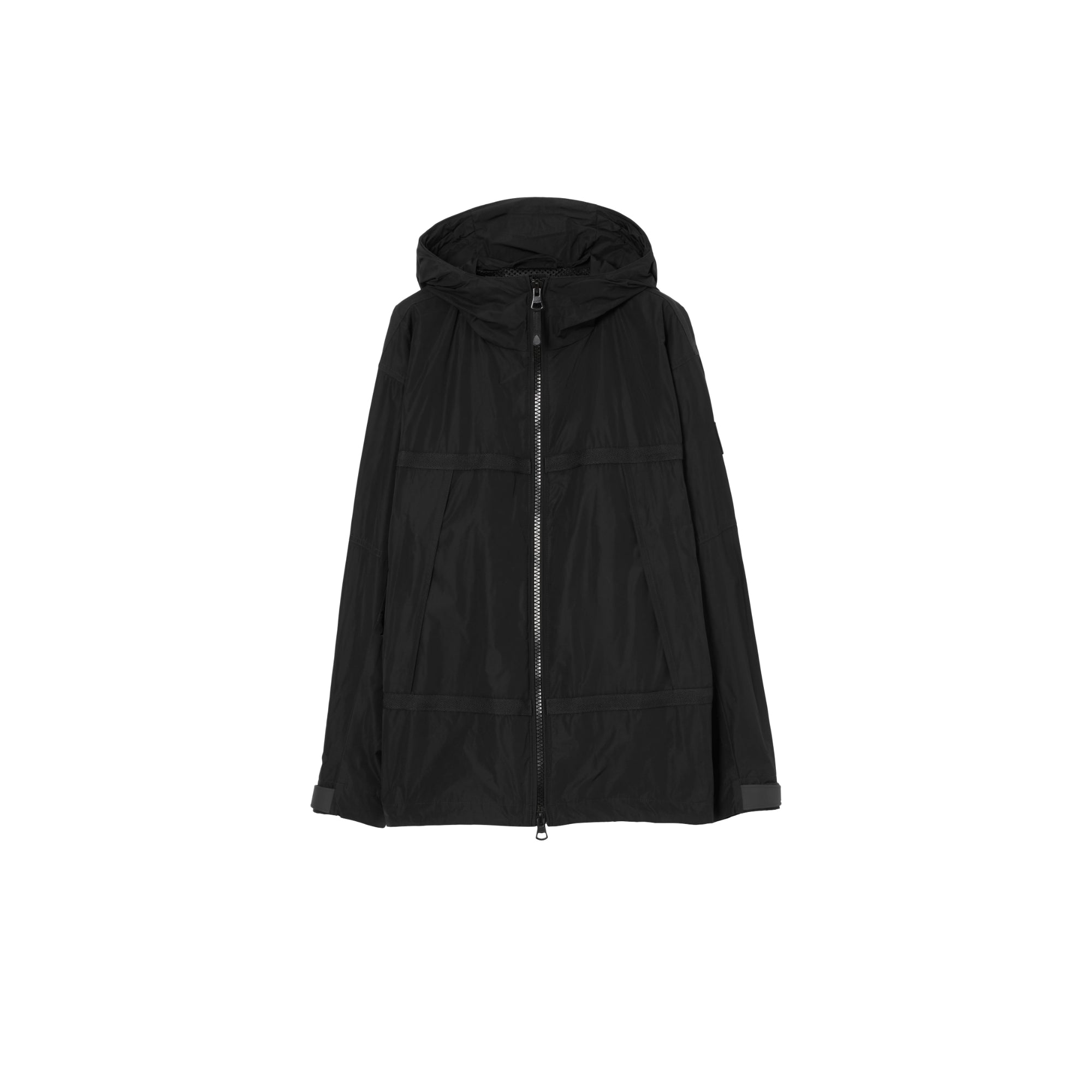 상품설명 : 릴랙스핏 경량 재킷. 헤링본 테이핑 디테일과 소매의 로고 아플리케가 특징.##양방향 지퍼 여밈#후드 및 밑단의 드로스트링#측면의 지퍼 포켓#벨크로 탭 커프스#소매의 양각 버버리 레터링 실리콘 패치
