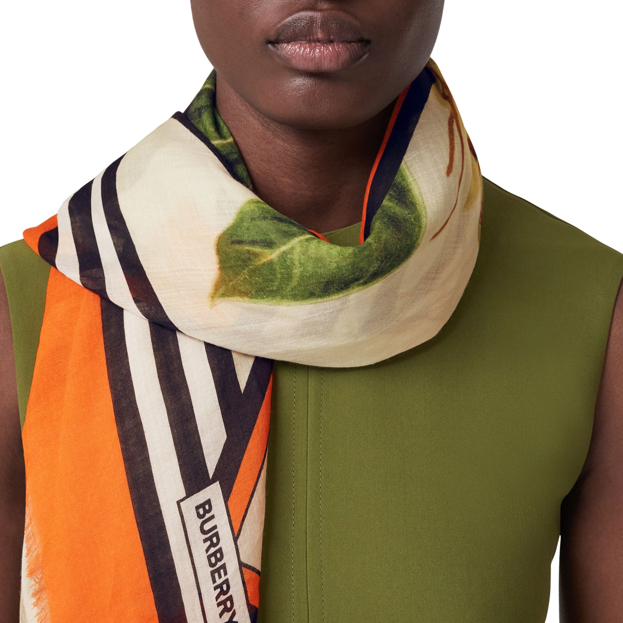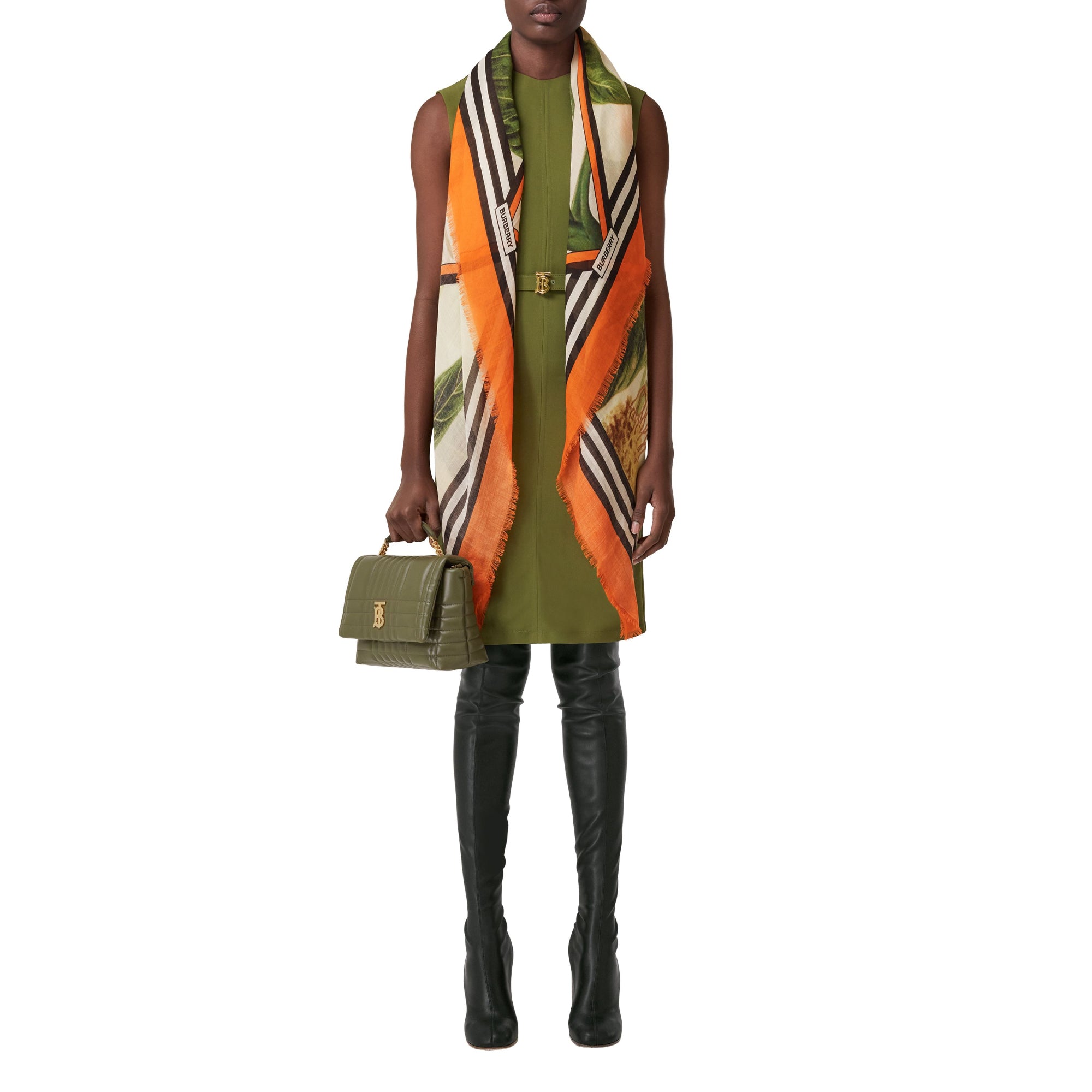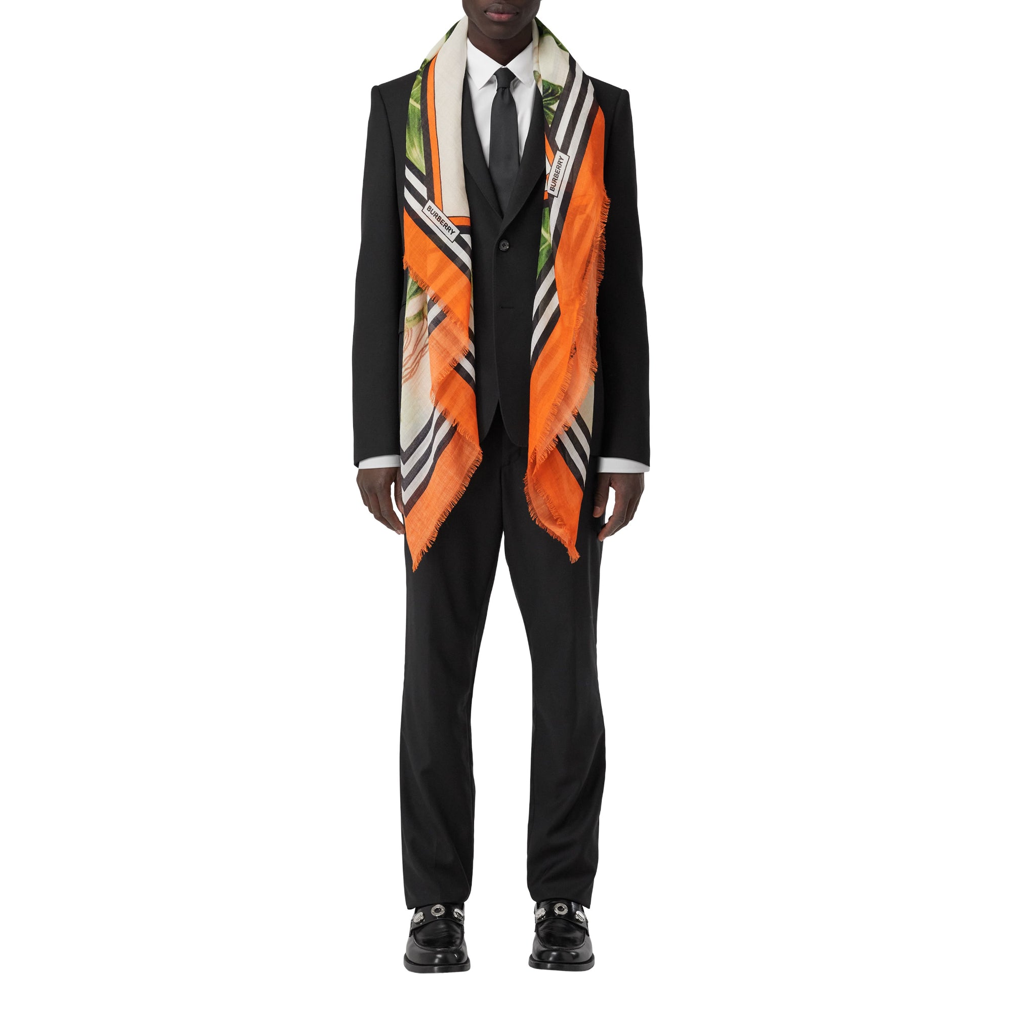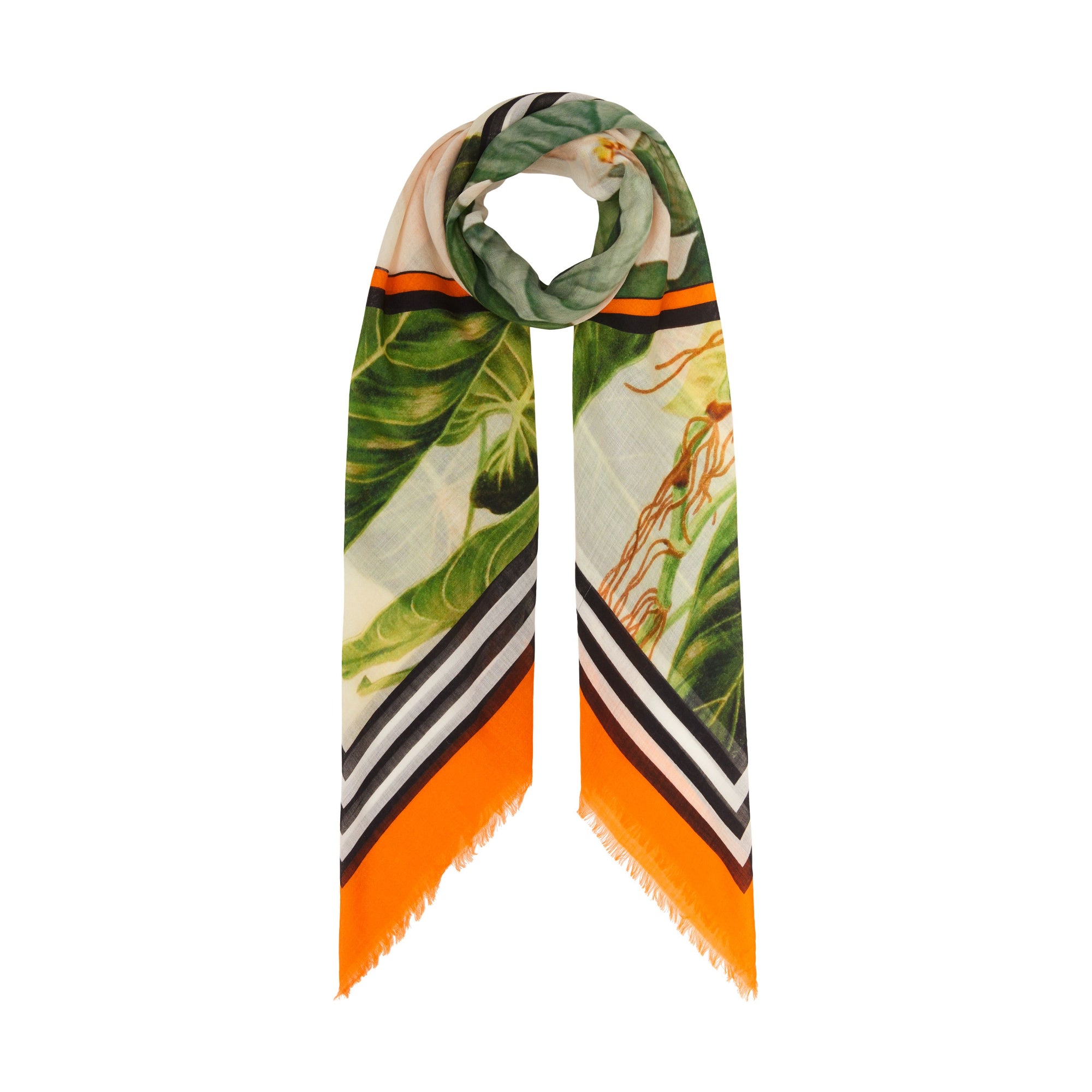 보타니컬 스케치 프린트 울 실크 스퀘어 스카프 브라이트 오렌지