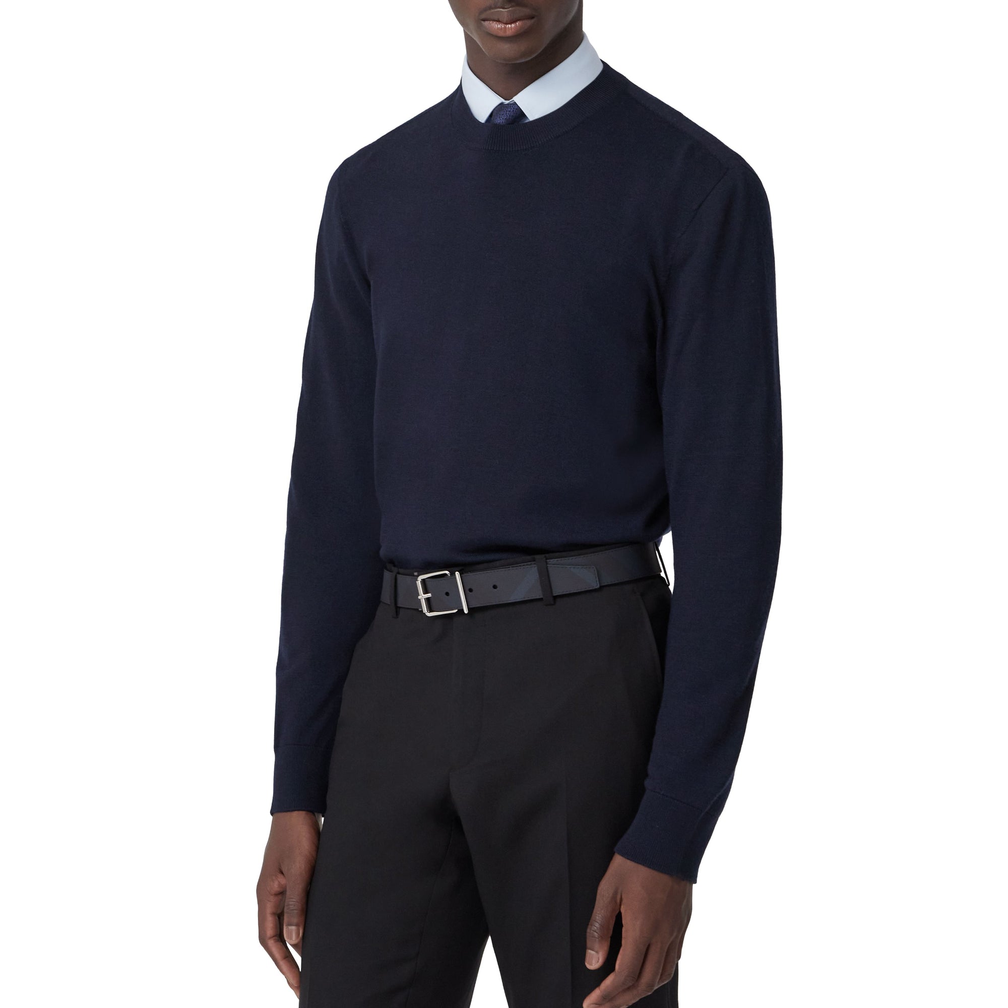 상품설명 : 이탈리아에서 직조된 울 소재의 클래식 크루넥 스웨터. 솔기가 없는 레귤러핏 디자인이 돋보이며 토마스 버버리 모노그램 자수가 특징입니다.
