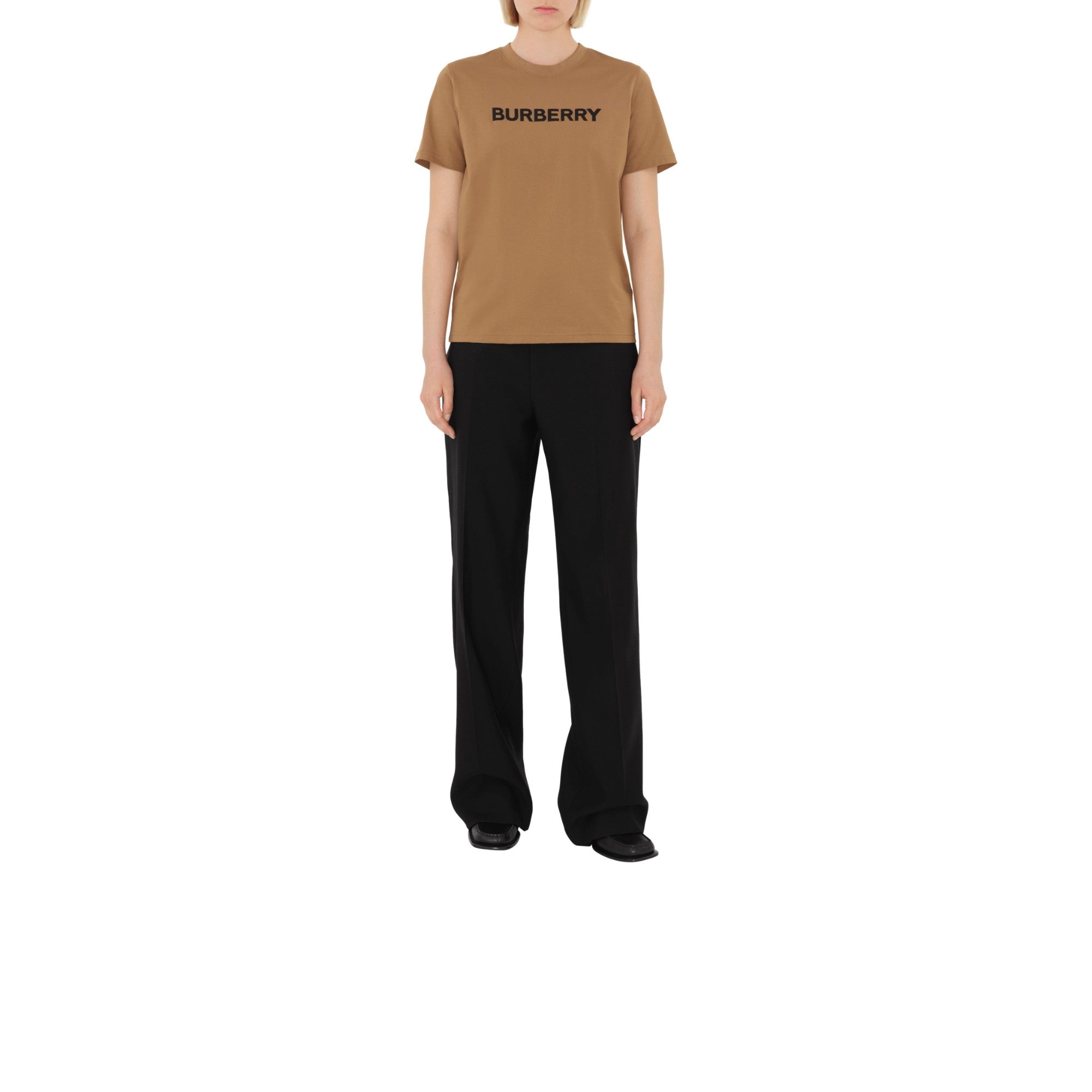 로고 코튼 티셔츠 카멜