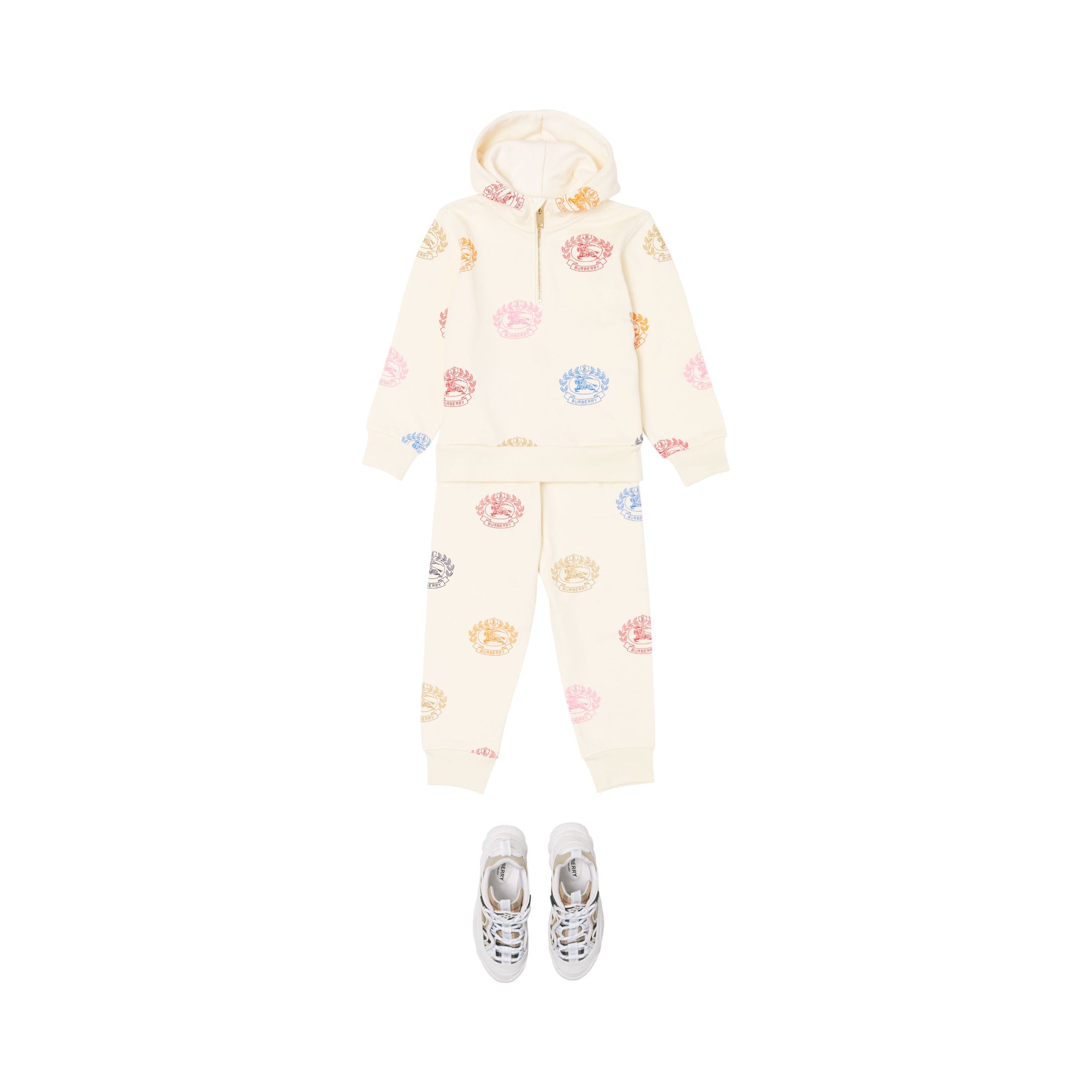상품설명 : 오가닉 면 저지가 포함된 소재의 포근한 후디. 버버리 아카이브 엠블럼을 현대적으로 재해석한 기마상 디자인과 참나무 잎사귀 크레스트가 돋보이며 하프 지퍼 플래킷 디자인이 특징입니다.