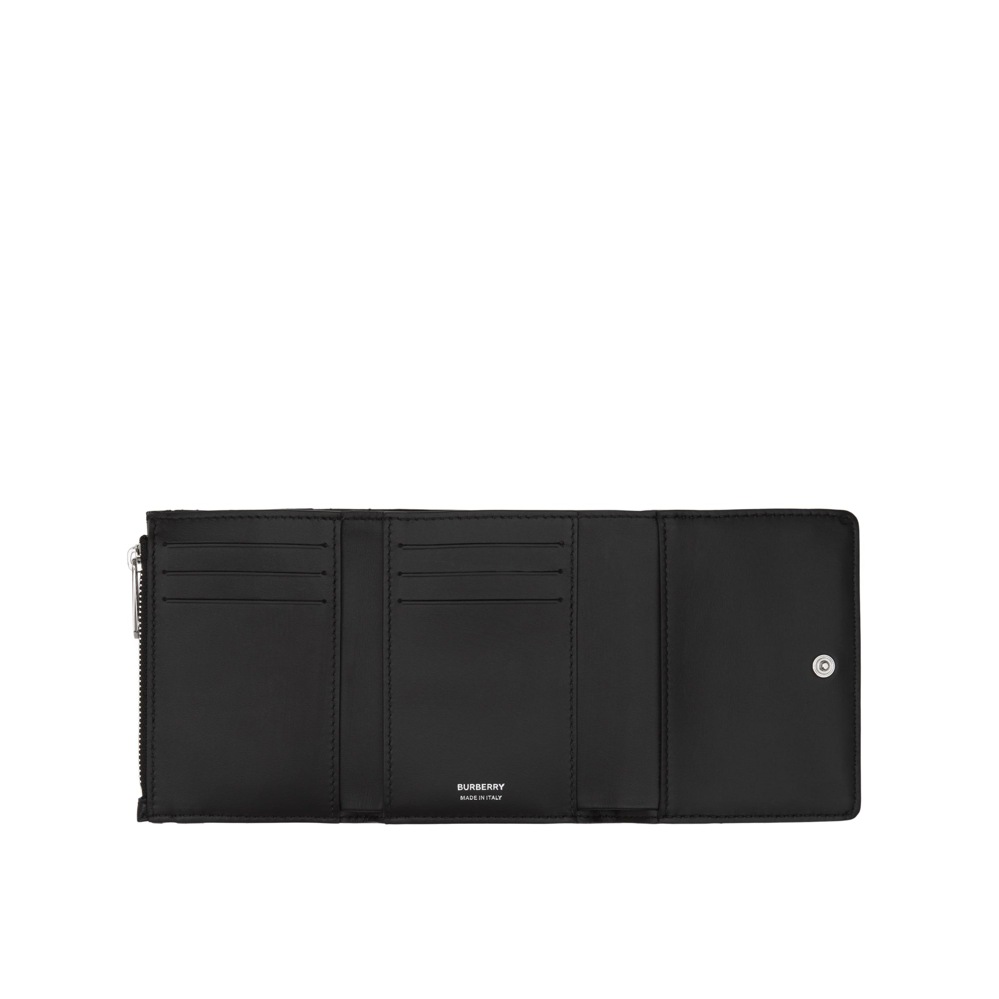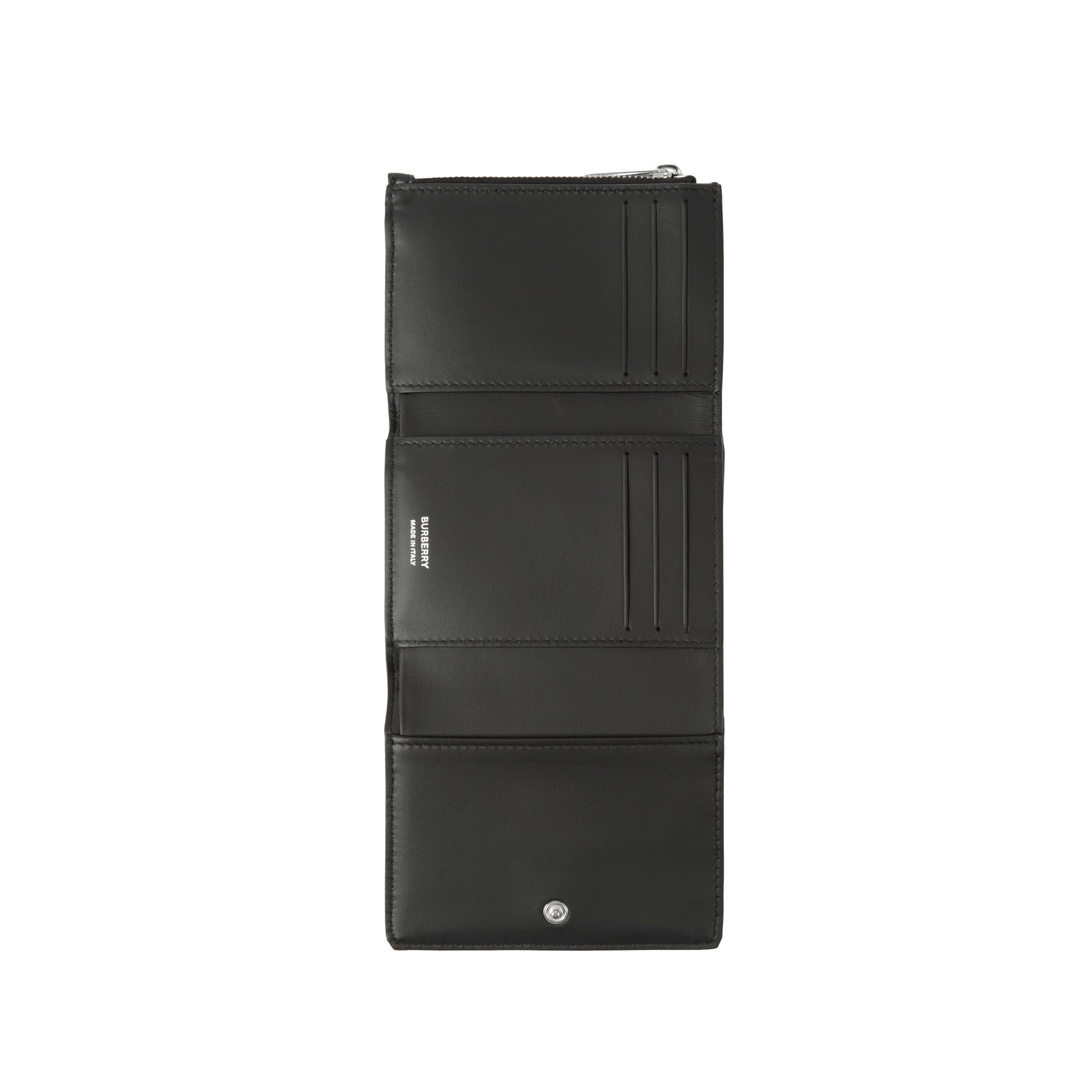 상품설명 : 이탈리아에서 태닝 처리된 가죽 소재의 컴팩트한 반지갑. 팔라듐 도금된 토마스 버버리 모노그램이 돋보이며 다수의 포켓과 카드 수납칸이 특징입니다.