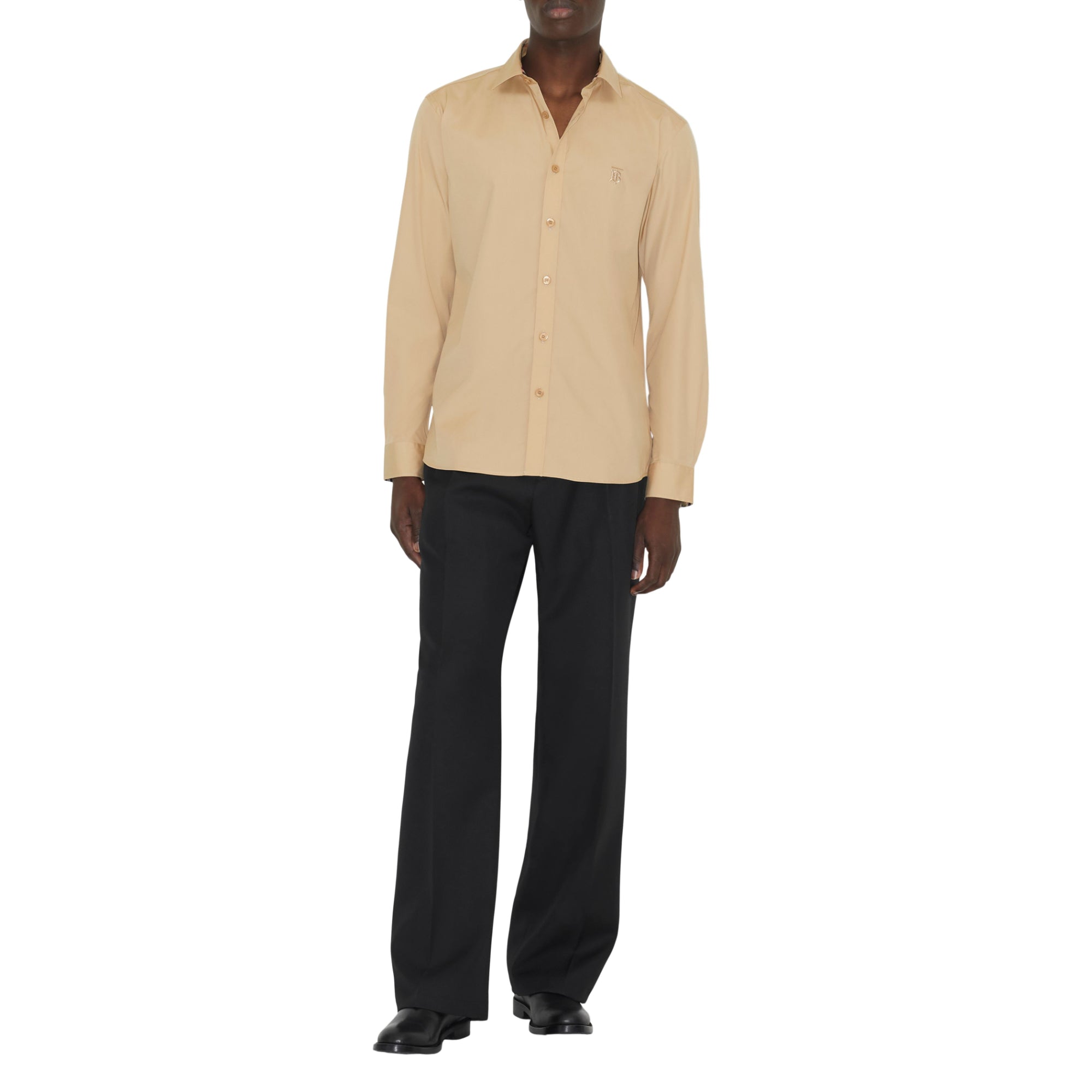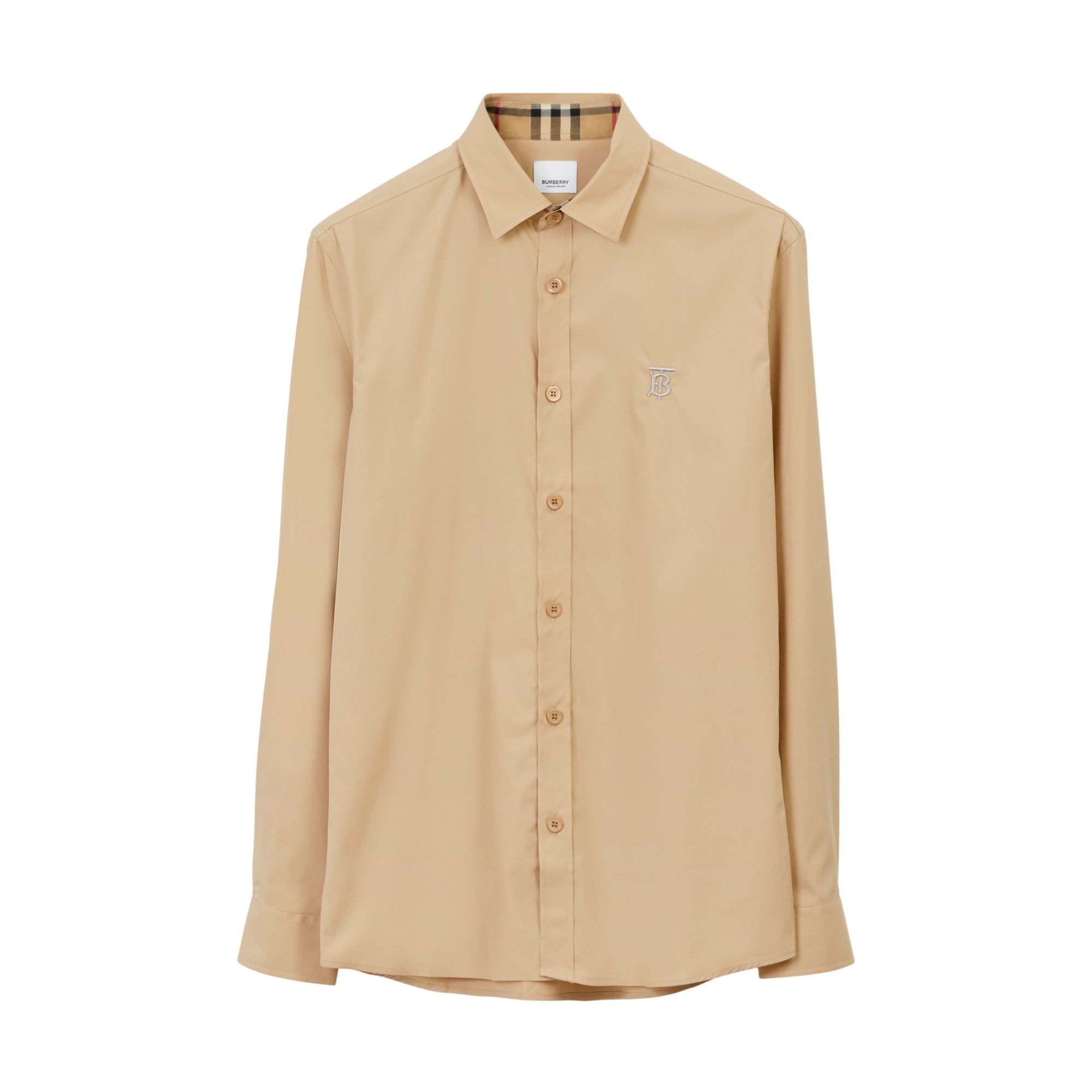 상품설명 : 토널 색상의 토마스 버버리 모노그램 자수가 인상적인 신축성 있는 면 포플린 소재의 슬림핏 셔츠. 소매를 접어 올려 버버리 빈티지 체크가 돋보이게 연출할 수 있습니다.