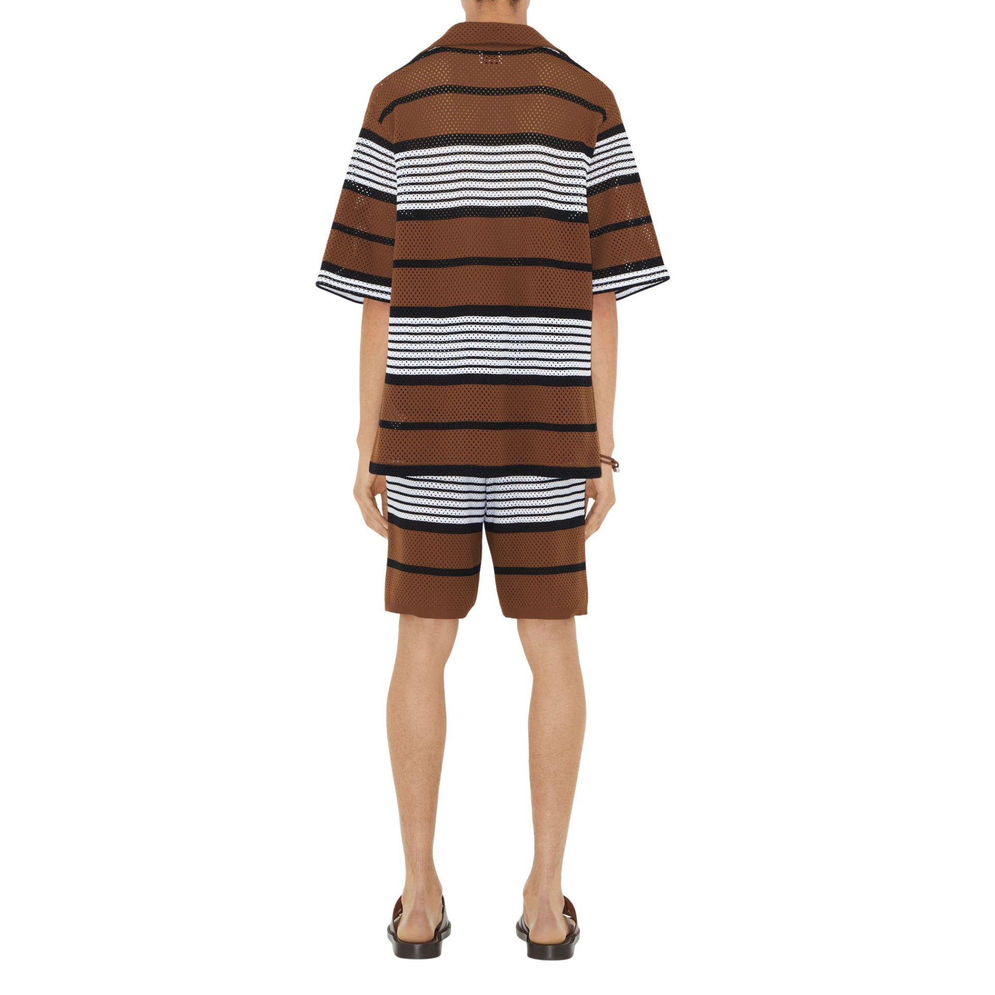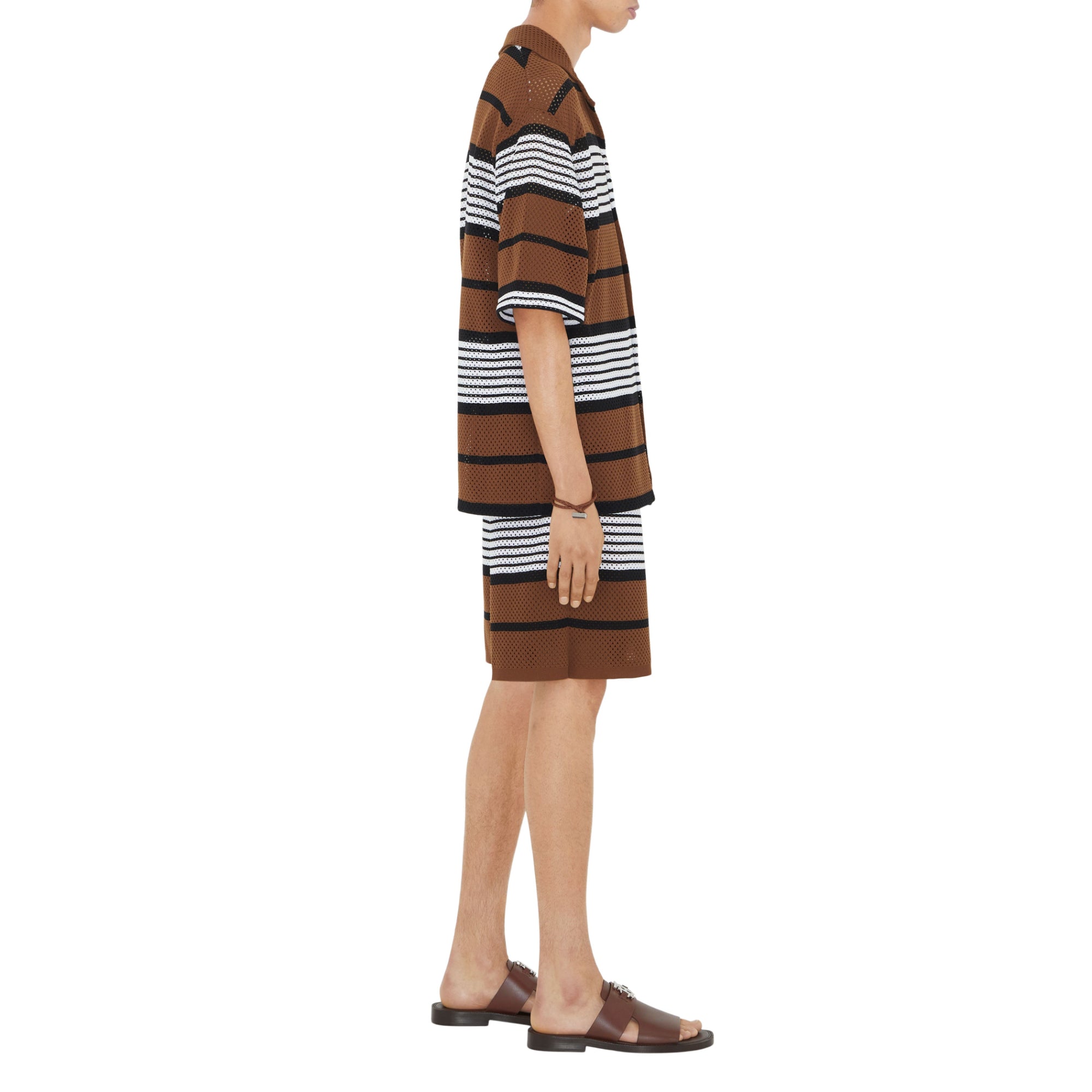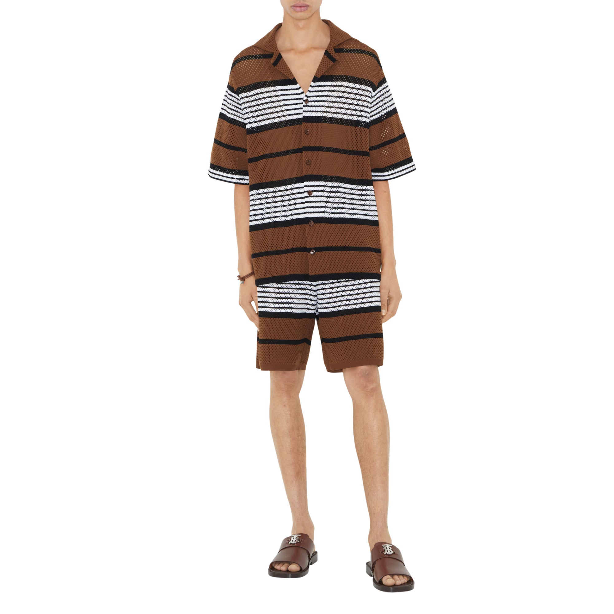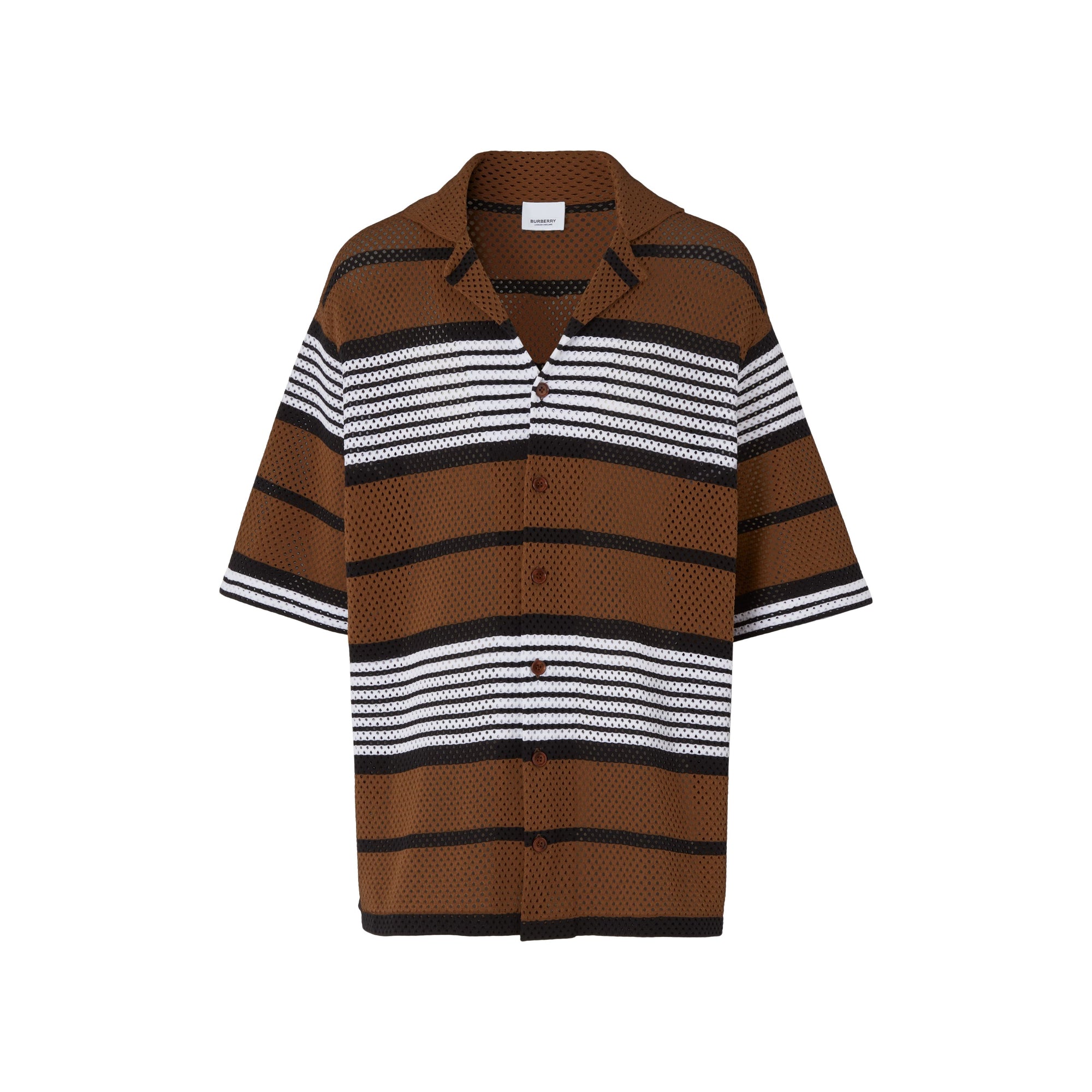 상품설명 : 농구 유니폼을 연상시키는 스포티한 나일론 메시 소재로 이탈리아에서 제작된 반소매 셔츠. 버버리 아이콘 스트라이프에서 영감을 받은 그래픽한 프린트가 돋보입니다. 2023 버버리 봄/여름 컬렉션을 구성하는 아이템입니다.