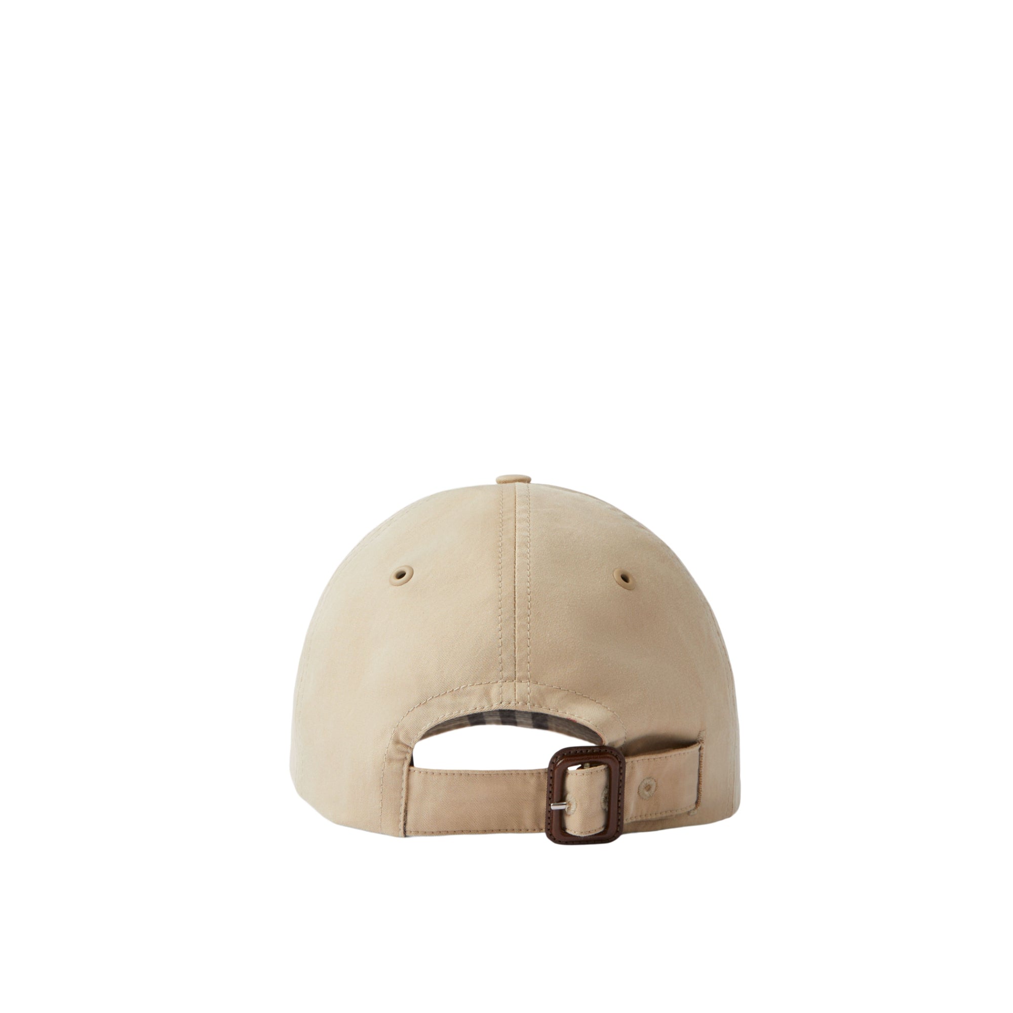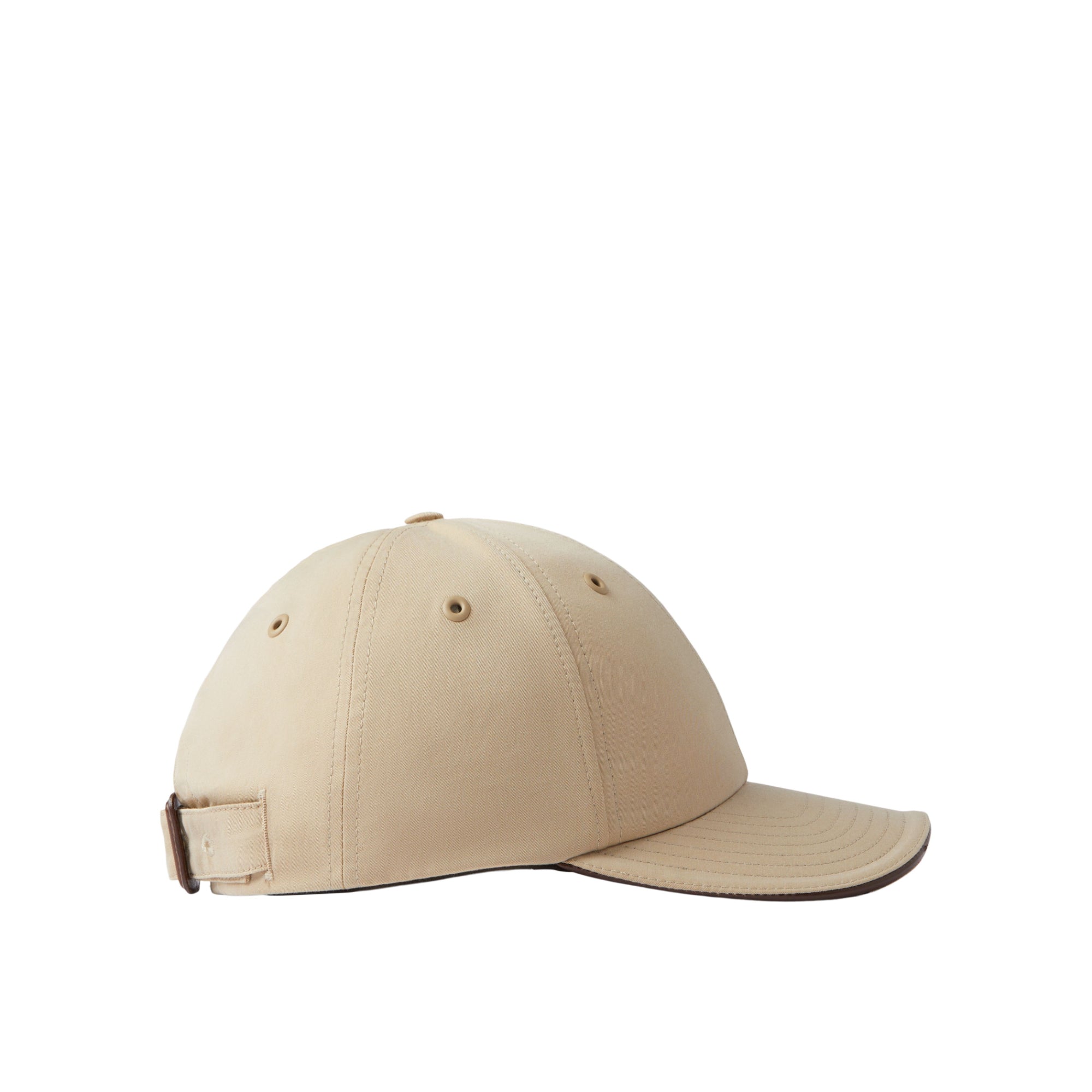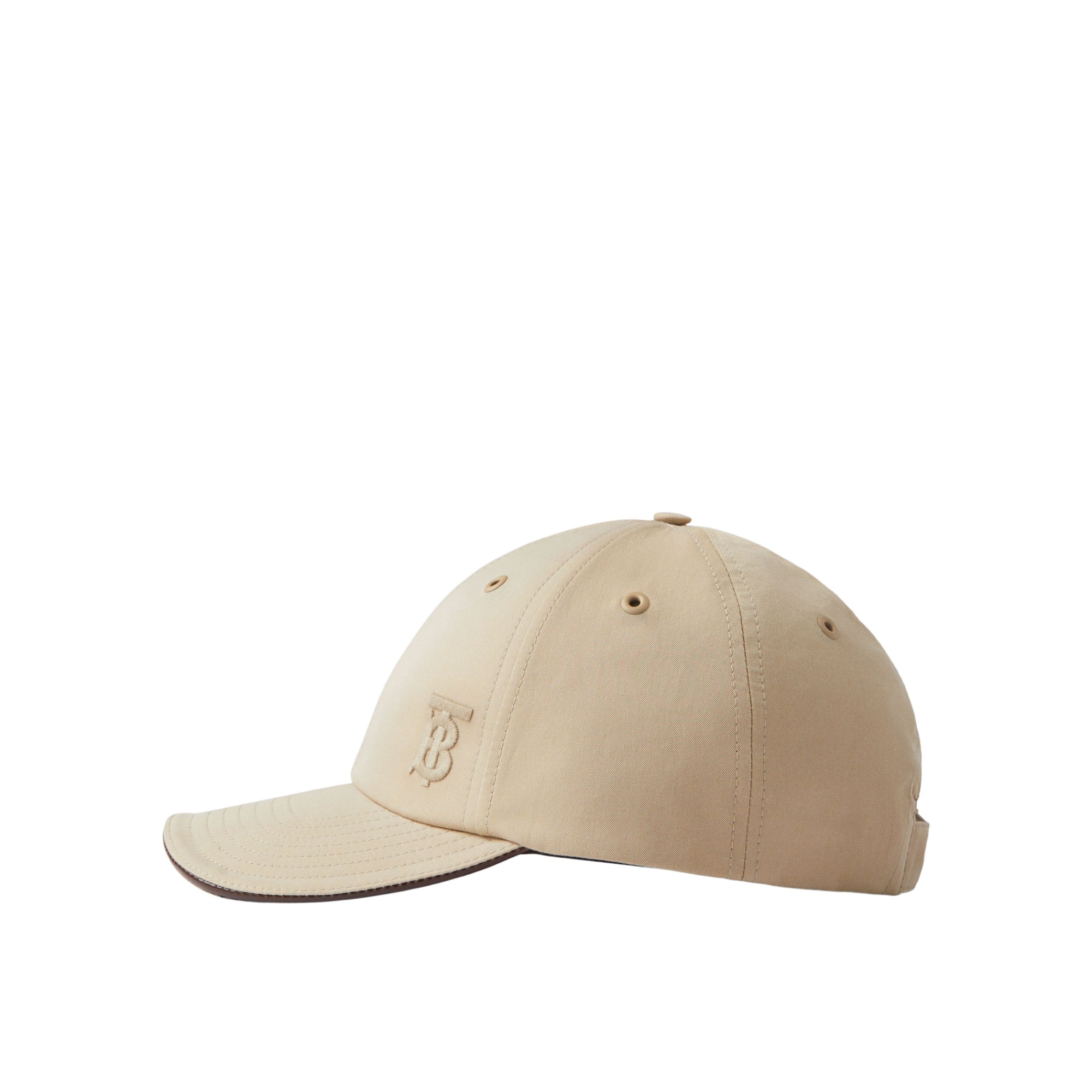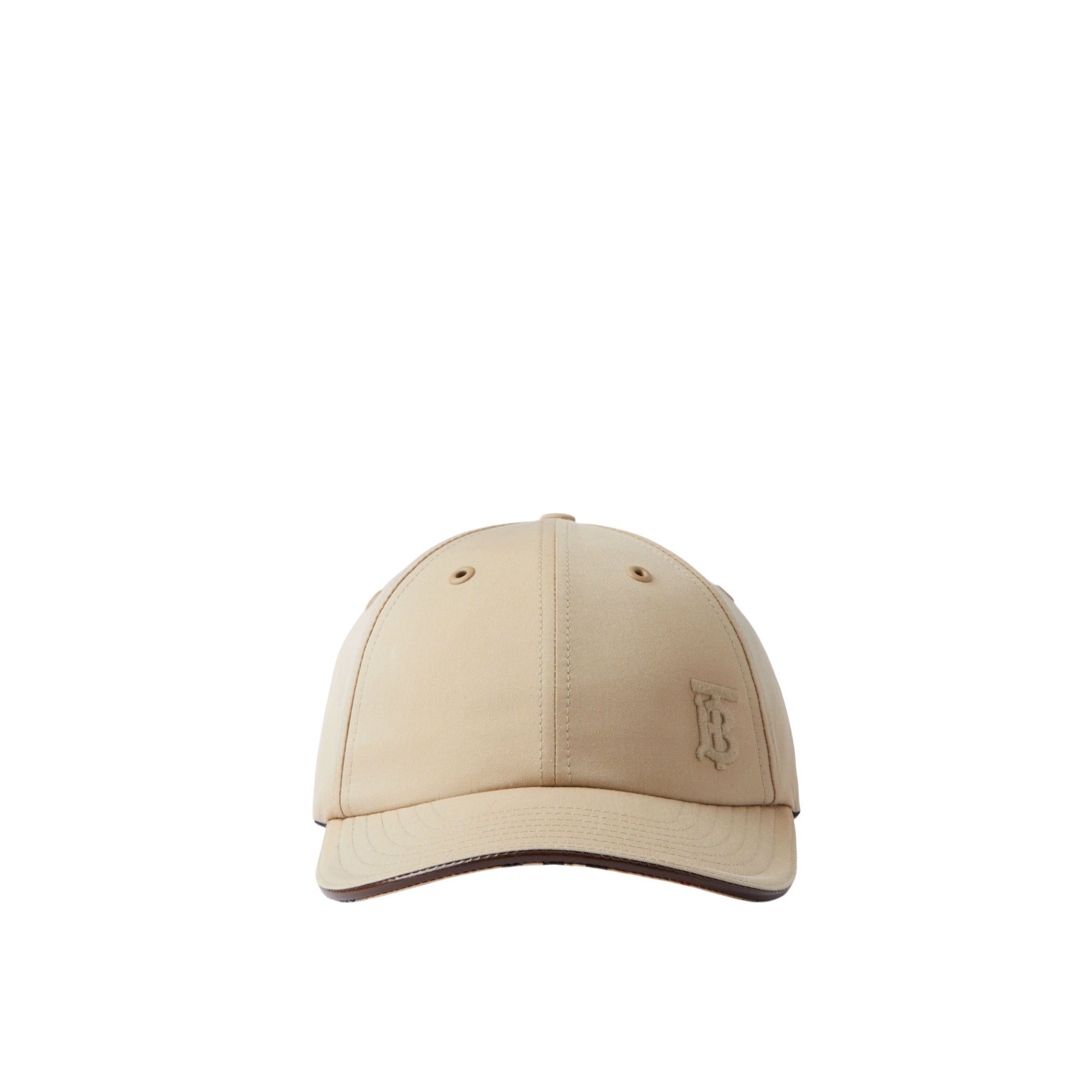 상품설명 : 영국 요크셔의 버버리 공장에서 직조된 트로피컬 개버딘 소재의 야구 모자. 토마스 버버리 모노그램 자수가 돋보입니다. 스무드 가죽 파이핑과 버버리 아이코닉 트렌치코트에서 영감을 받은 버클 여밈이 디자인을 완성합니다.