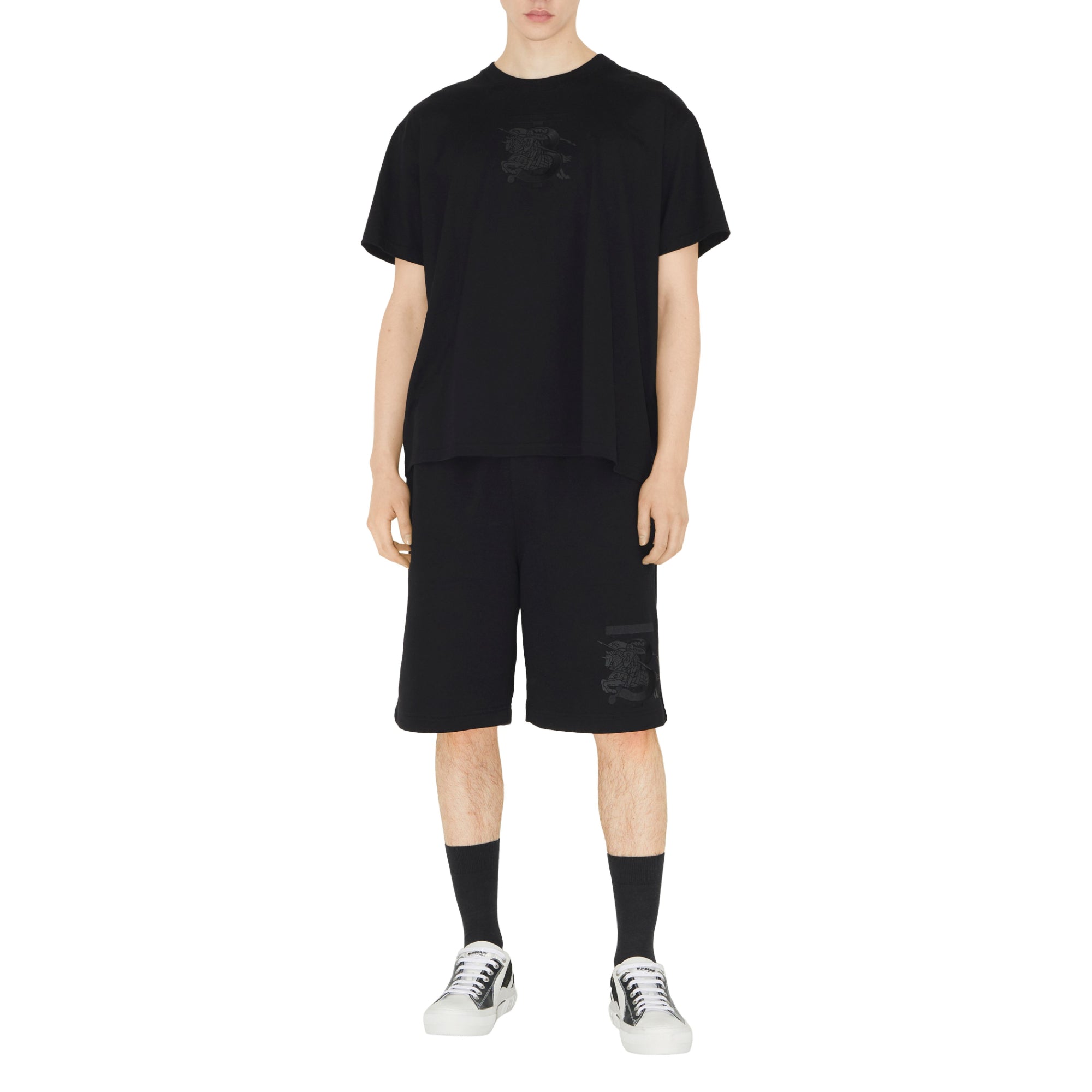 상품설명 : 루프백 면 소재로 제작된 무릎 길이 쇼츠. 토마스 버버리 모노그램과 어우러진 기마상 디자인 자수가 특징입니다.
