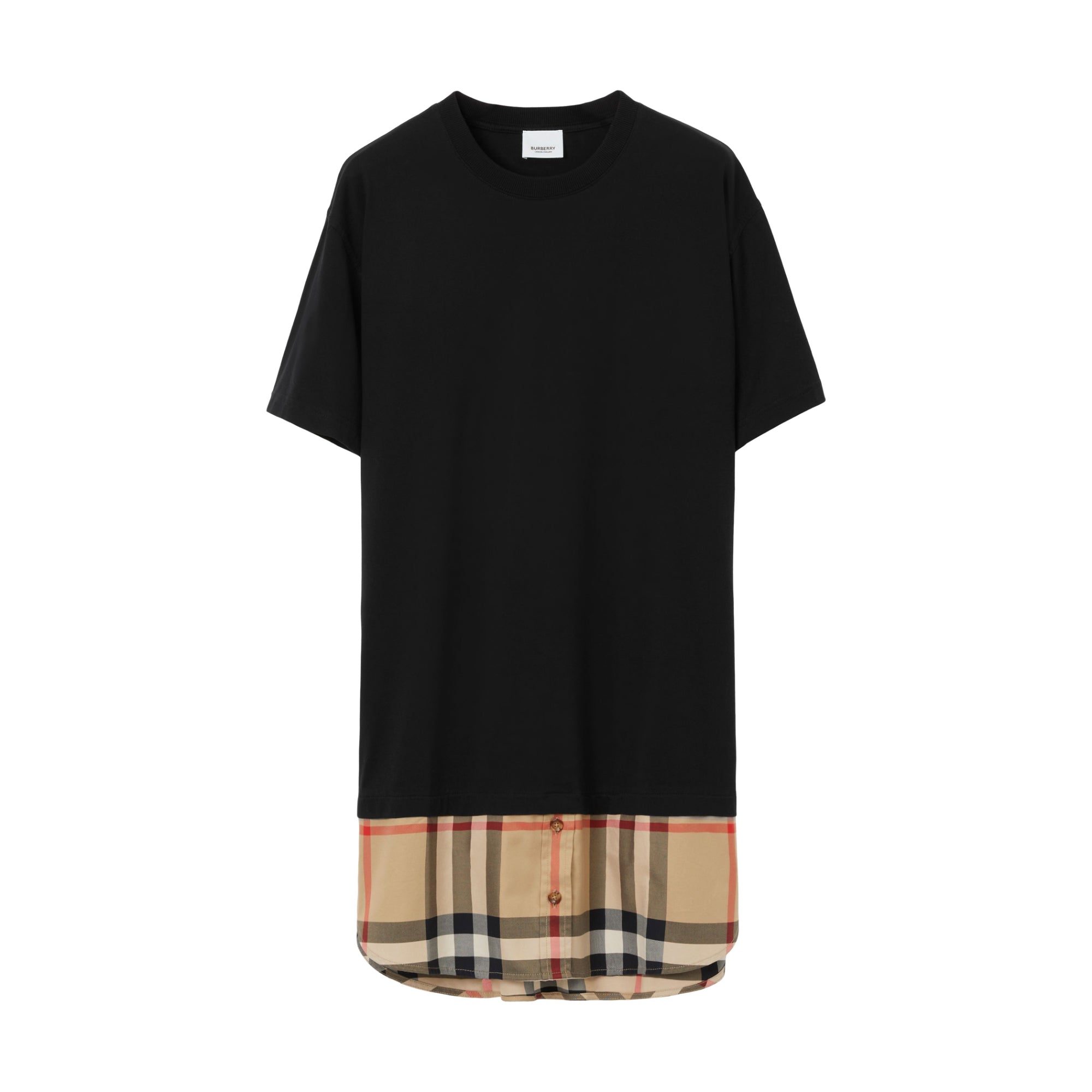 상품설명 : 면 저지 소재의 오버사이즈핏 티셔츠. 버버리 체크가 연출된 셔츠 패널이 대비를 이루는 디자인.##목선의 리브 짜임 디테일