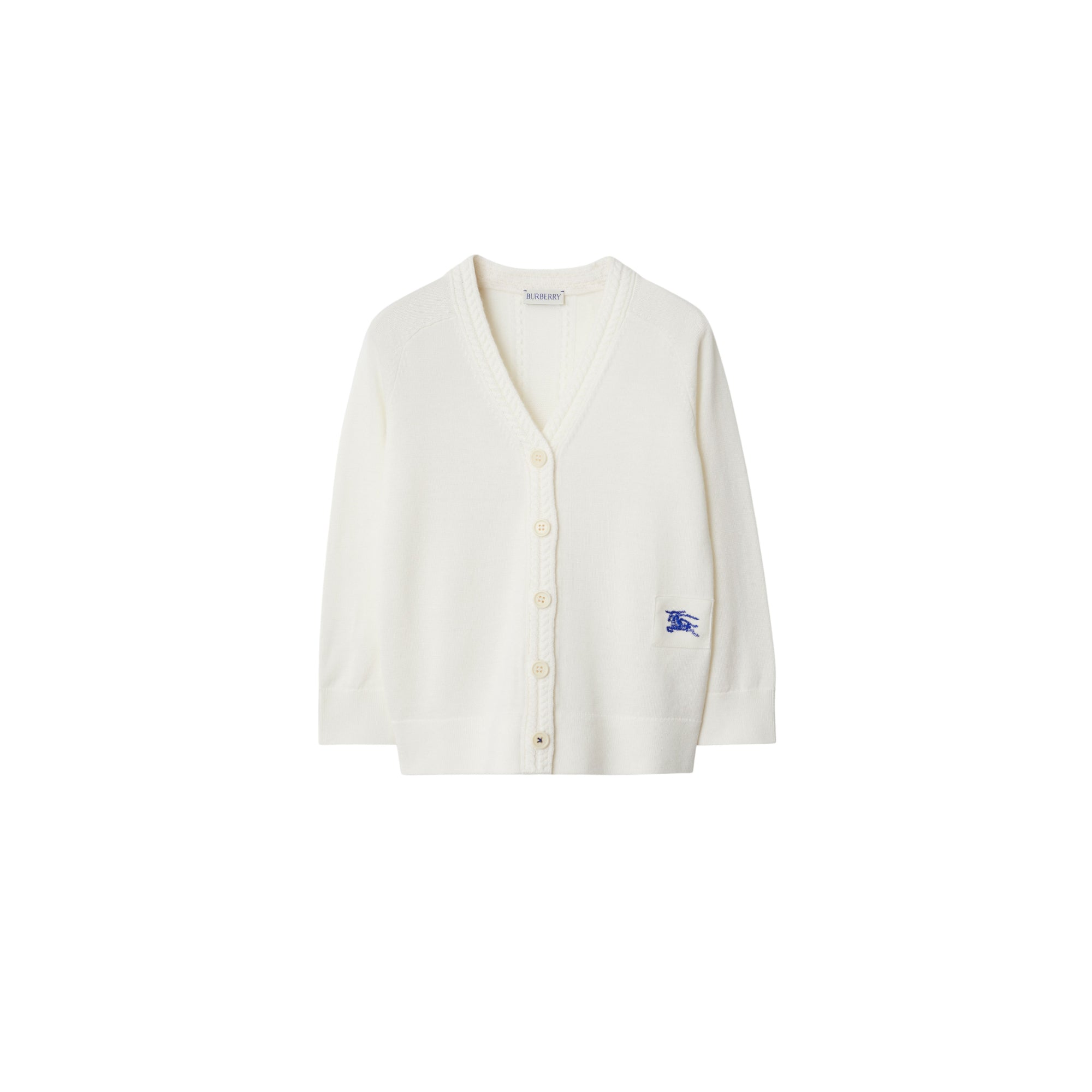 상품설명 : 기마상 디자인(Equestrian Knight Design, EKD)이 자수로 연출된 울 소재의 브이넥 카디건.##단추 여밈#케이블 니트 트리밍