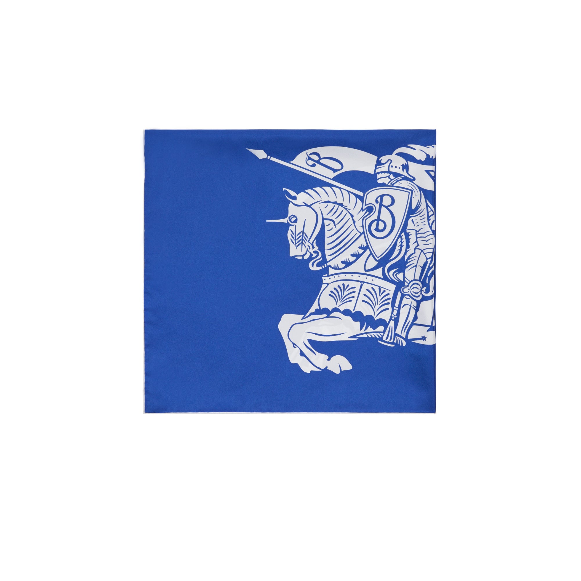 상품설명 : 기마상 디자인(Equestrian Knight Design, EKD)과 로고 프린트가 돋보이는 이탈리안 실크 트윌 소재의 스카프.##정사각형#수작업으로 완성된 테두리#버버리 레터링 프린트