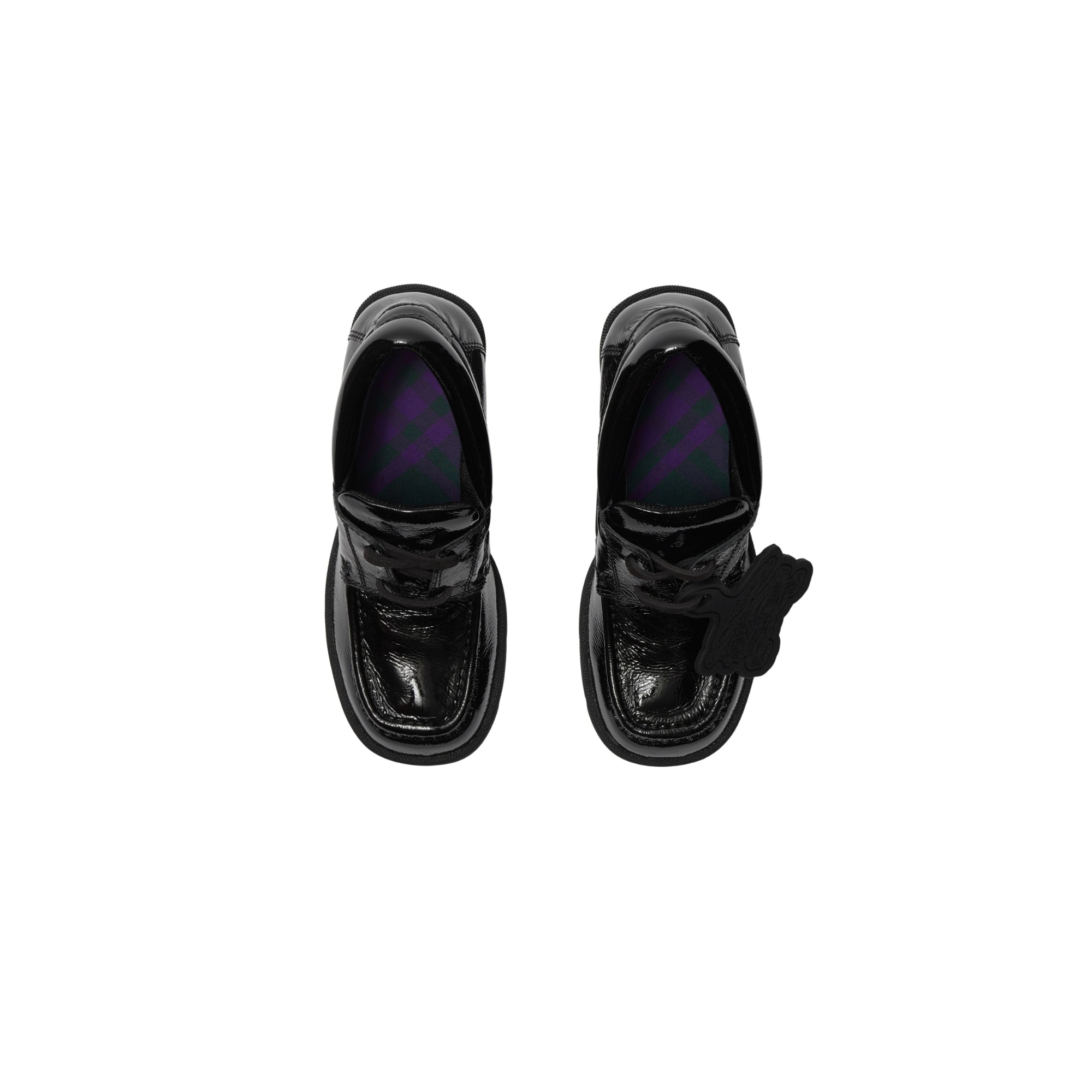 상품설명 : 송아지 가죽 소재로 이탈리아에서 제작된 블록 힐 로퍼. 기마상 디자인(Equestrian Knight Design, EKD) 태그가 돋보이며, 아카이브 버버리 레터링이 연출된 청키한 밑창이 특징.##레이스업 여밈#둥근 앞코#체크 안창#밑창의 버버리 레터링#기마상 디자인(Equestrian Knight Design, EKD) 태그