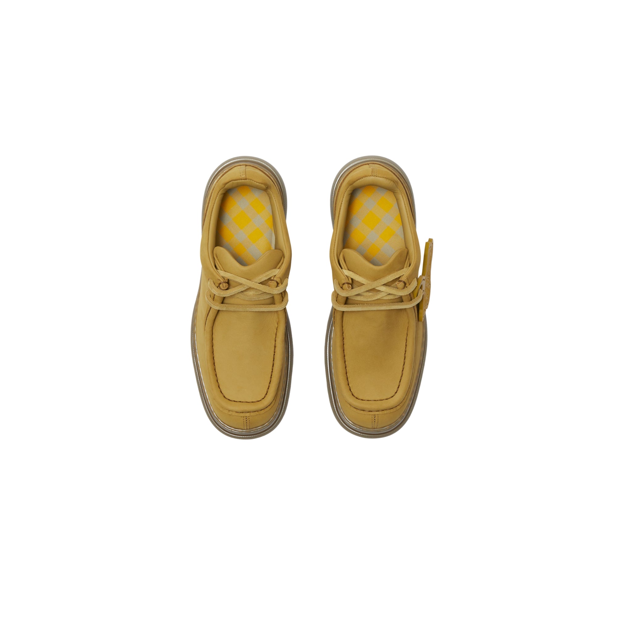 상품설명 : 누벅 소재로 이탈리아에서 제작된 레이스업 크리퍼 슈즈. 체크 안창과 기마상 디자인(Equestrian Knight Design, EKD) 태그가 특징.##레이스업 여밈#둥근 앞코#체크 안창#밑창의 버버리 레터링#기마상 디자인(Equestrian Knight Design, EKD) 태그