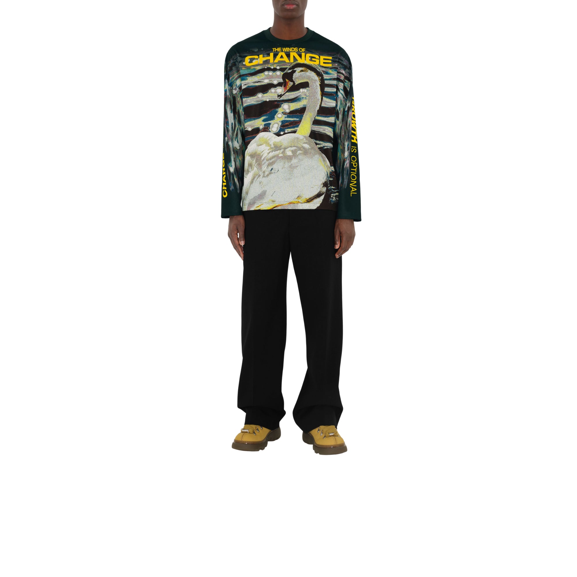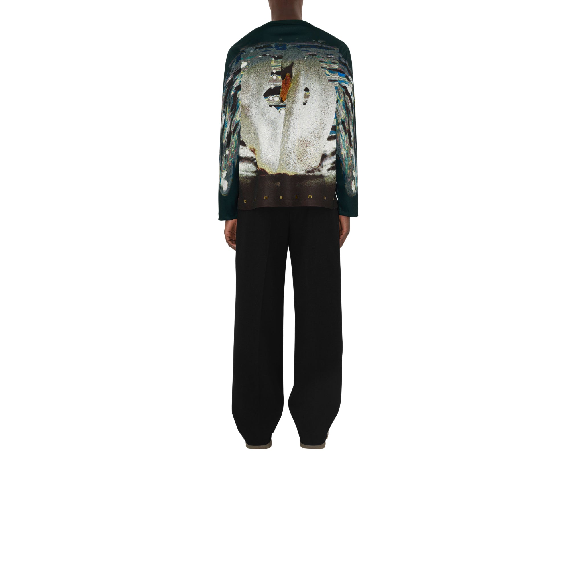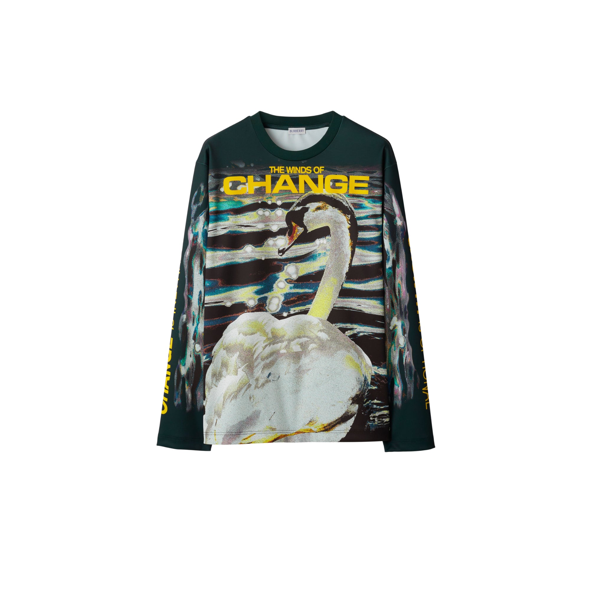 상품설명 : 시즈널 백조 그래픽과 슬로건 프린트가 연출된 저지 소재의 긴소매 상의. 이탈리아에서 제작되었으며 크루넥 스타일과 릴랙스핏 실루엣이 특징.##목선의 리브 짜임 디테일#밑단의 버버리 레터링 프린트