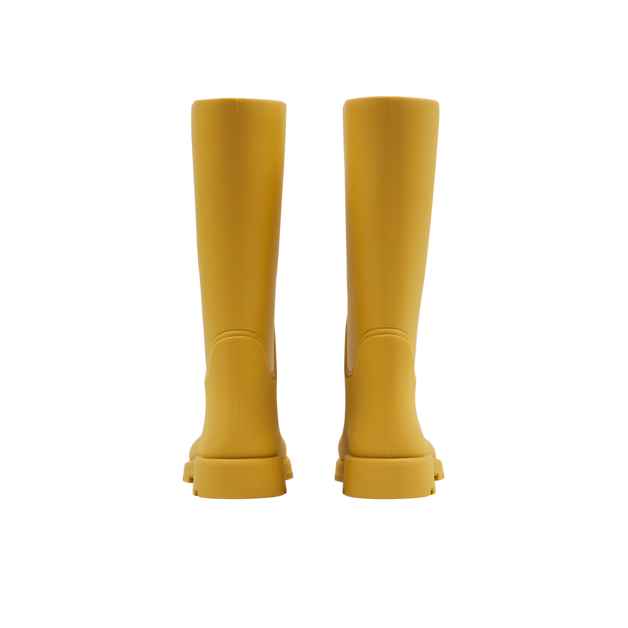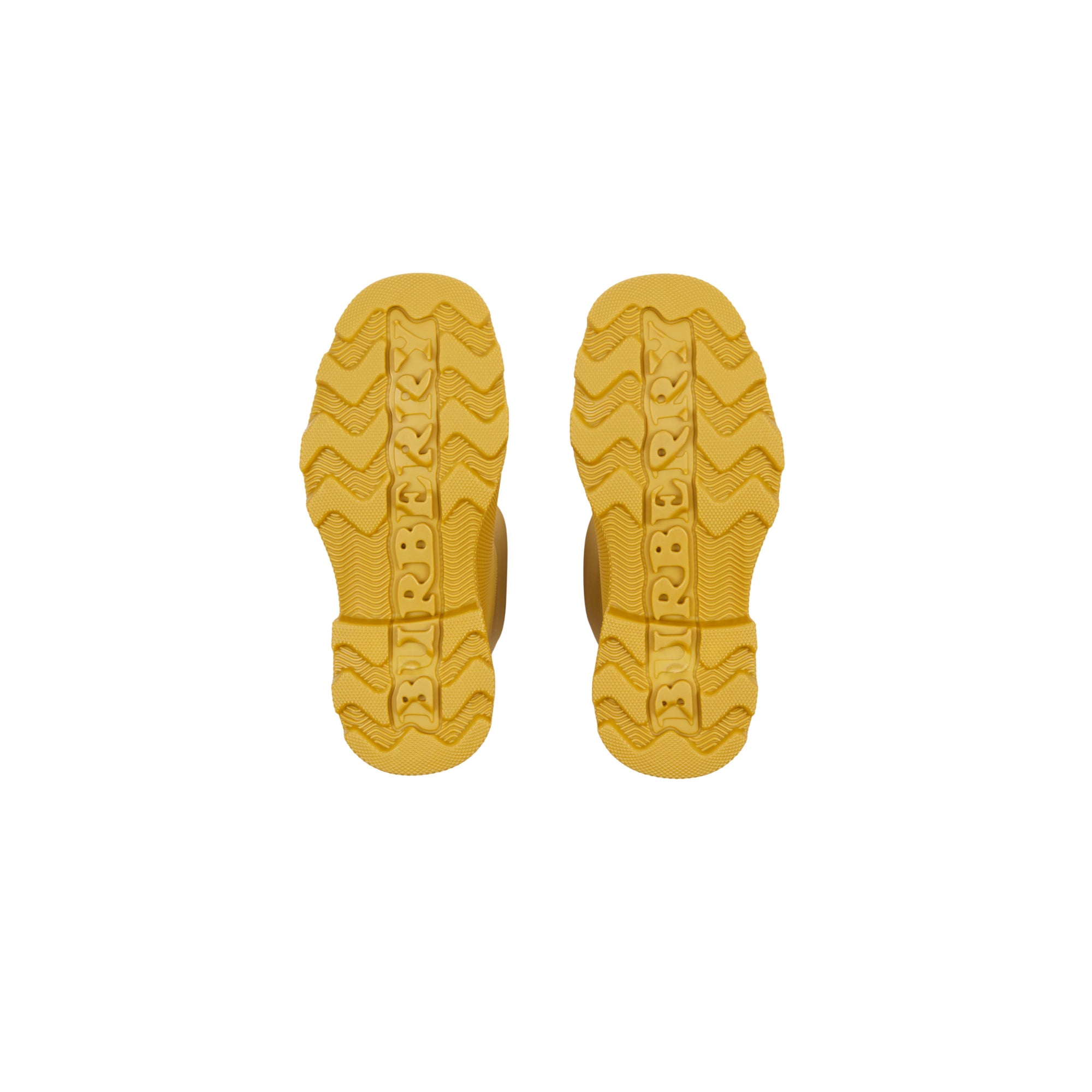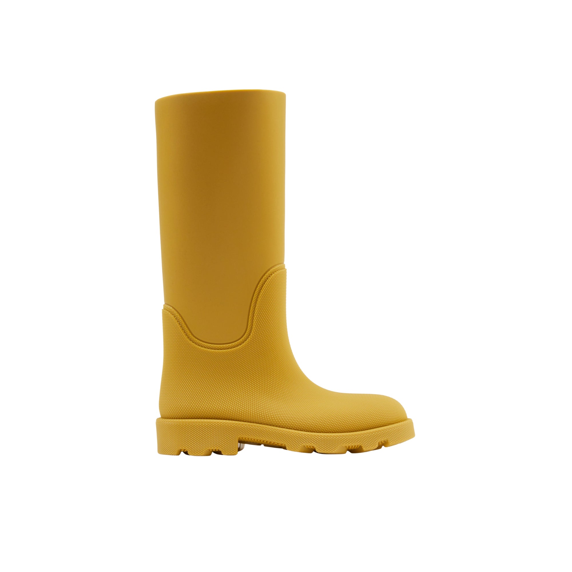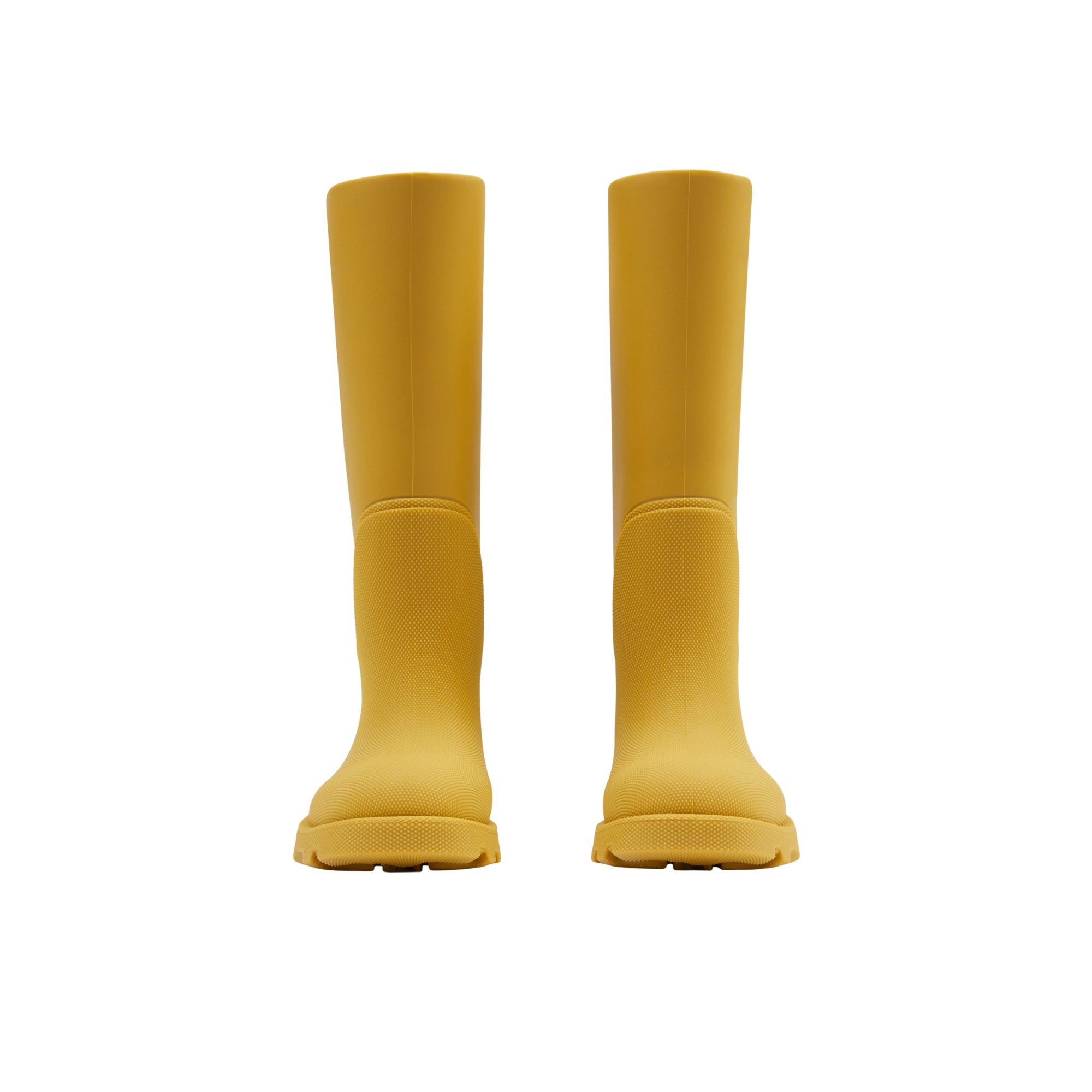 상품설명 : 고무 소재로 이탈리아에서 제작된 무릎 높이 부츠. 장화에서 영감을 받은 디자인과 체크 안감이 특징이며 아카이브 스타일의 버버리 레터링이 연출된 청키한 밑창이 특별함을 더하는 아이템.##둥근 앞코#체크 안감#밑창의 버버리 레터링