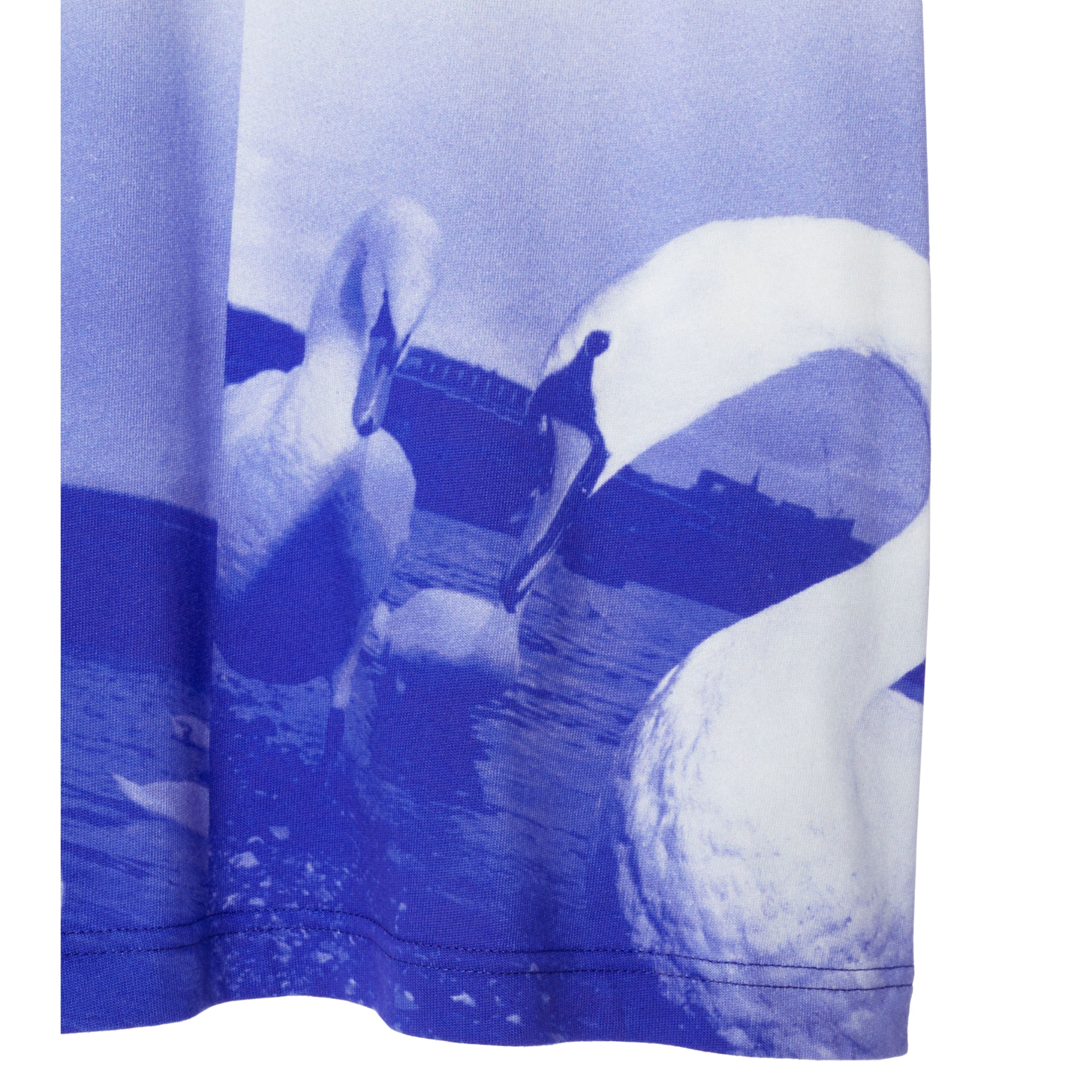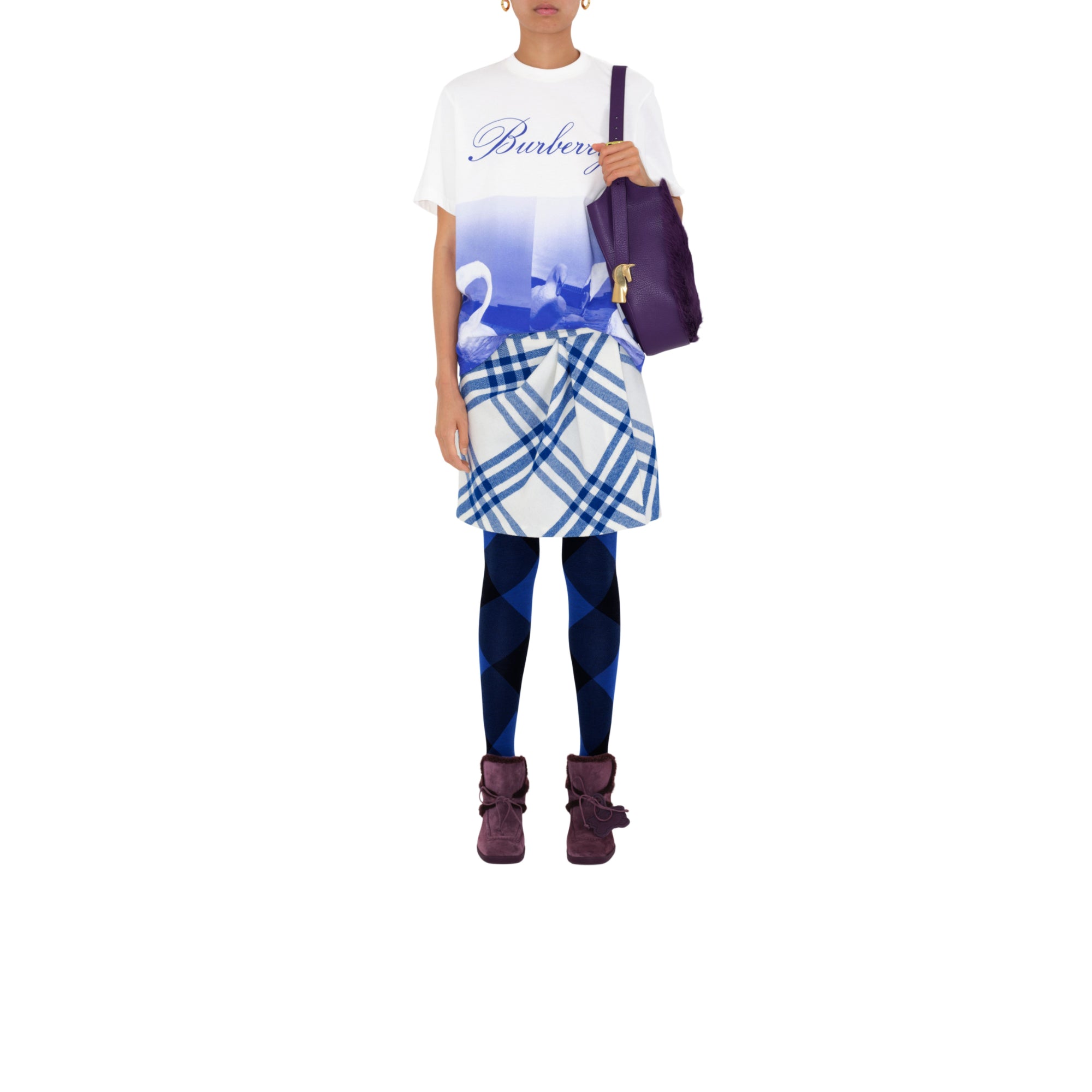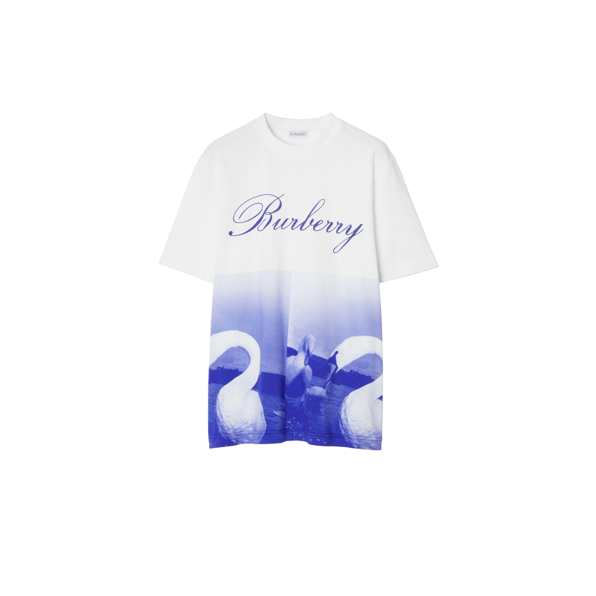 상품설명 : 시즈널 백조 그래픽과 로고 프린트가 연출된 면 저지 소재의 티셔츠. 이탈리아에서 제작되었으며 크루넥 스타일 및 릴랙스핏 실루엣이 특징.##목선의 리브 짜임 디테일#버버리 레터링 프린트