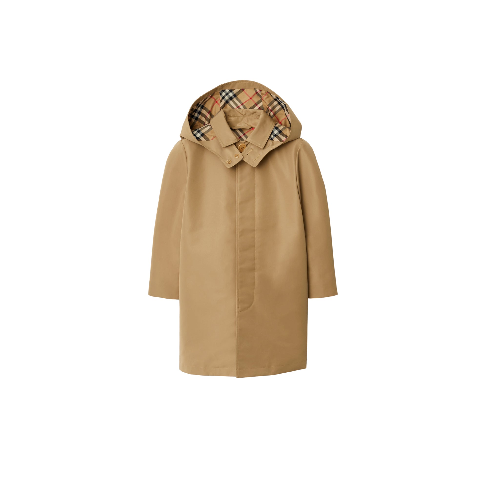 상품설명 : 버버리 체크 안감이 특징인 후드 카 코트.##단추 여밈#탈착식 후드#뒤트임#버버리 체크 안감