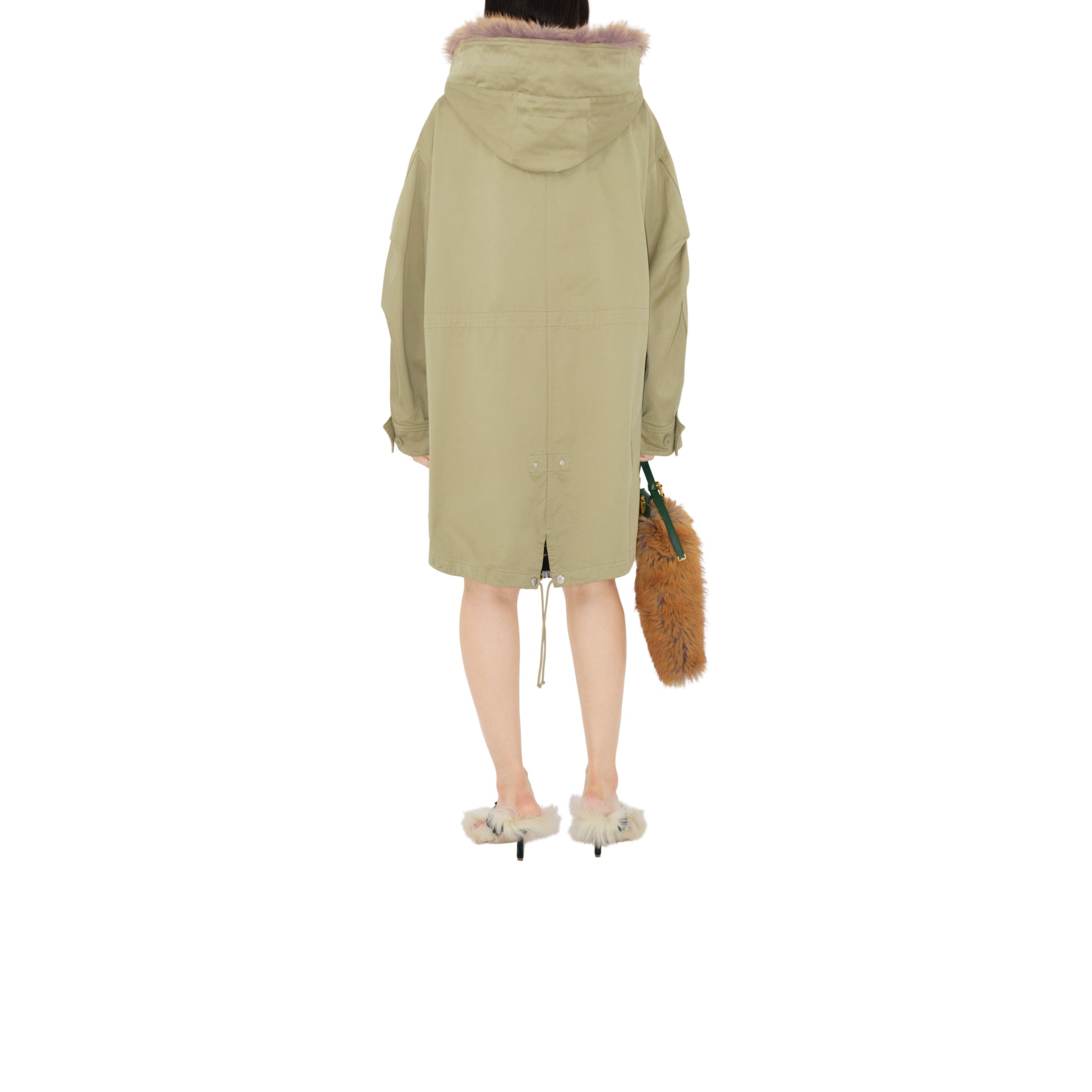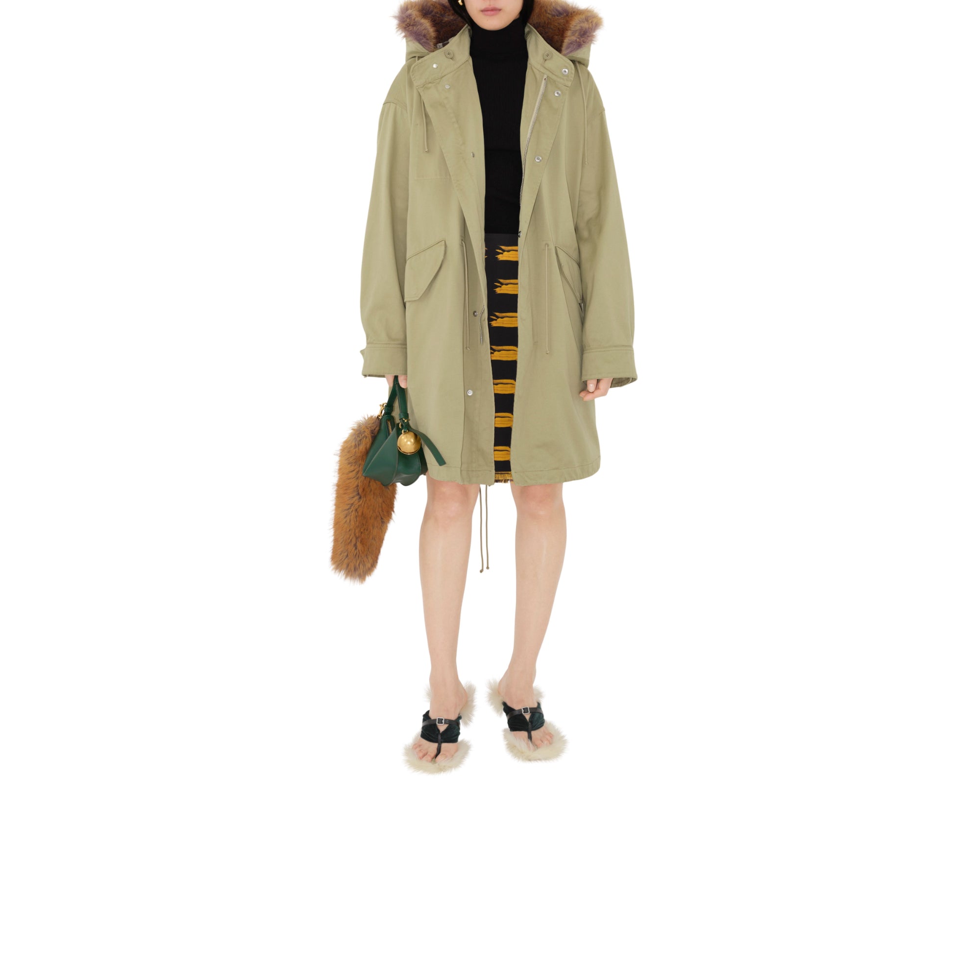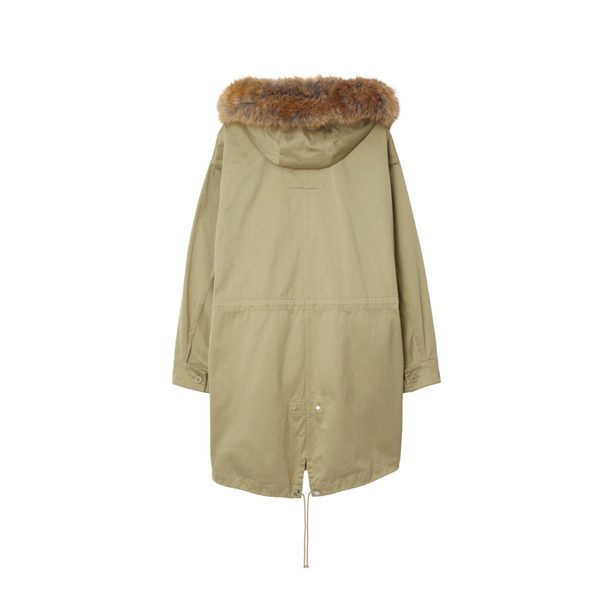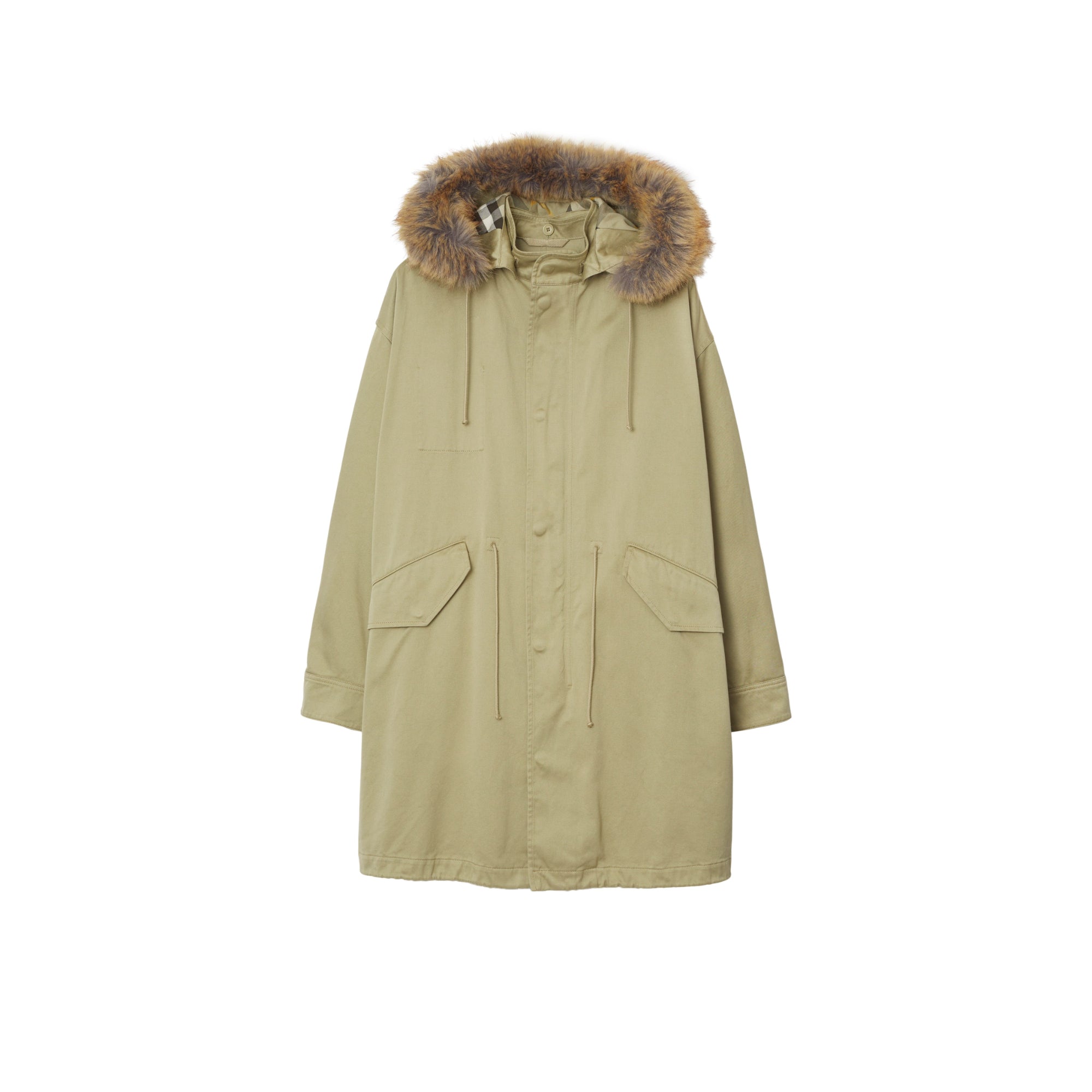 상품설명 : 면 새틴 소재로 이탈리아에서 제작된 오버사이즈 파카. 탈착식 후드의 인조 퍼 트리밍, 허리의 드로스트링 및 밑단의 피시테일 실루엣이 특징.##스냅 단추 및 지퍼 여밈#스냅 단추 디테일의 플랩 포켓#버튼 탭 커프스#스냅 단추 디테일의 뒤트임#후드의 버버리 체크 안감