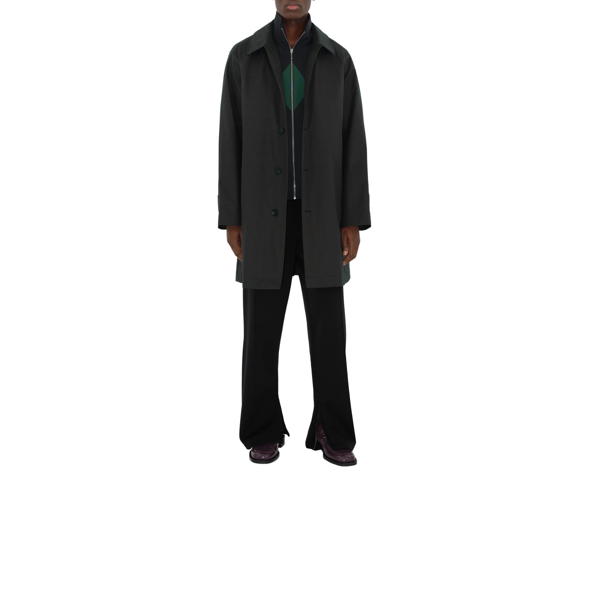 상품설명 : 영국에서 직조된 생활 방수 개버딘 소재의 카 코트. 버버리 체크 면 소재로 부분 안감 처리되었으며, 릴랙스핏 실루엣 및 래글런 소매가 특징입니다.##싱글브레스트 단추 여밈#측면의 웰트 포켓#커프스의 벨트 디테일#안감과 밑깃의 버버리 체크